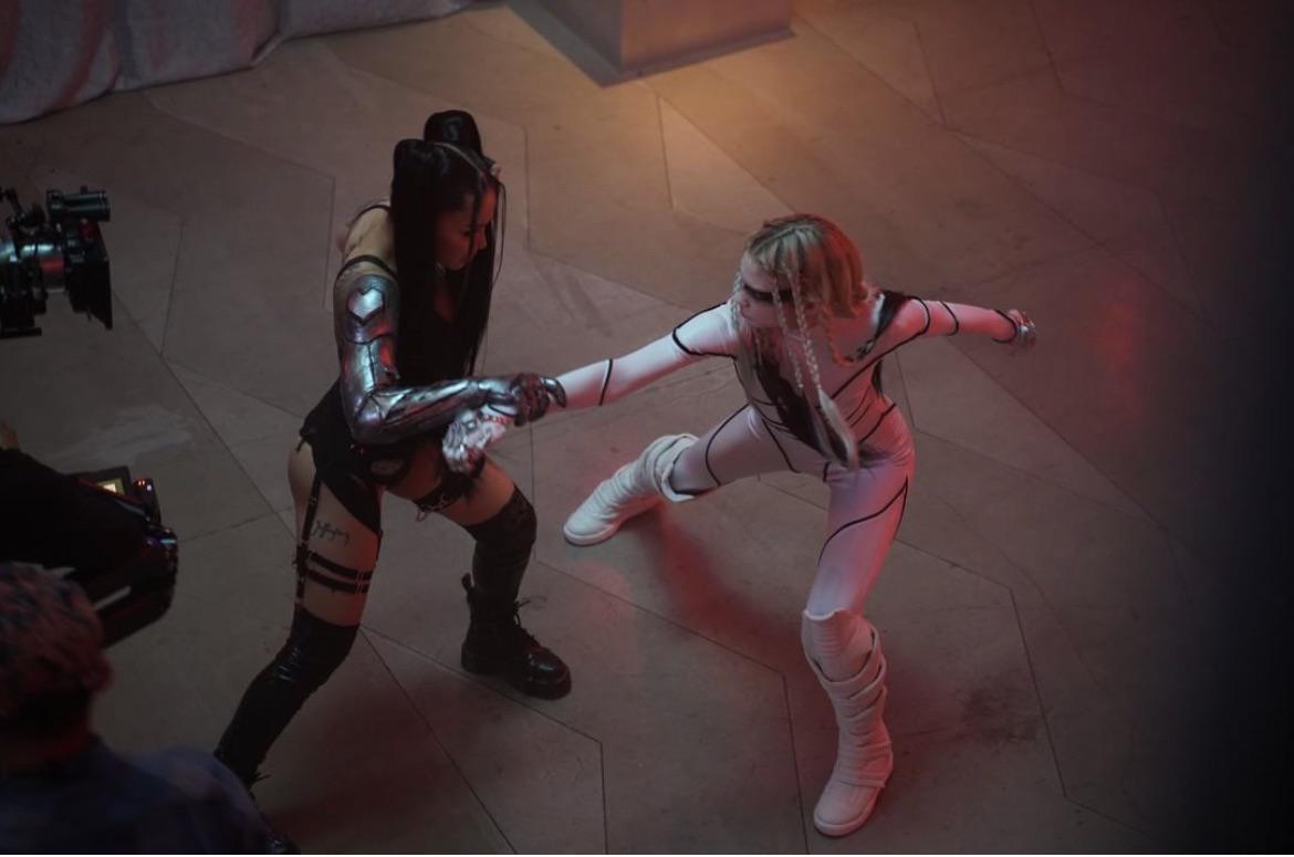 Grimes Wears head-to-toe DEMOBAZA while interviewing Aespa for Rolling Stone magazine