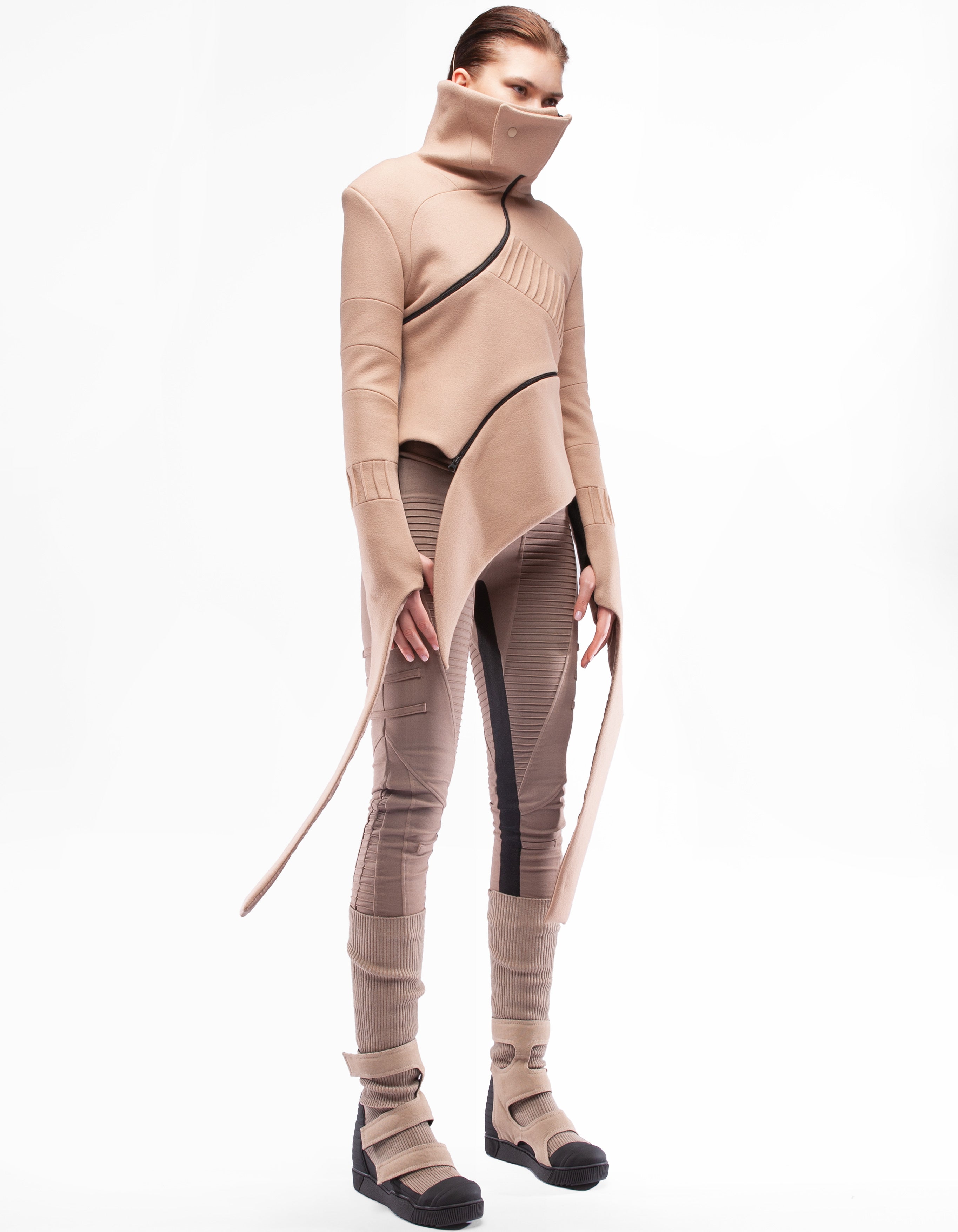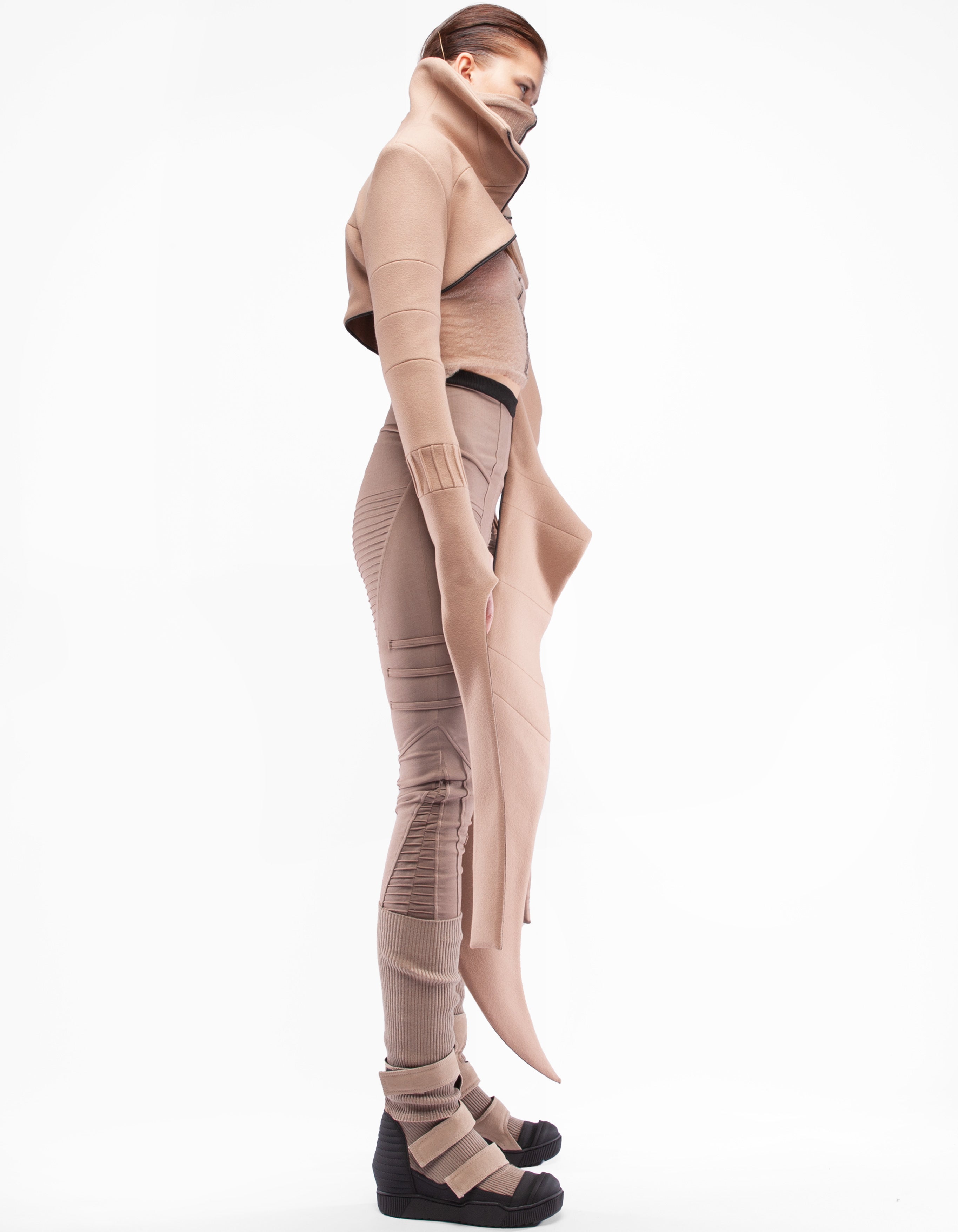 معطف قصير من الصوف بياقة عالية غير متماثلة