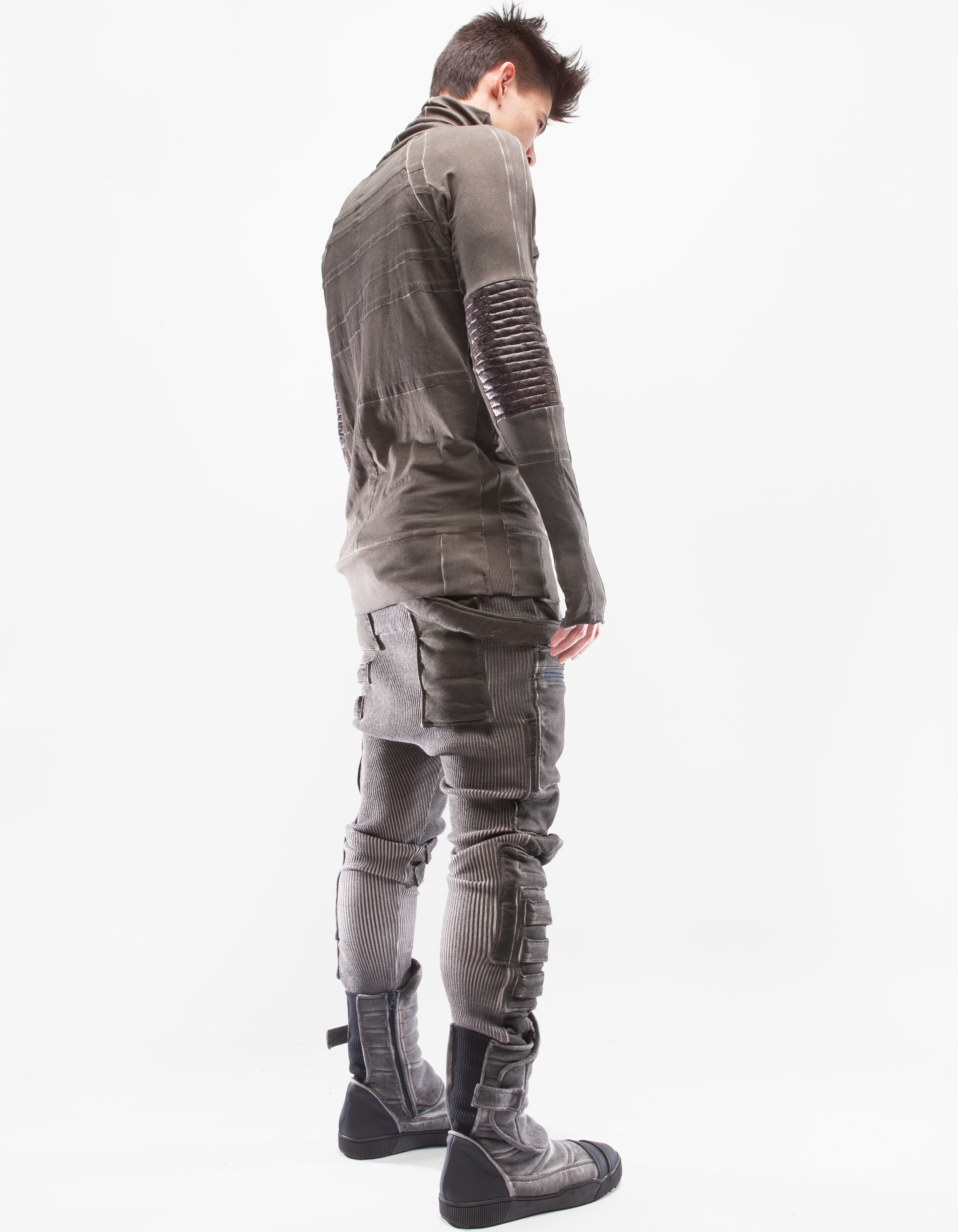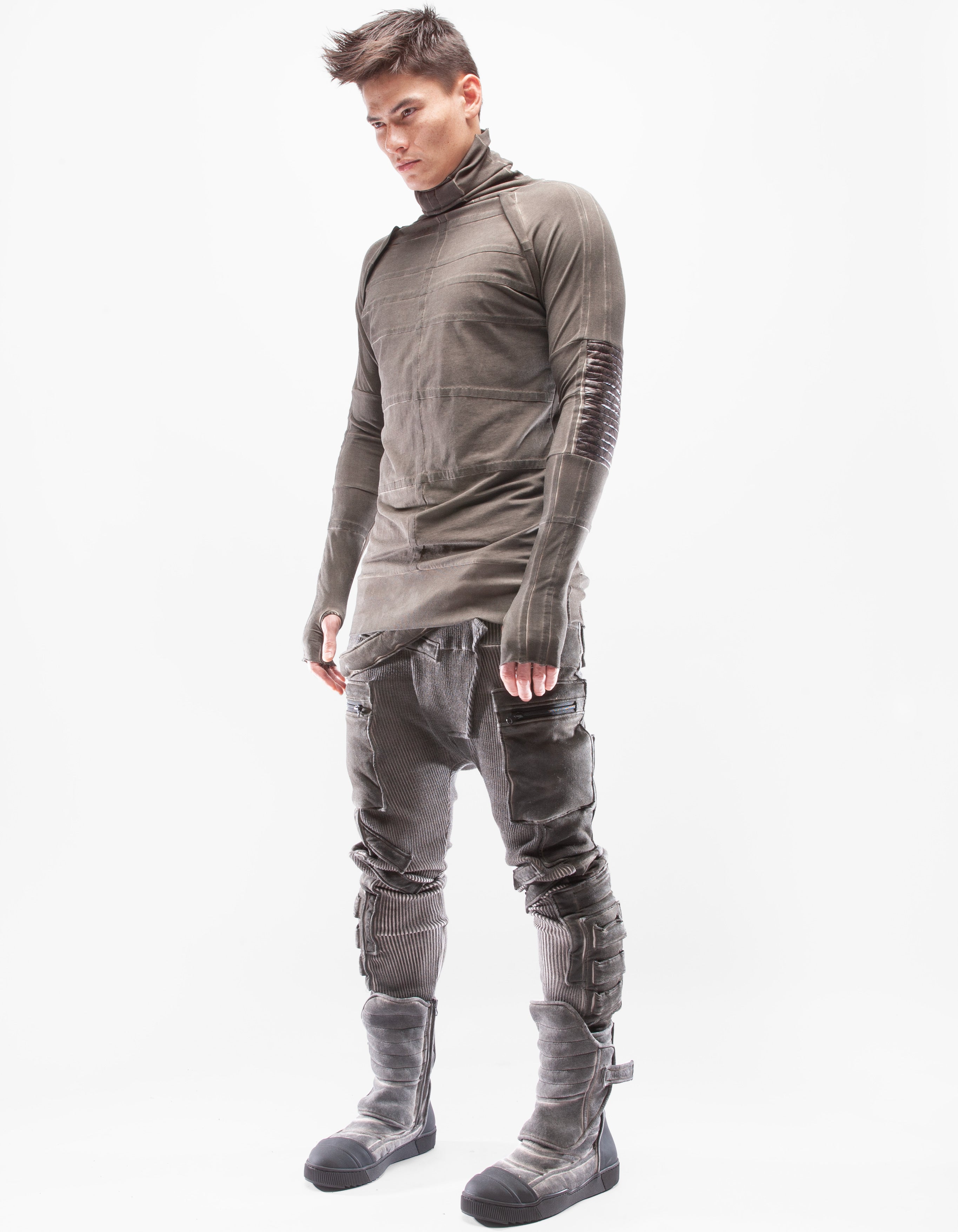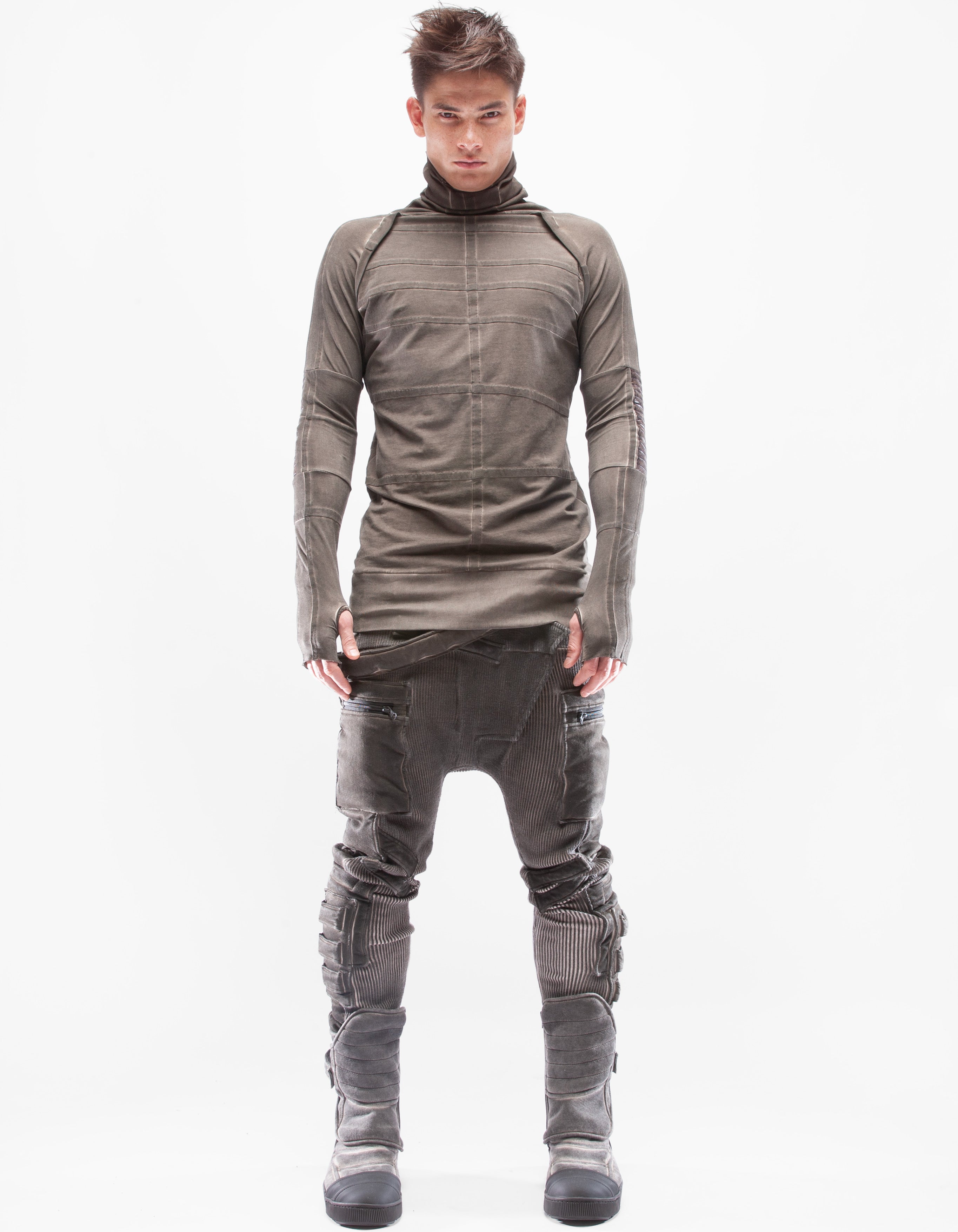 ياقة عالية وأكمام طويلة على شكل أصابع