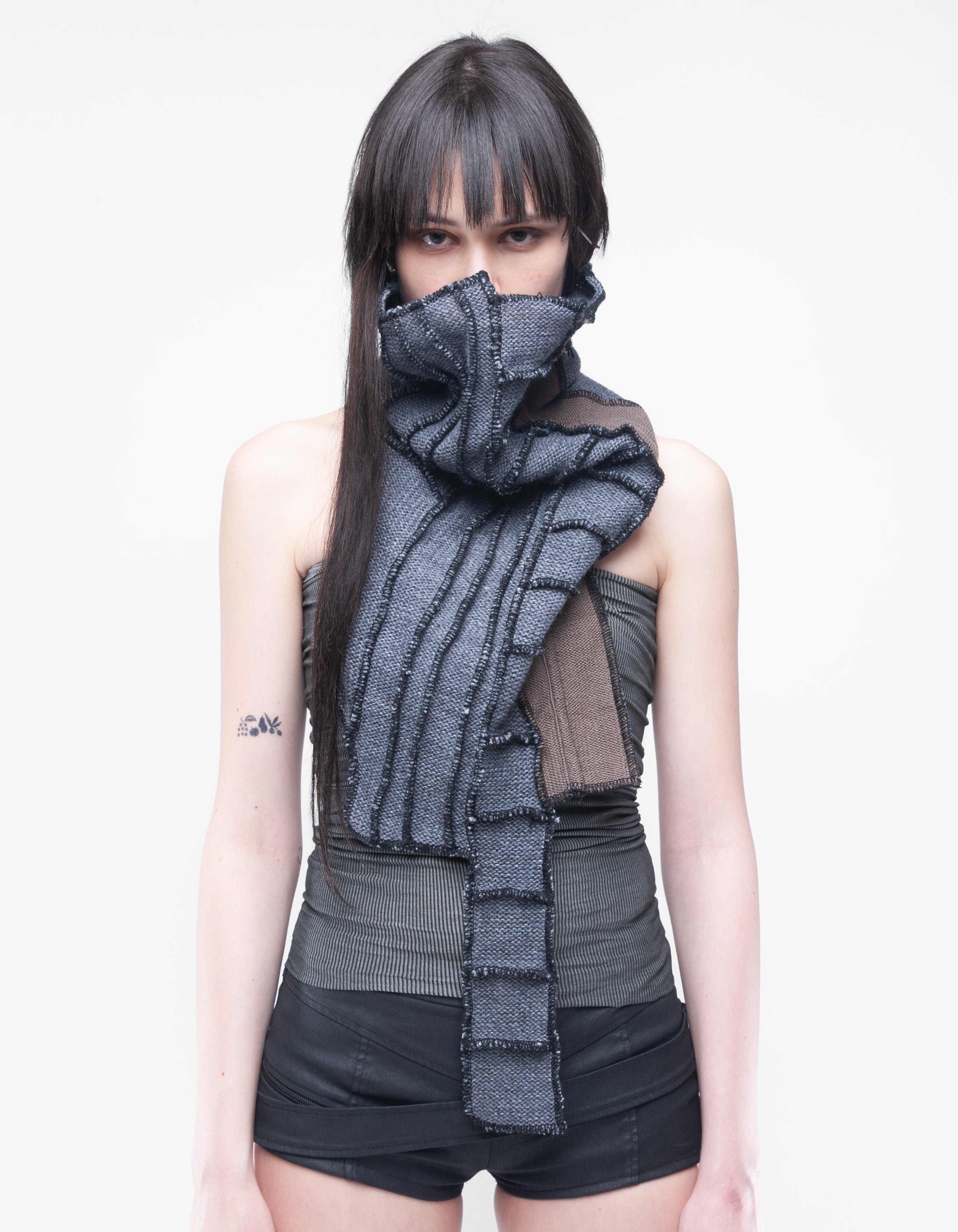 شال رقبة صوفي غير متماثل محبوك بتفاصيل دقيقة