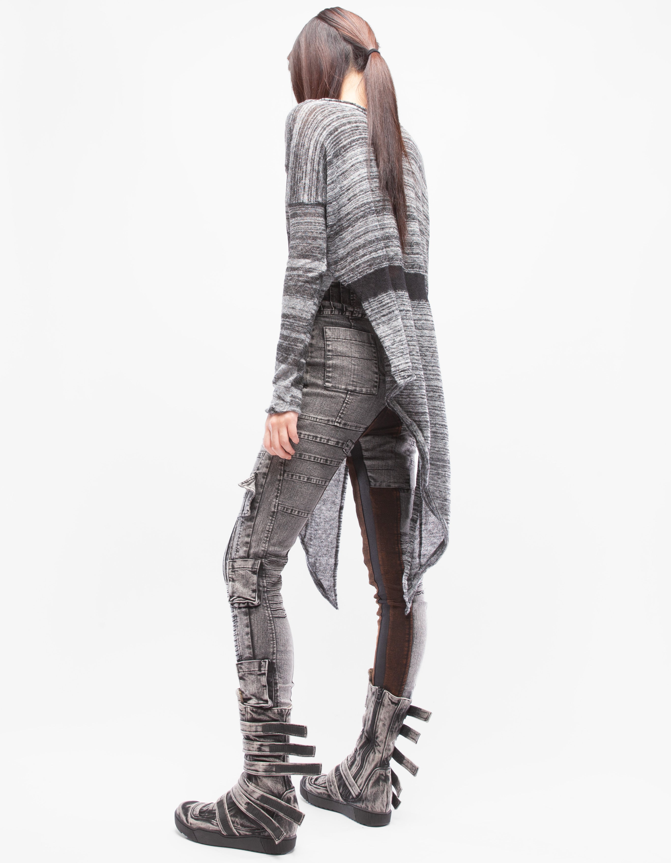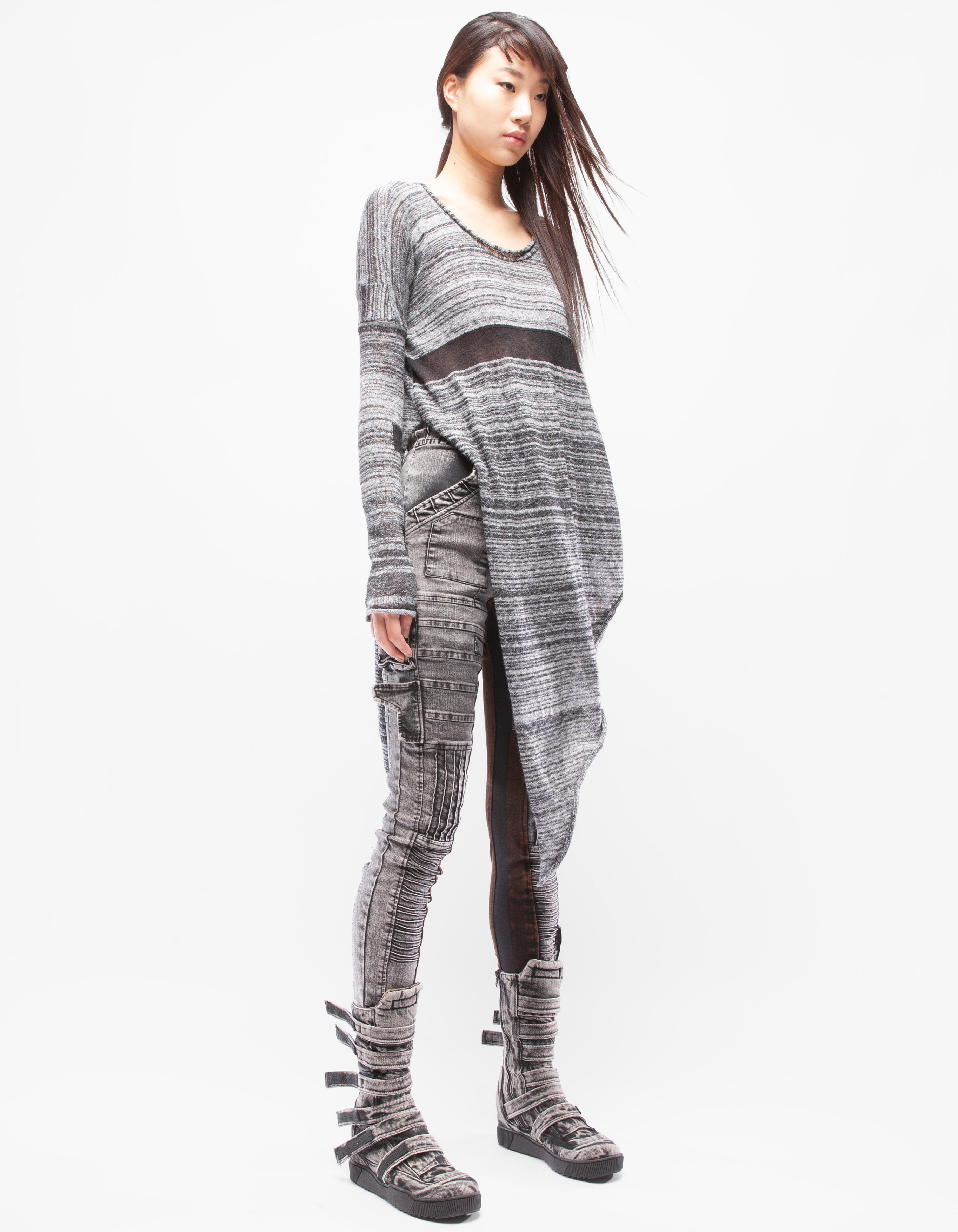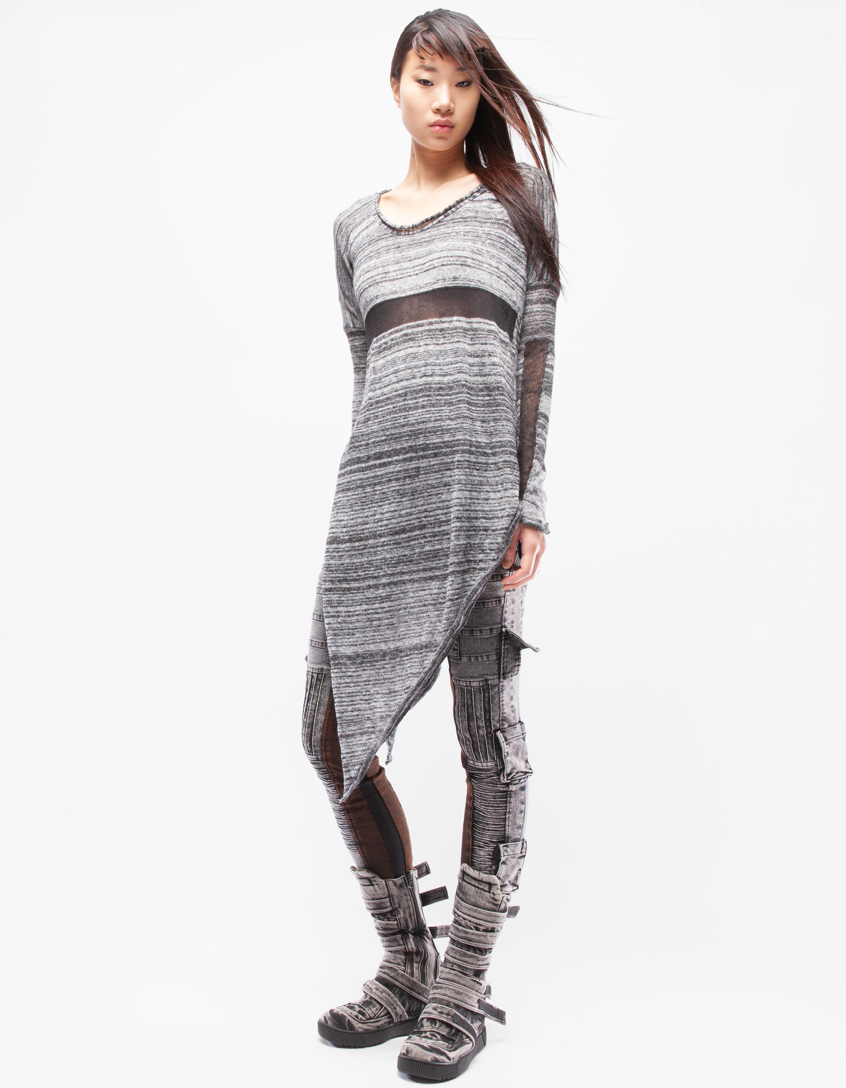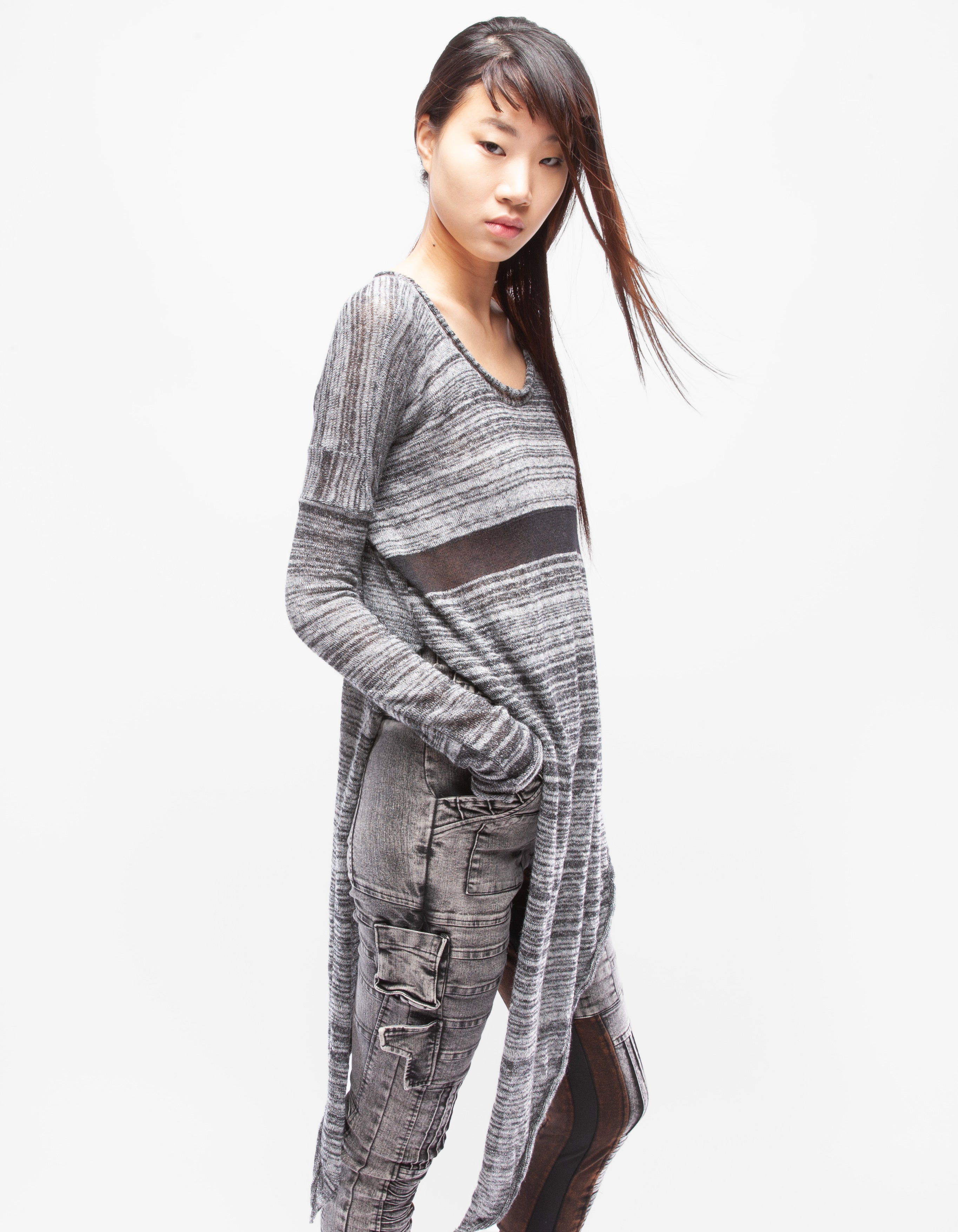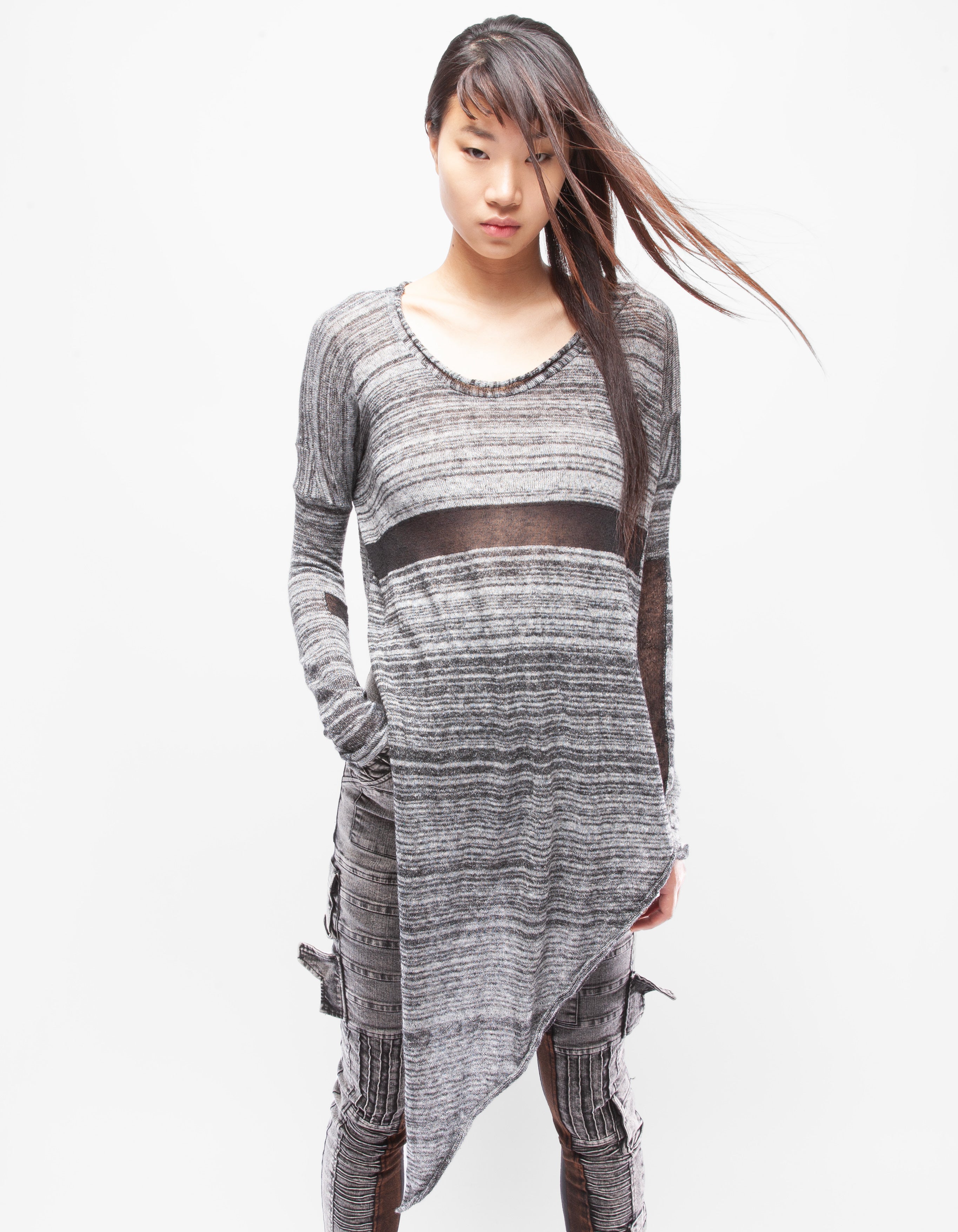 fine knitted wool asymmetric long top