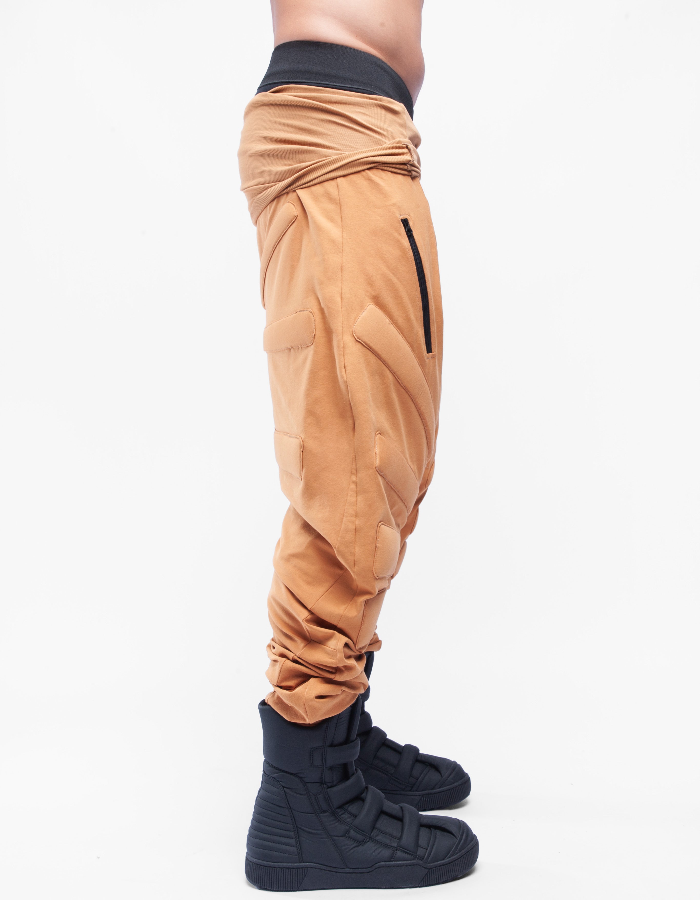 soft cozy elastic cotton deep baggy pants with neoprene pads and elastic rib belt