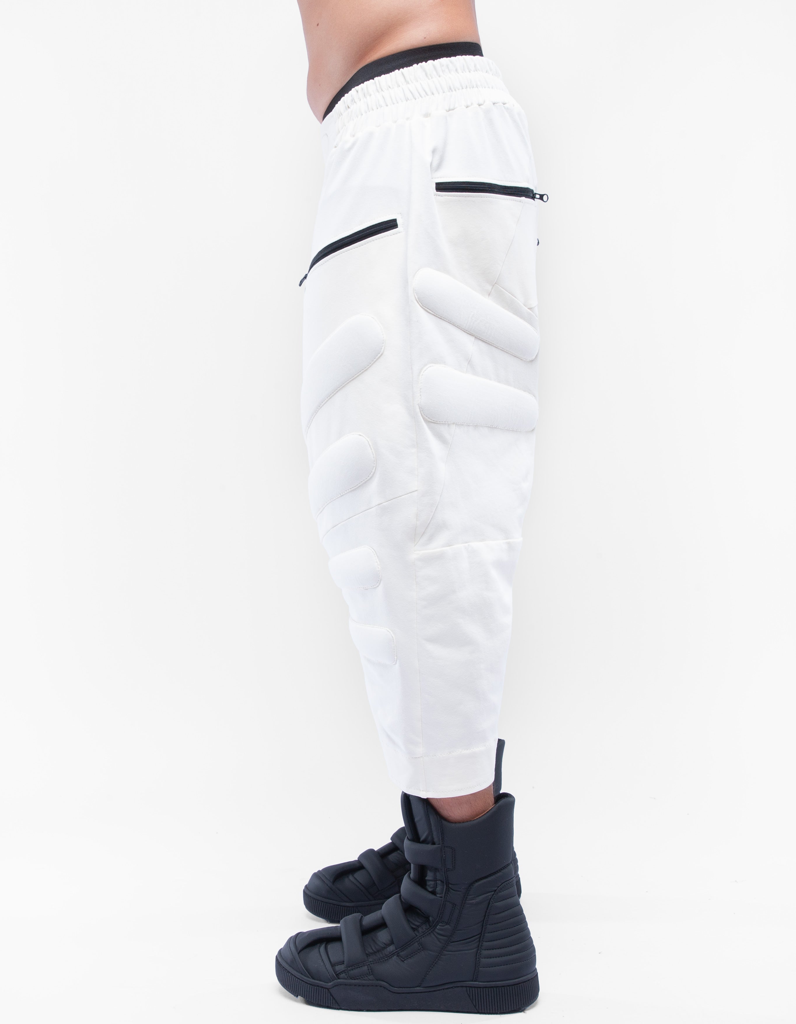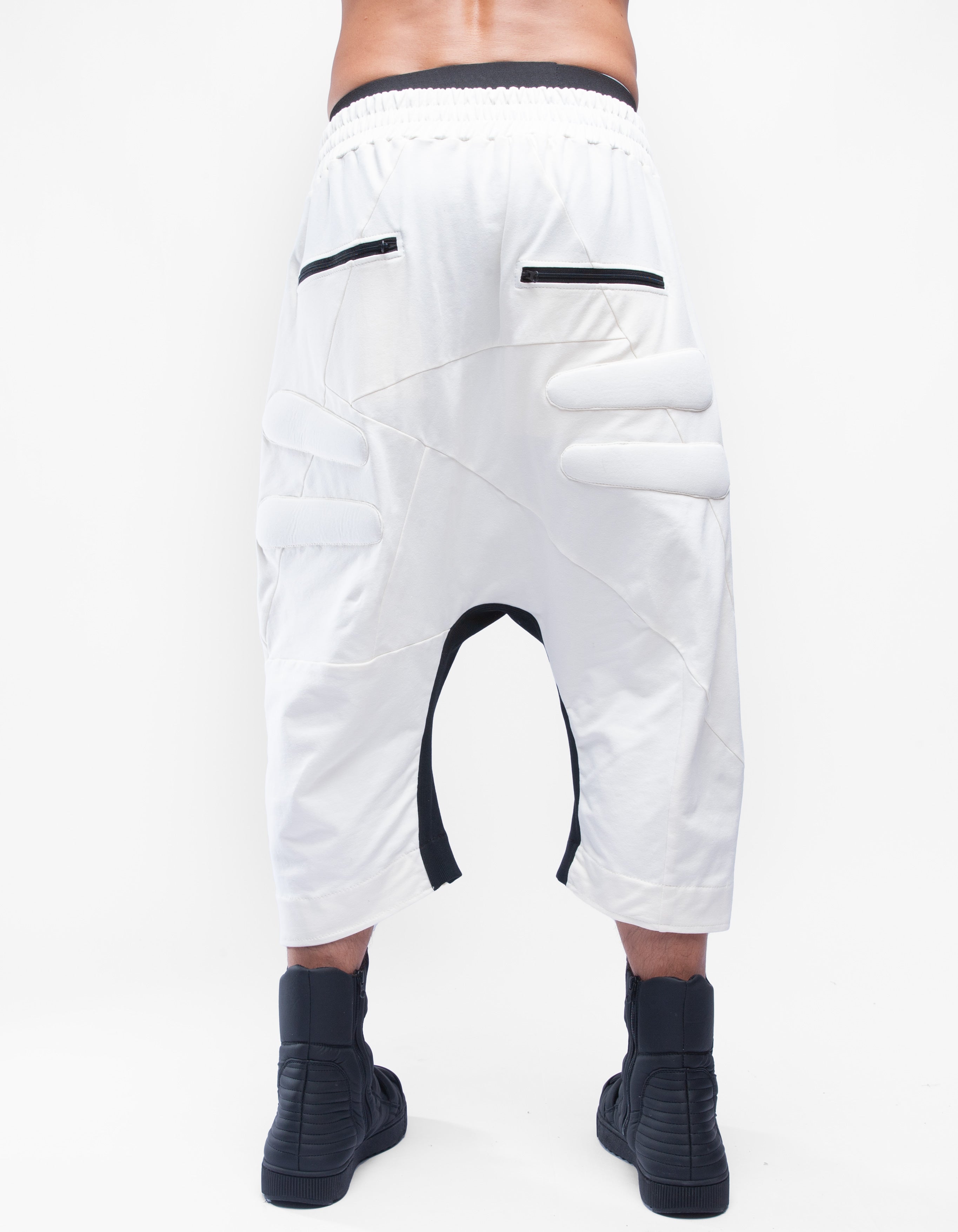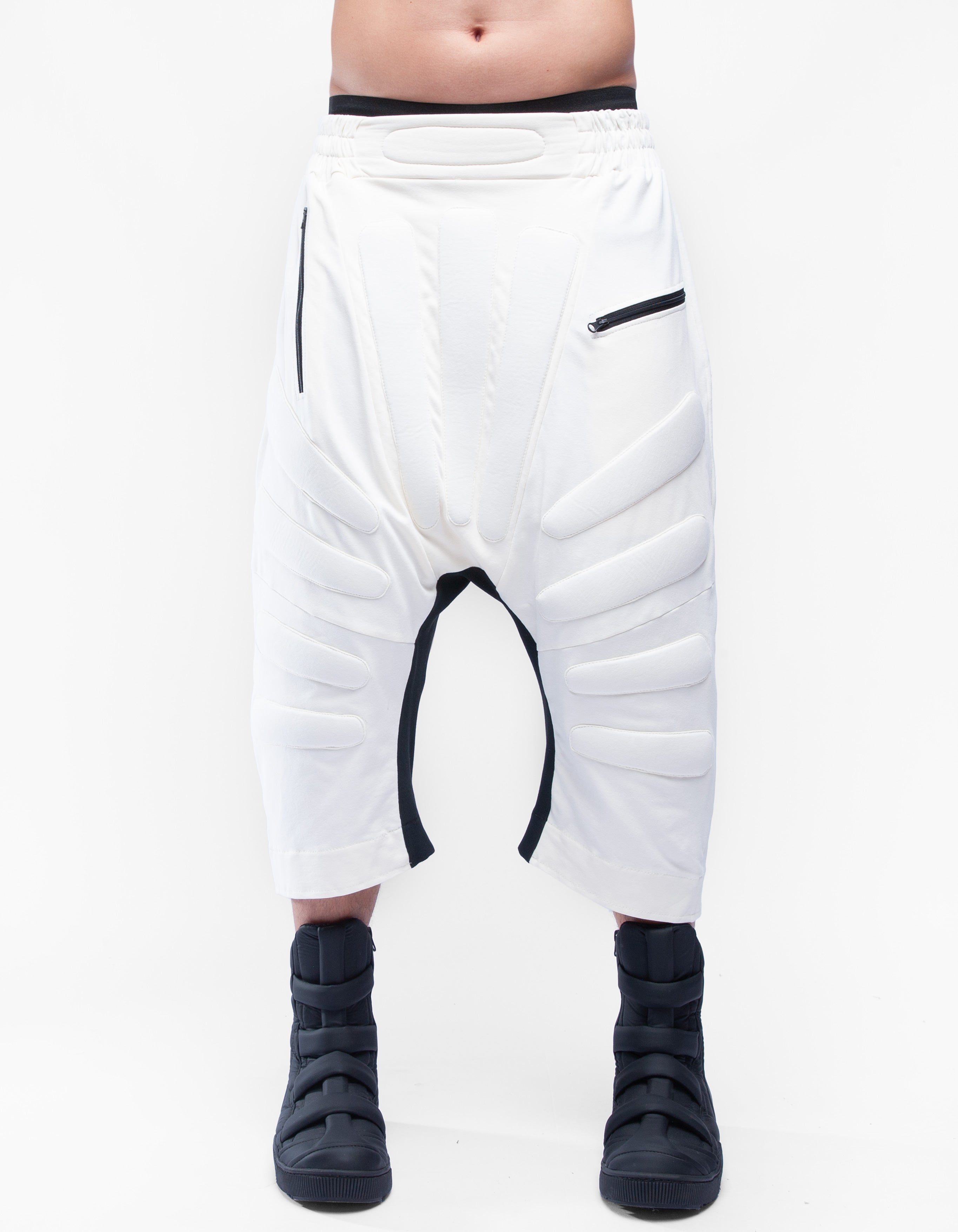 zipped pockets, elastic belt
