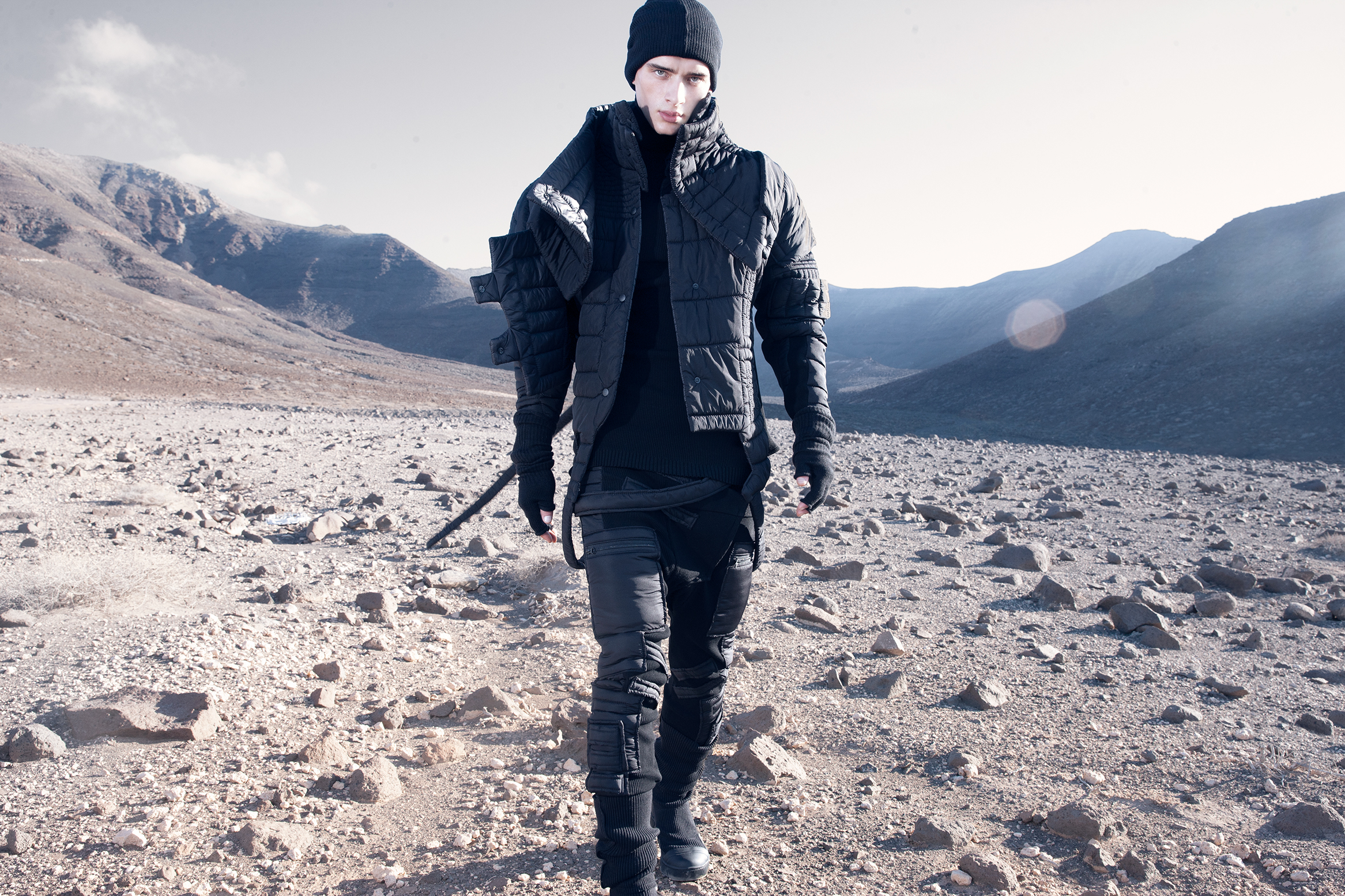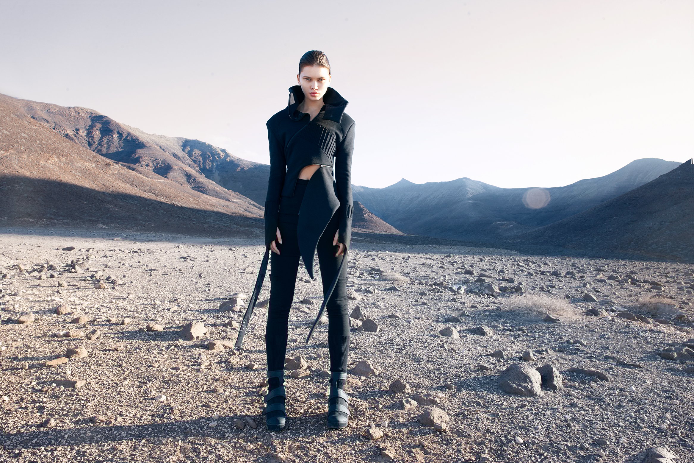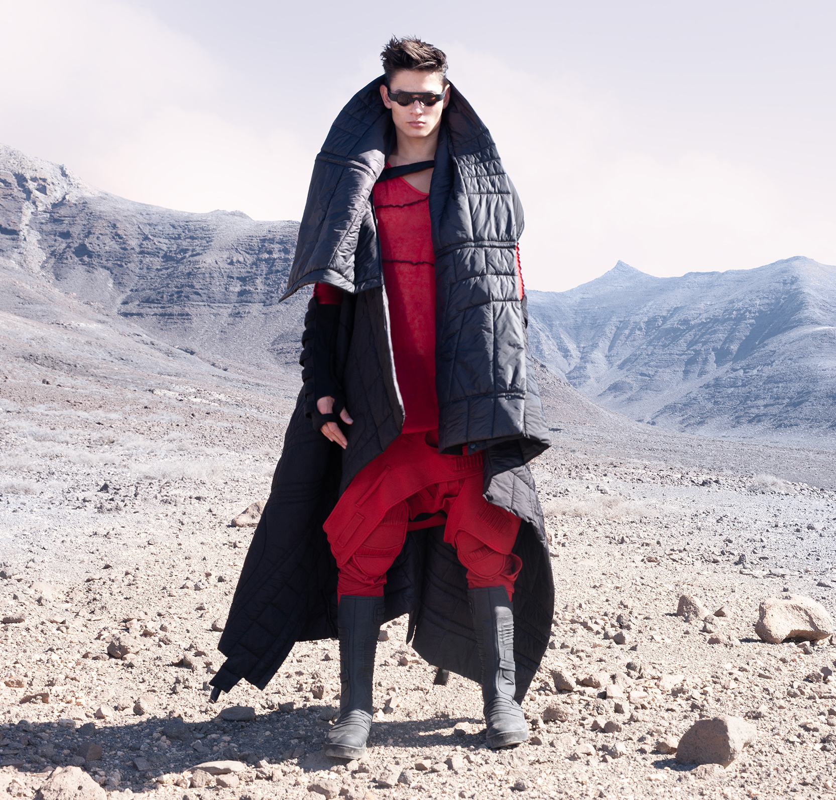 The Metatron collection introduces a range of woolen coats, crafted from premium double-layered Italian wool with a neoprene appearance. These coats are intentionally deconstructive, boasting a strict yet punk influence through their intricate design and multi-layered elements. Each piece challenges traditional notions of fashion, daring to be different and impactful.