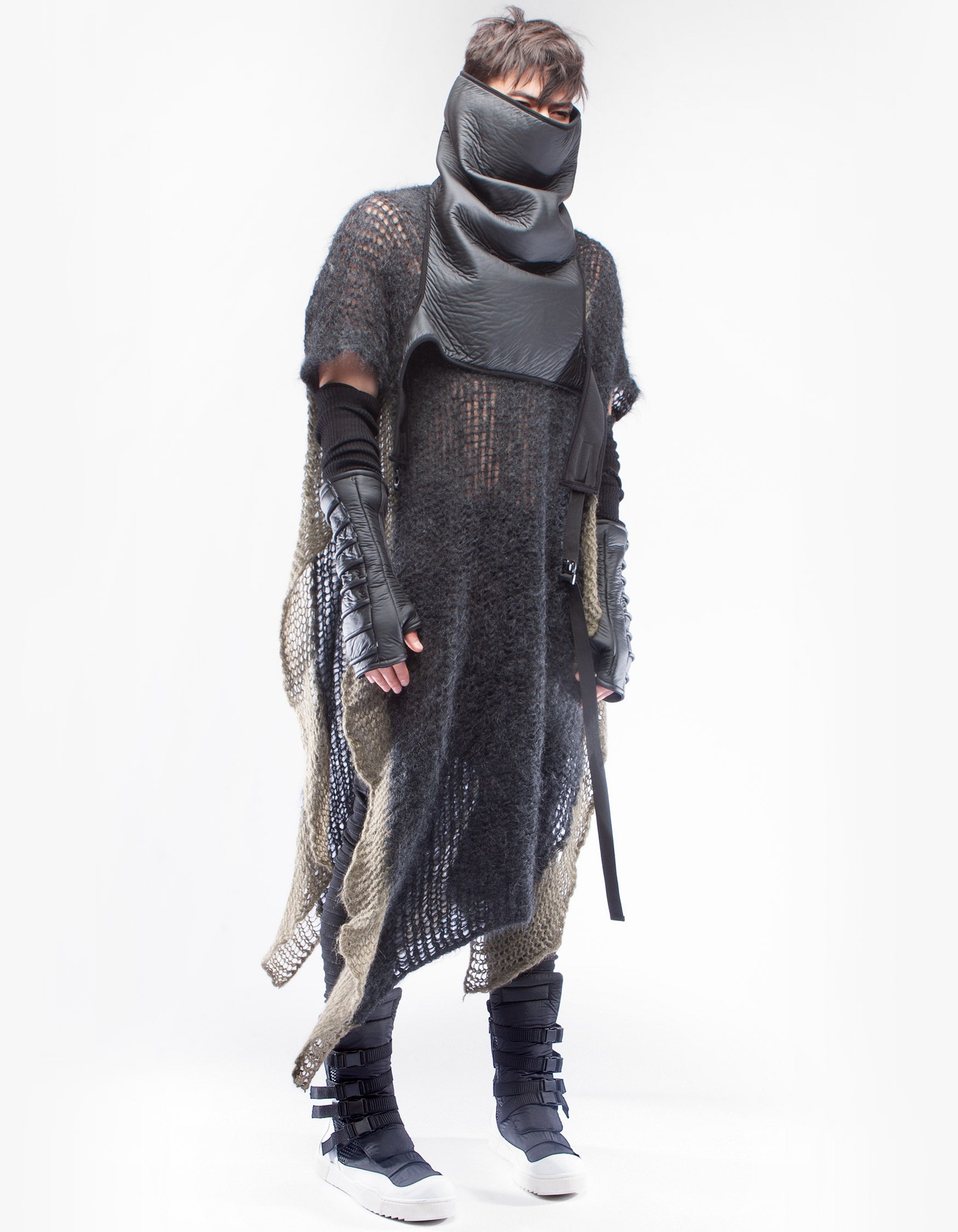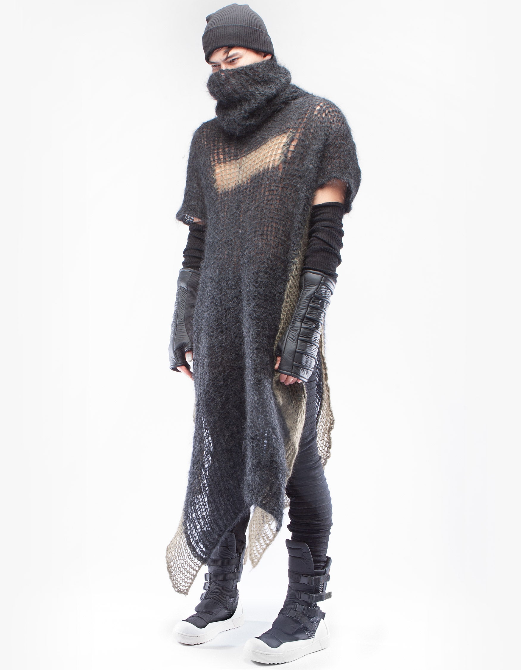 Fein gestricktes Oversize-Oberteil aus Mohair mit hohem Kragen