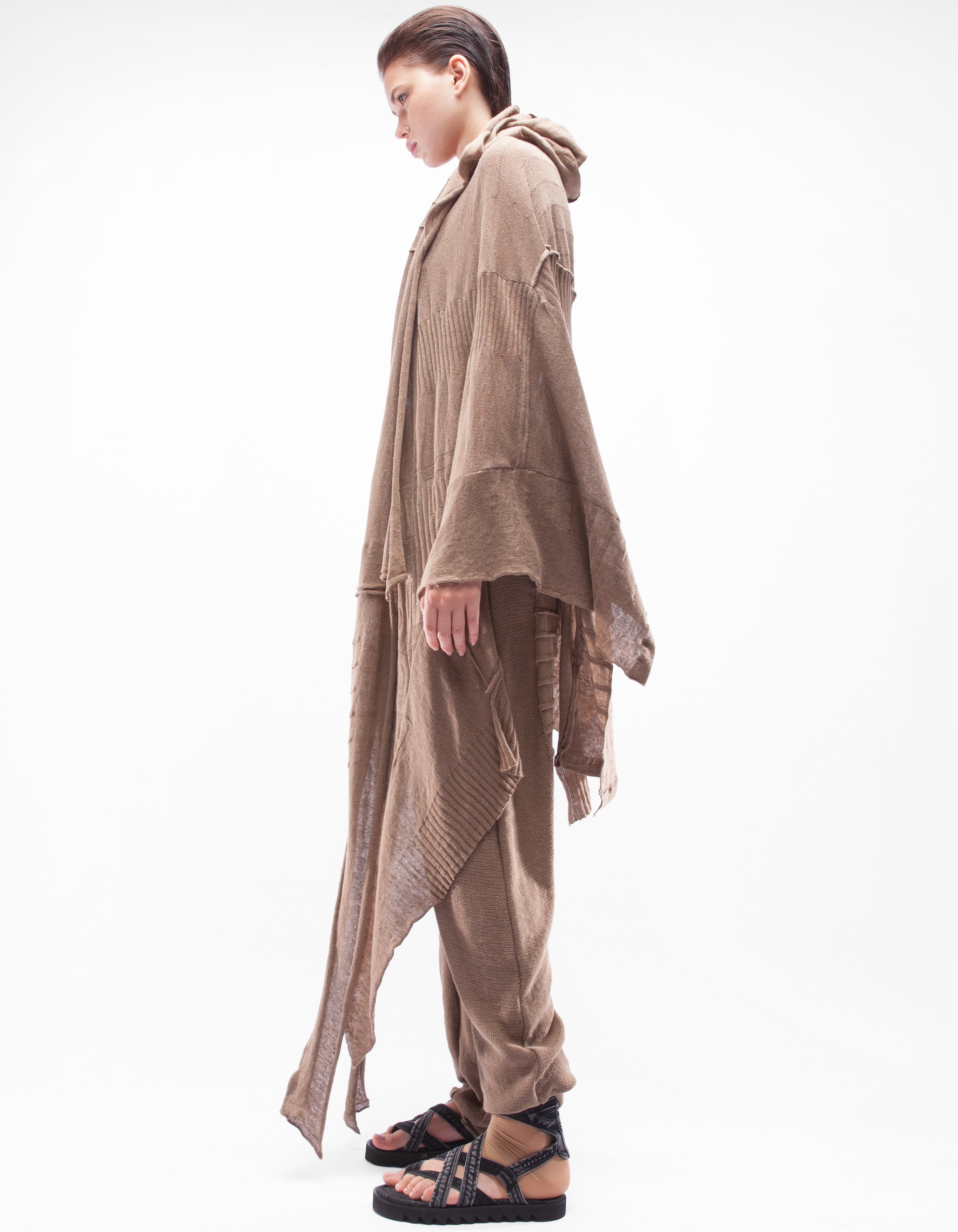 Detaillierter fein gestrickter Kapuzenschal aus Leinen