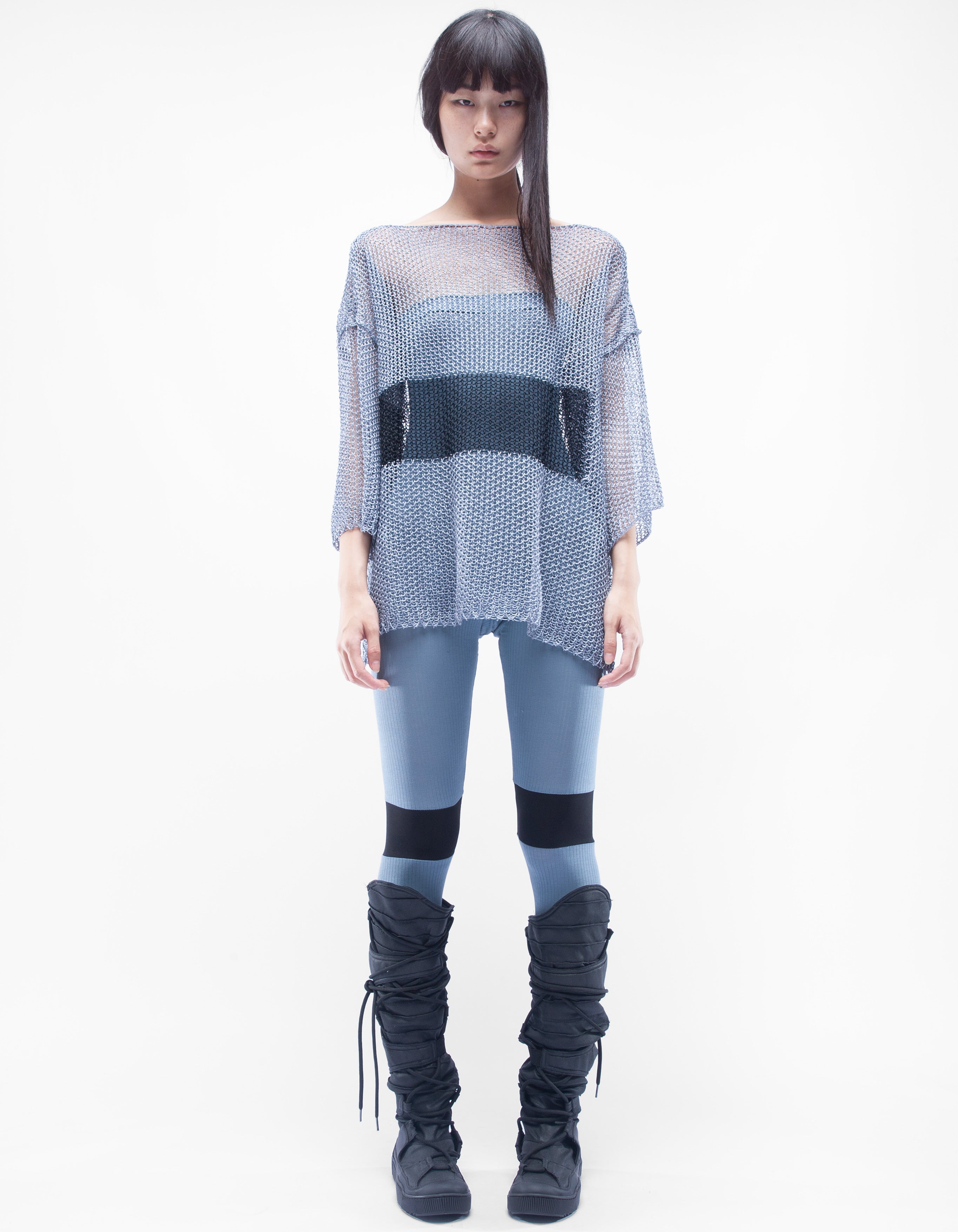 detailliertes schweres gestricktes natürliches Leinen Oversize-Top