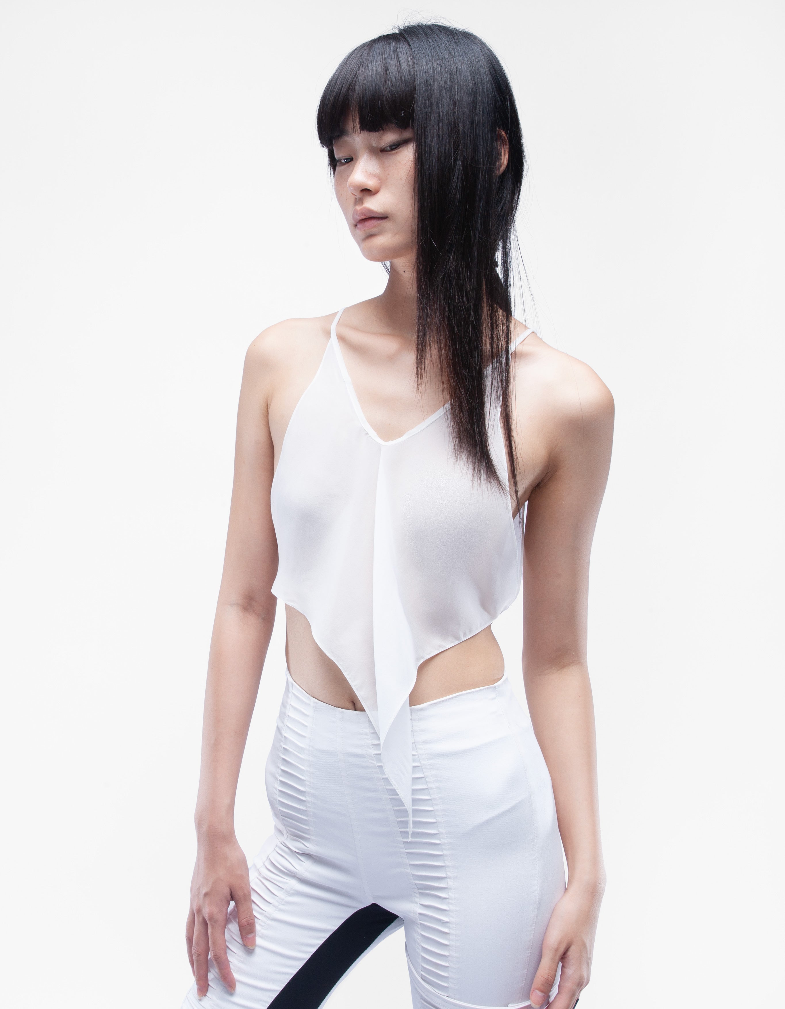 hochwertiges Crepe-Top ohne Ärmel mit V-Ausschnitt