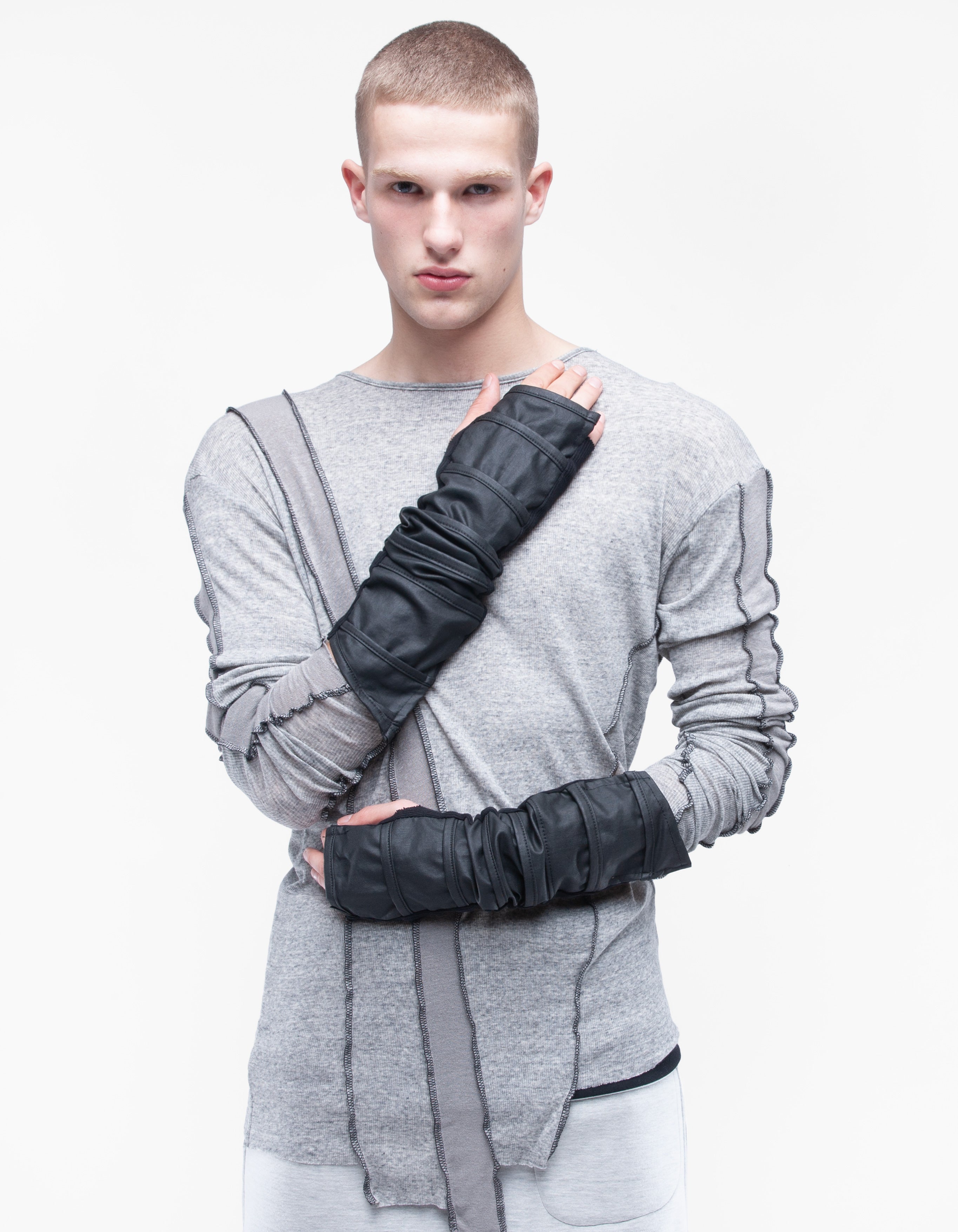 detaillierte elastische gewachste Denim-Einzelfingerhandschuhe