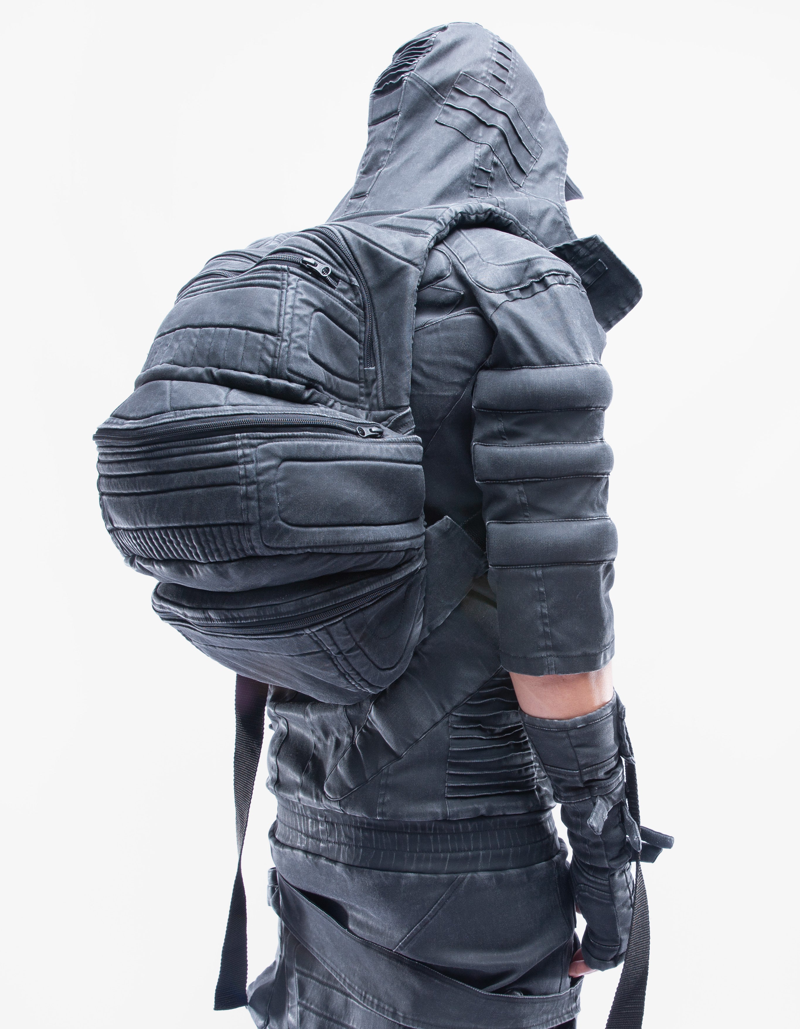 super detaillierte leicht gewachste elastische Denim-Hoodie-Overall