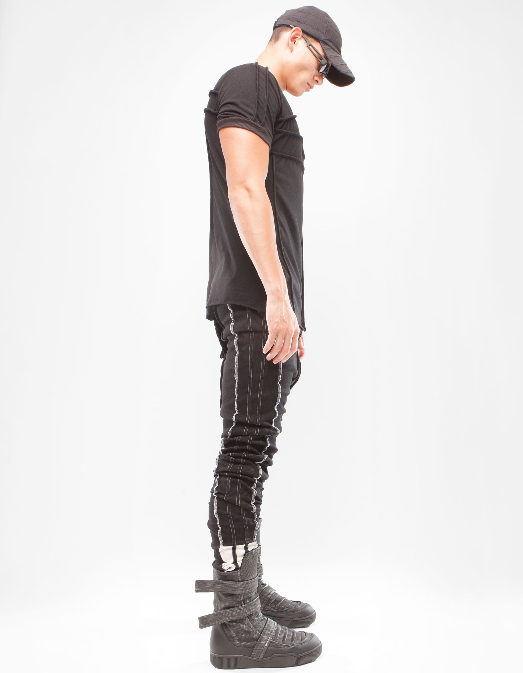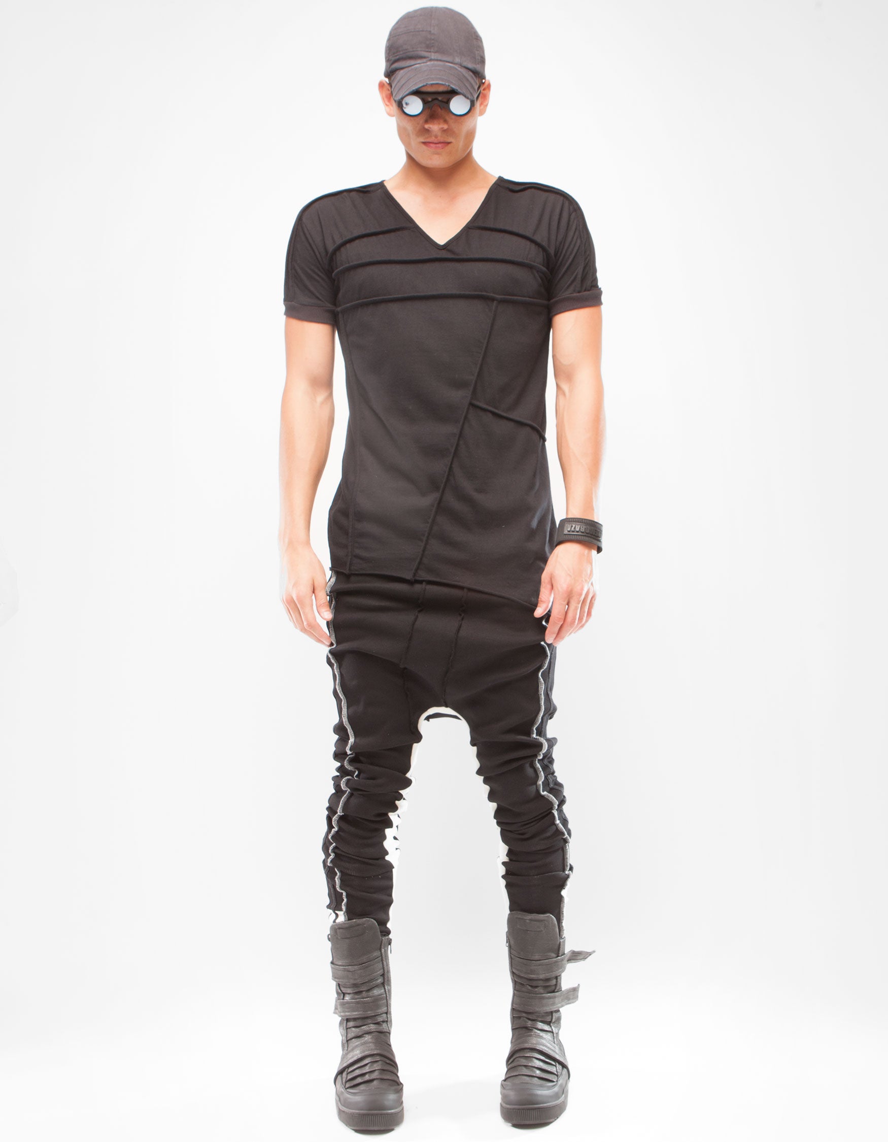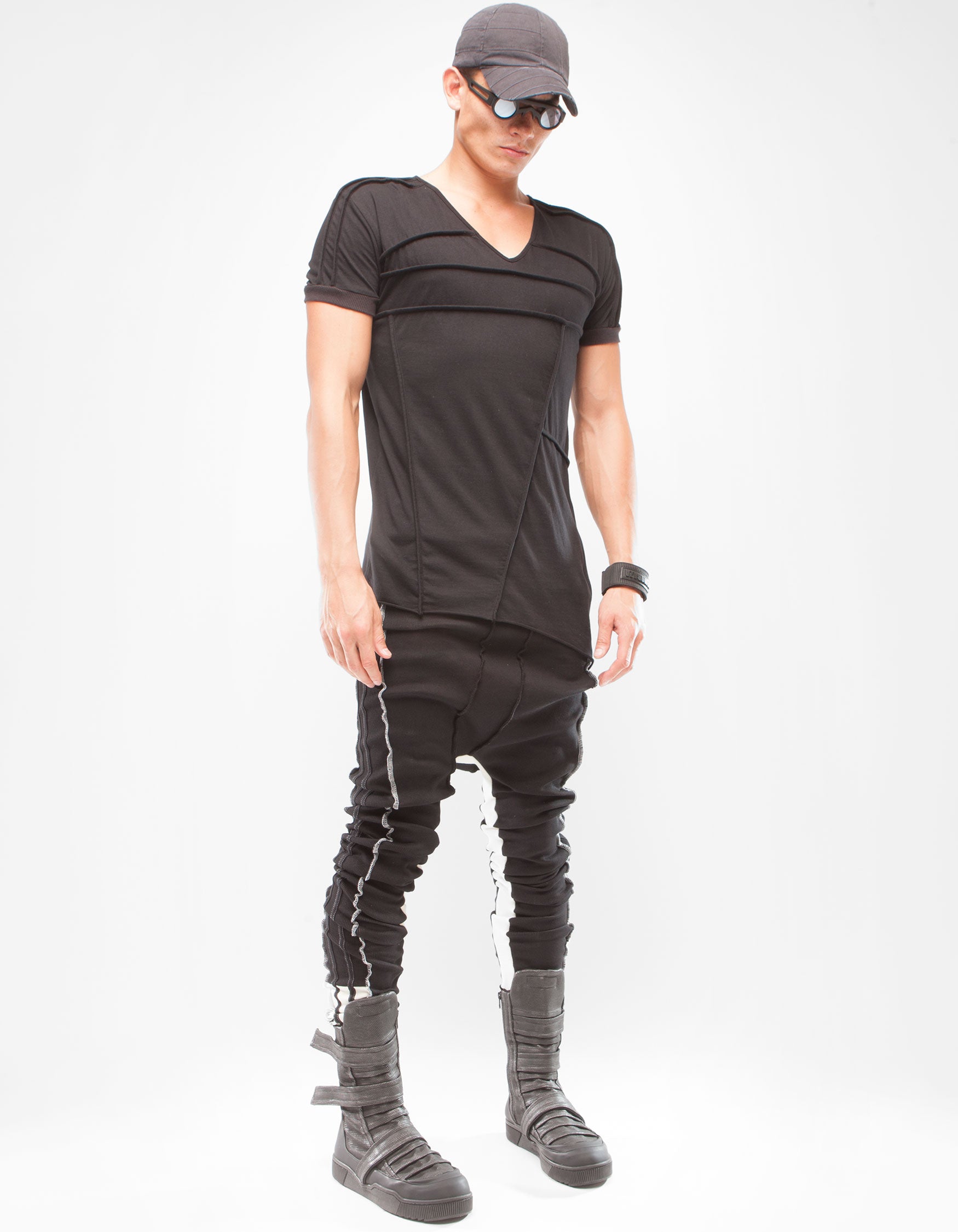 Detailliertes asymmetrisches Herren-T-Shirt mit V-Ausschnitt