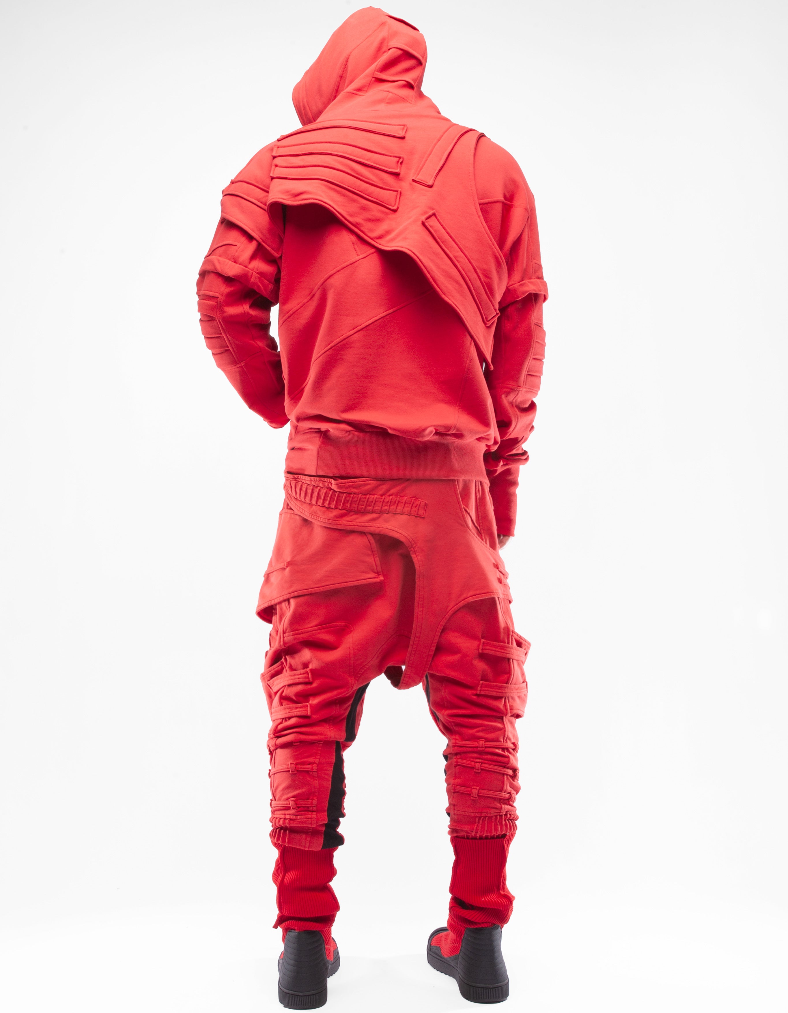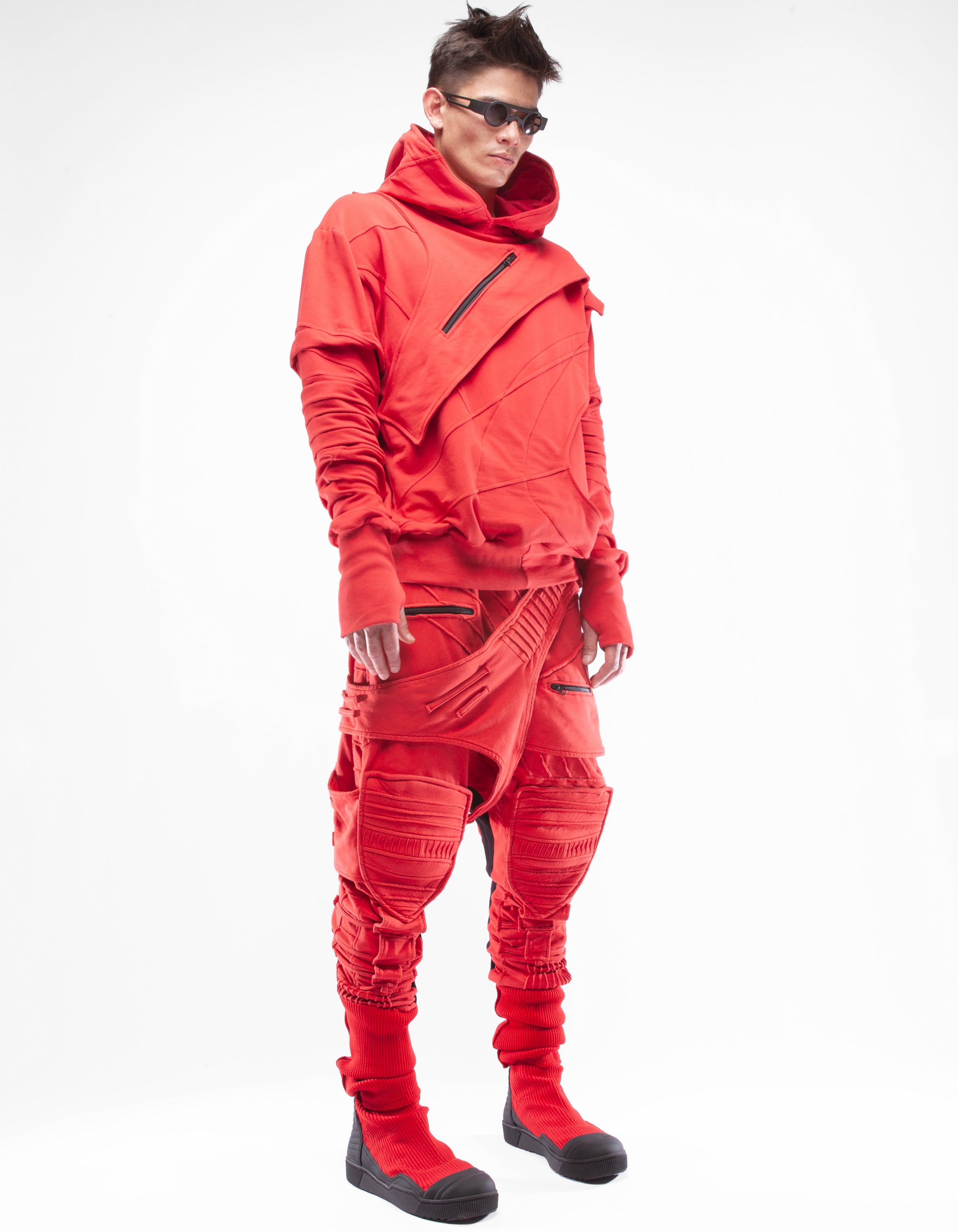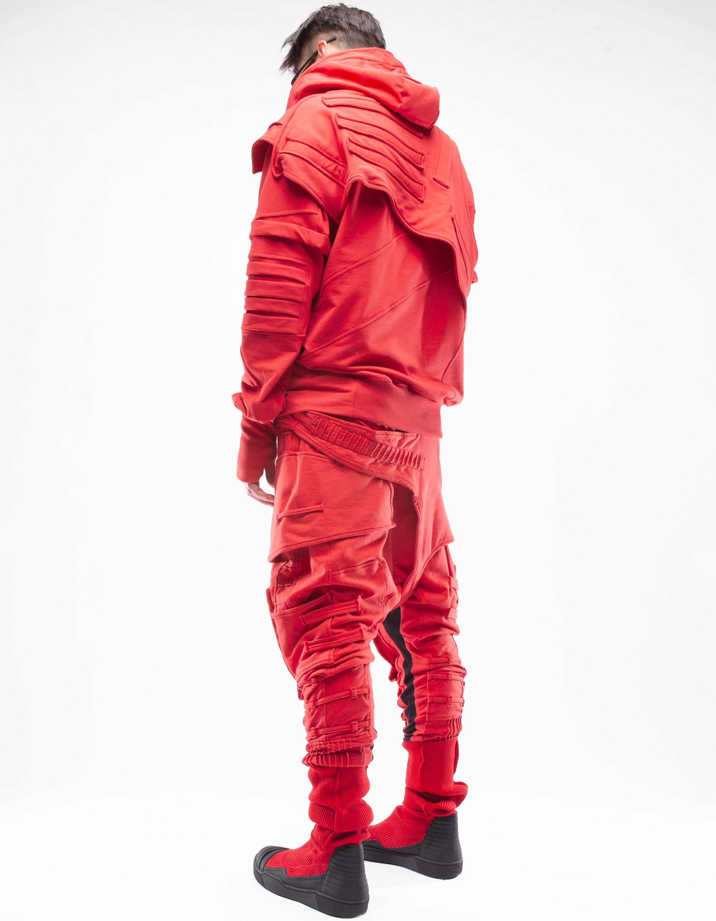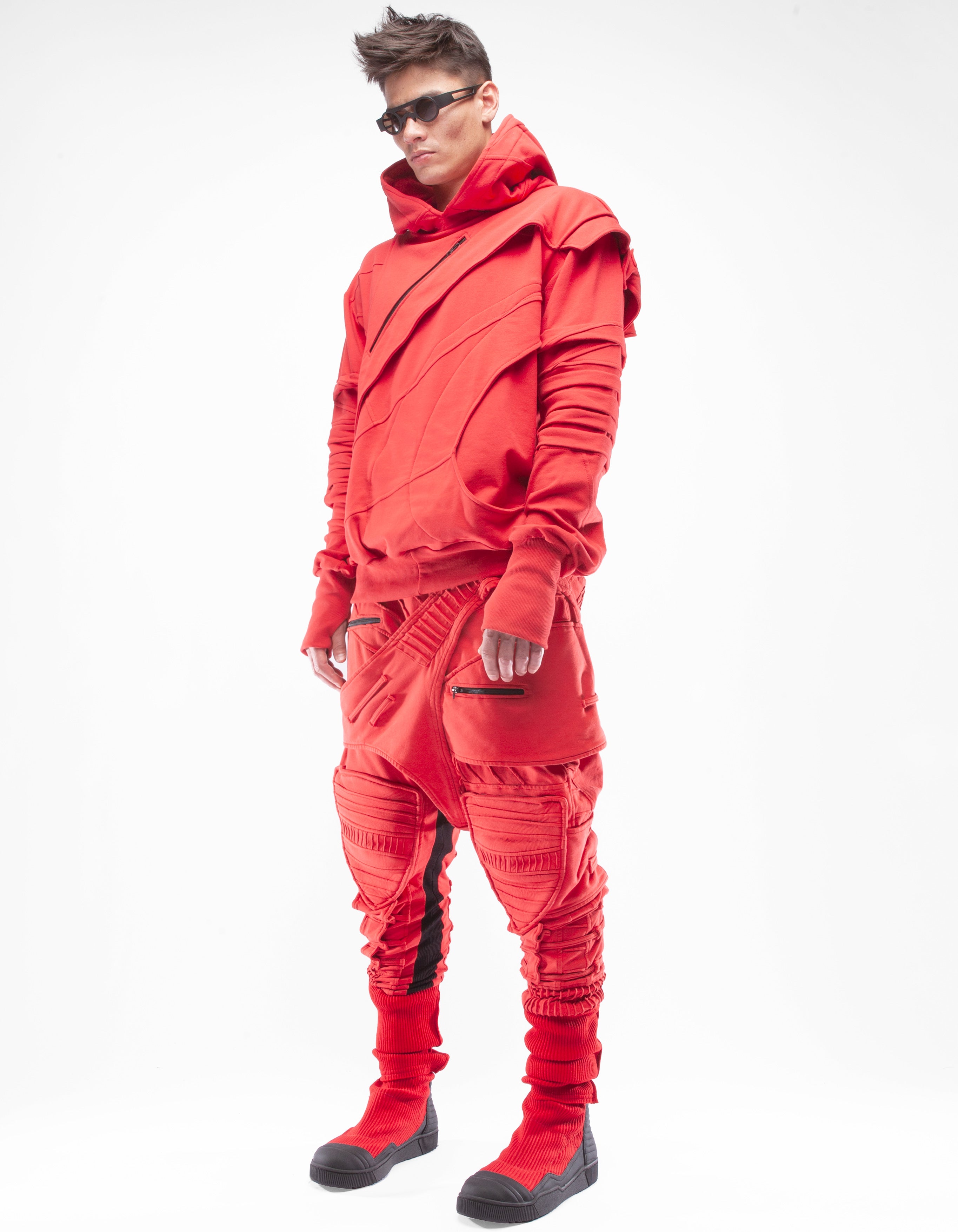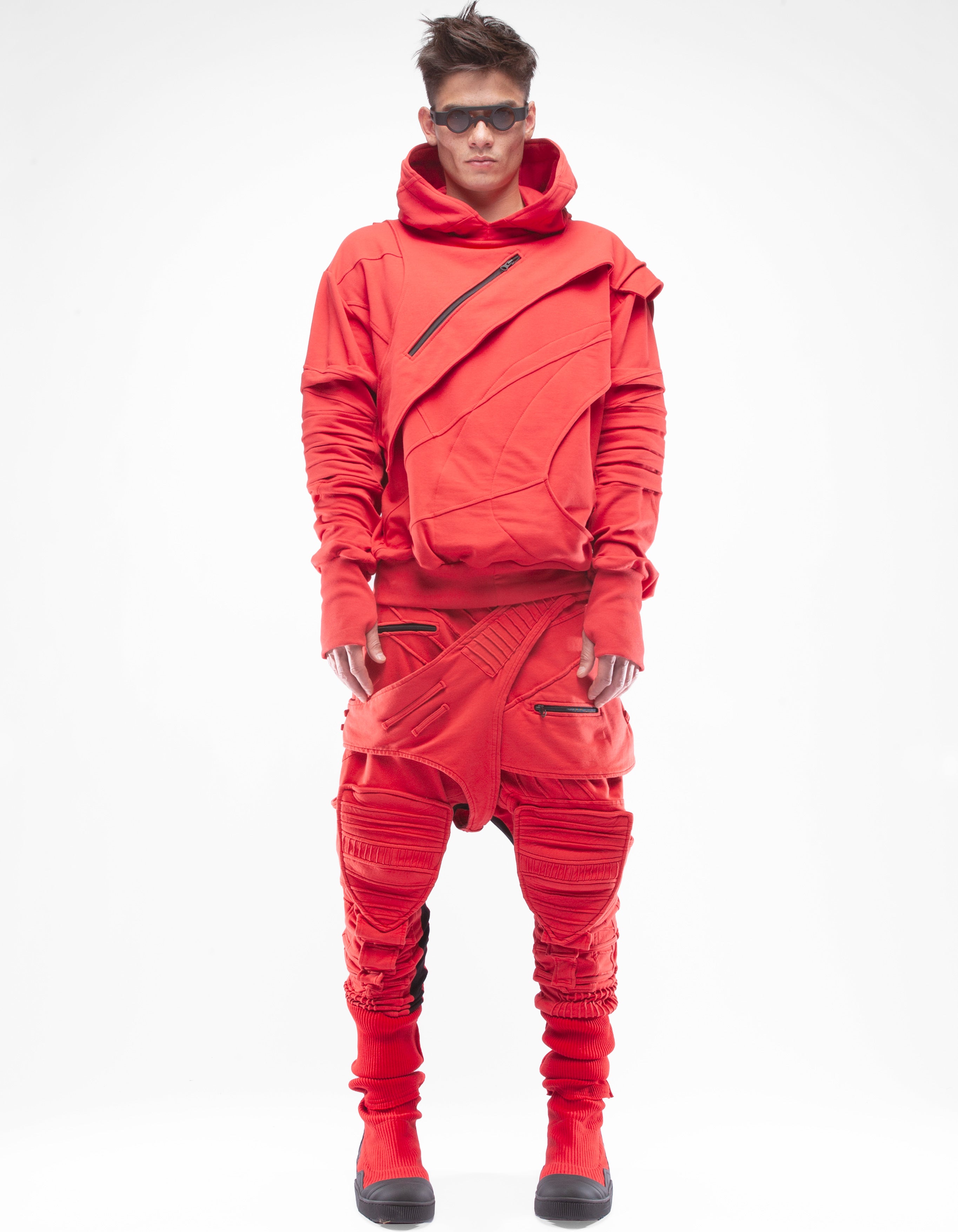 Detaillierte mehrlagige Fleece-Kapuzenjacke mit Fingerripp-Ärmeln und Reißverschlusstasche vorne