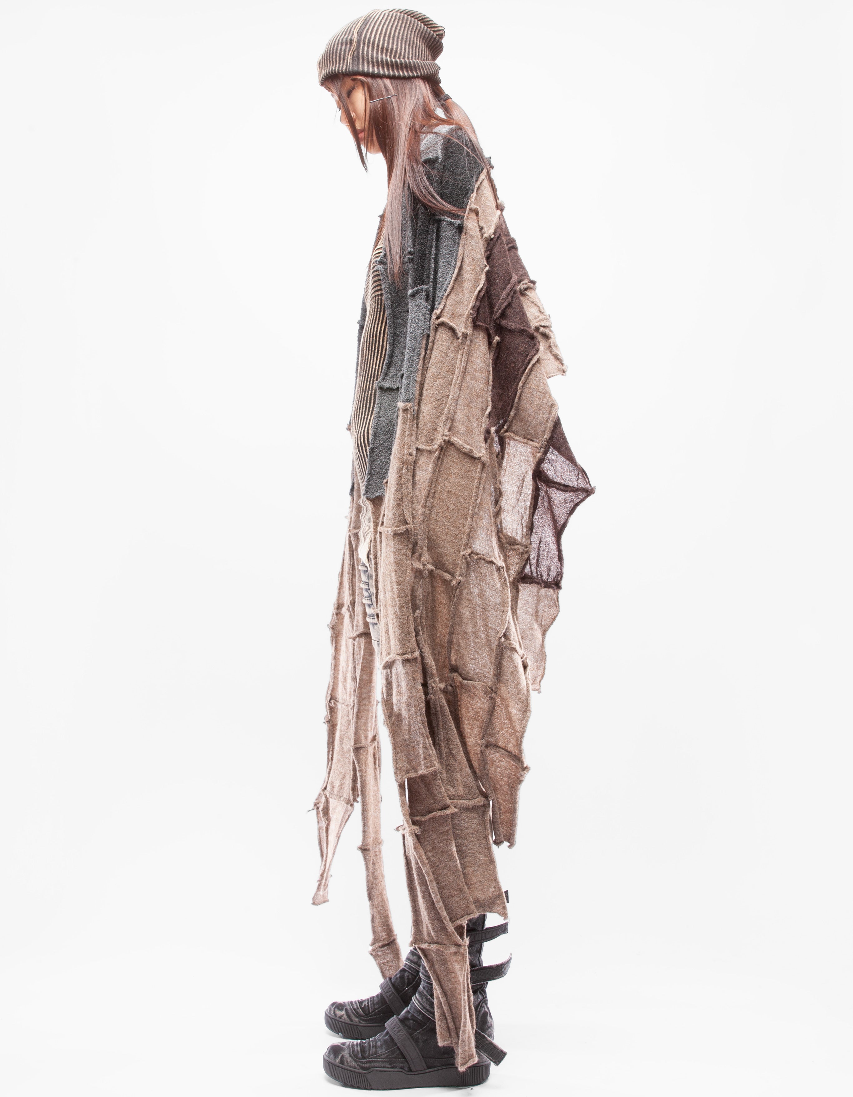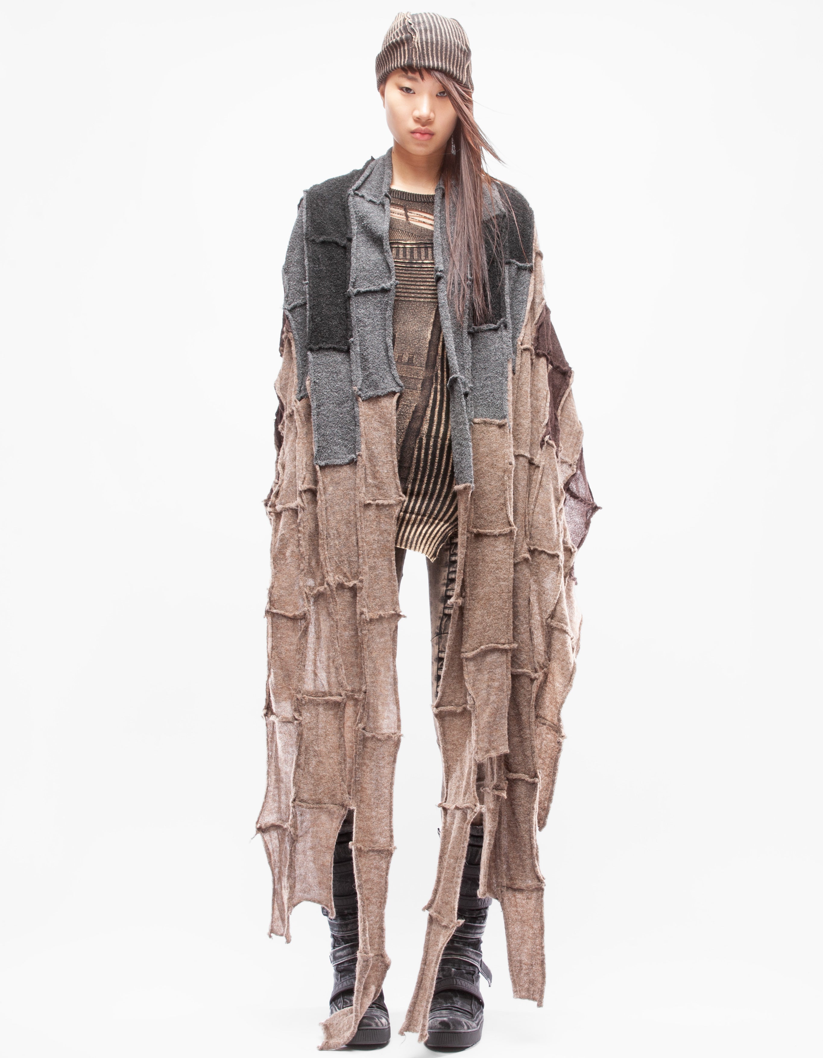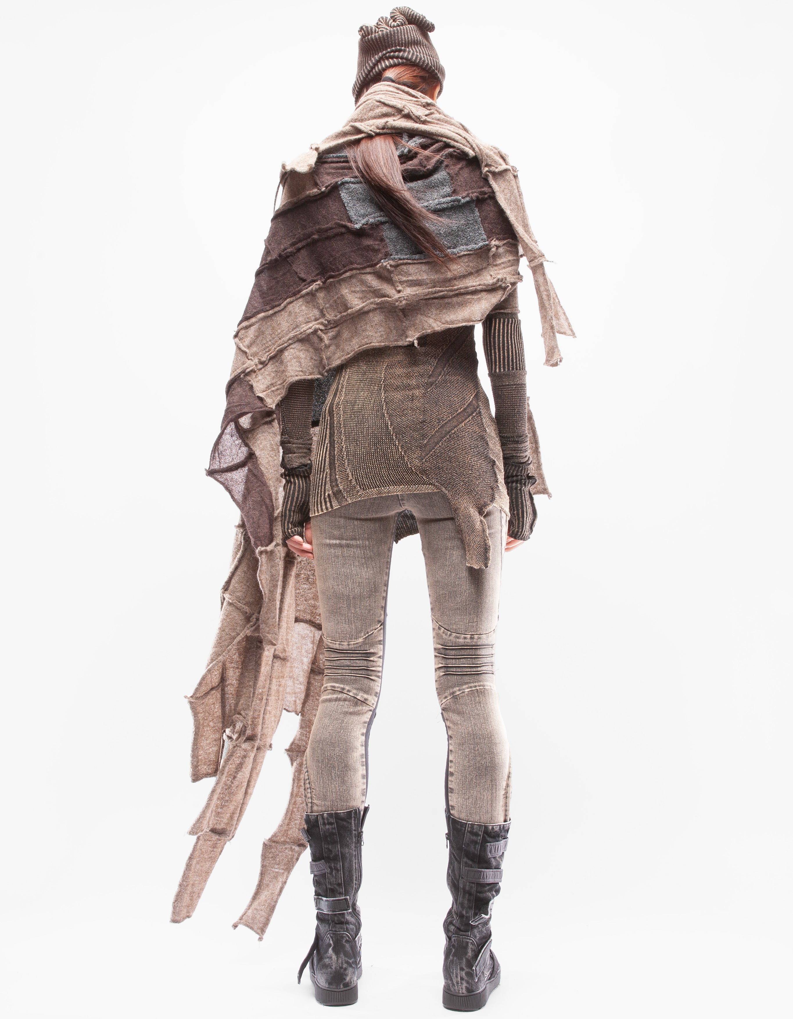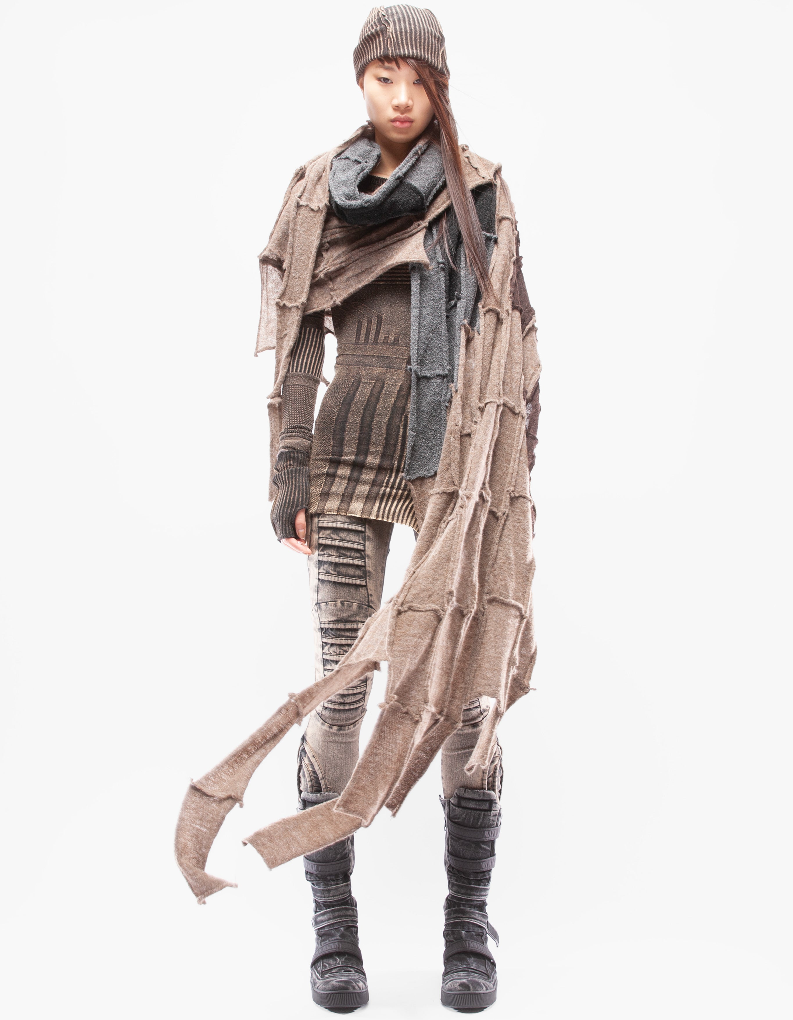 Detaillierter, asymmetrischer, schwerer, gestrickter langer Schal
