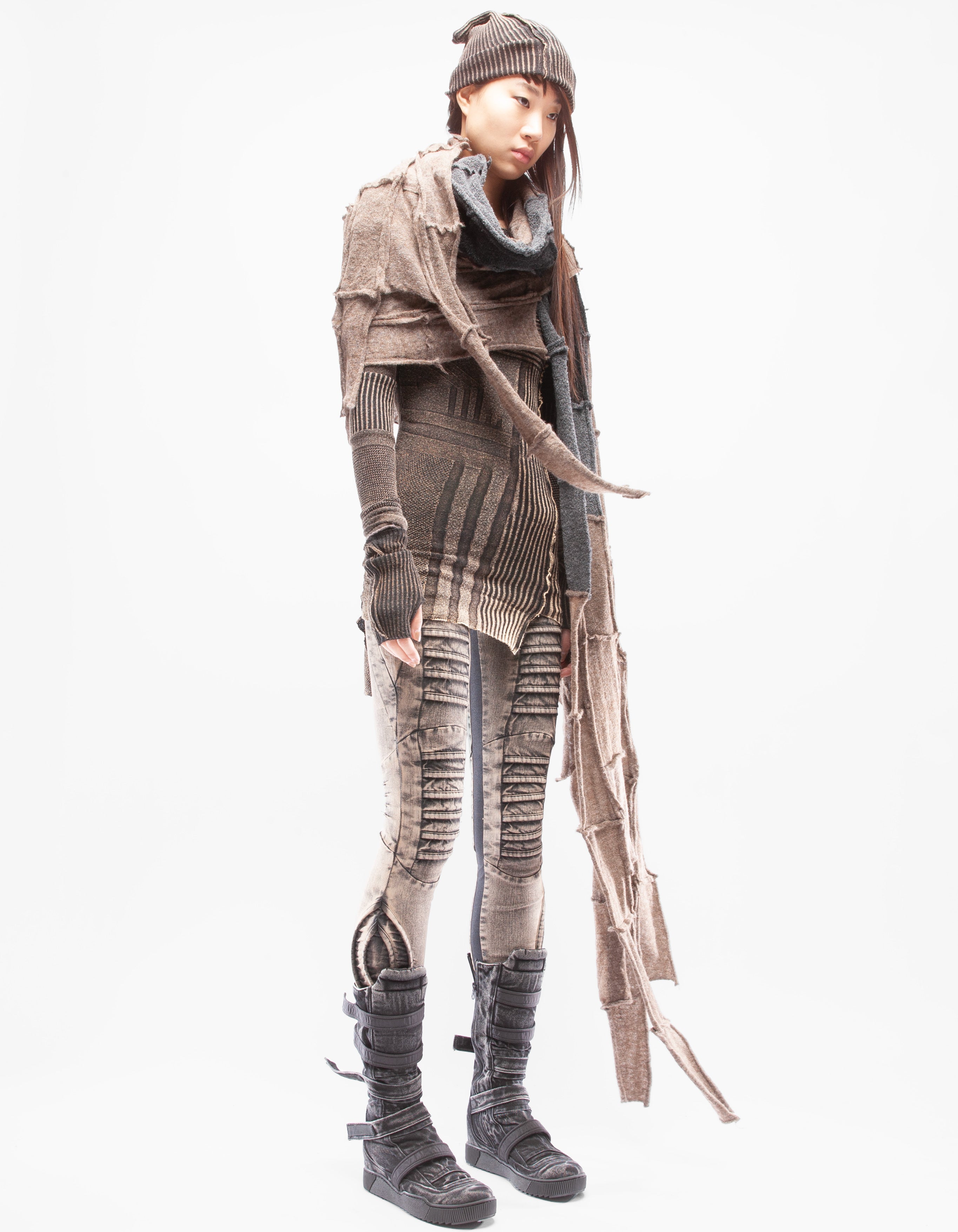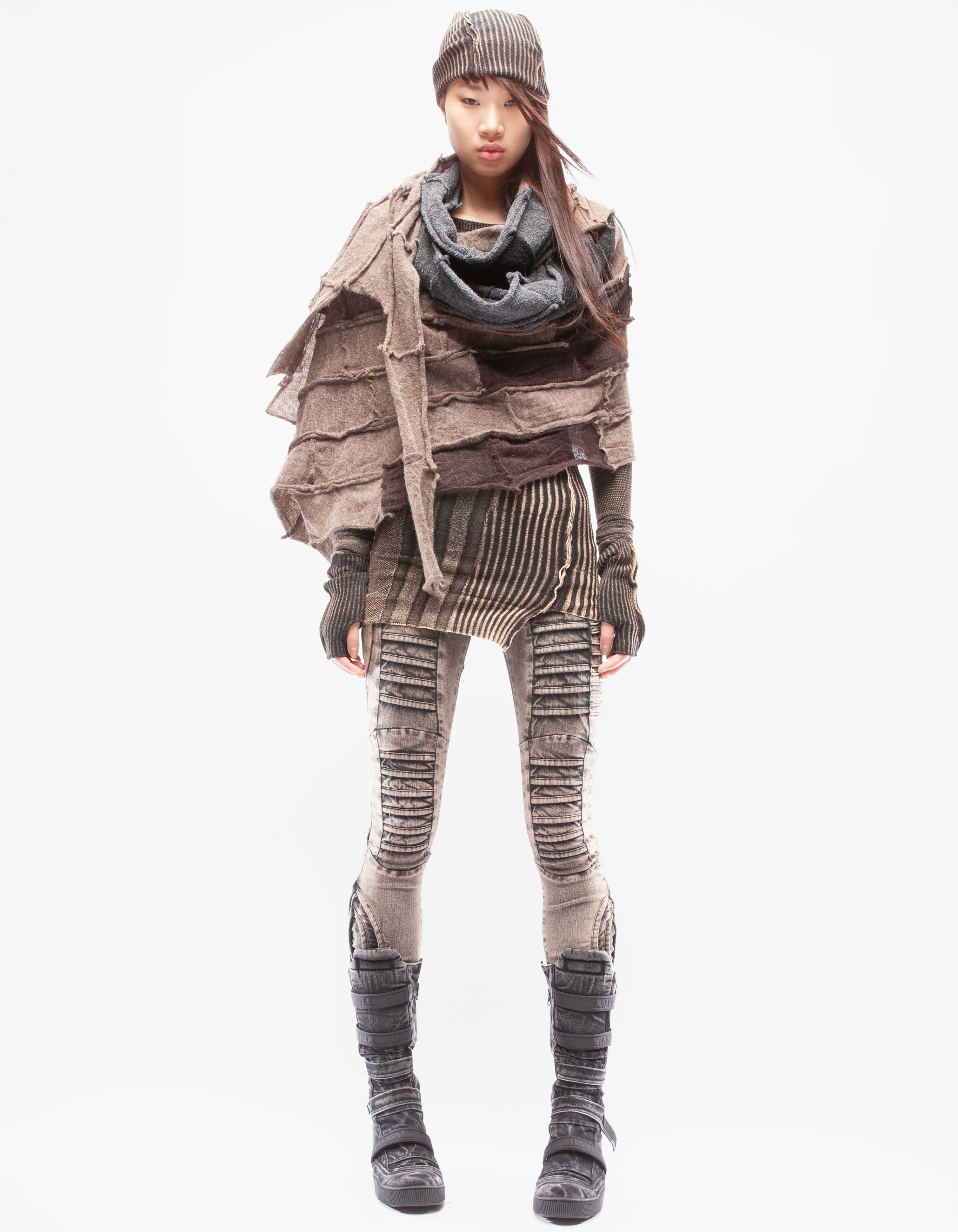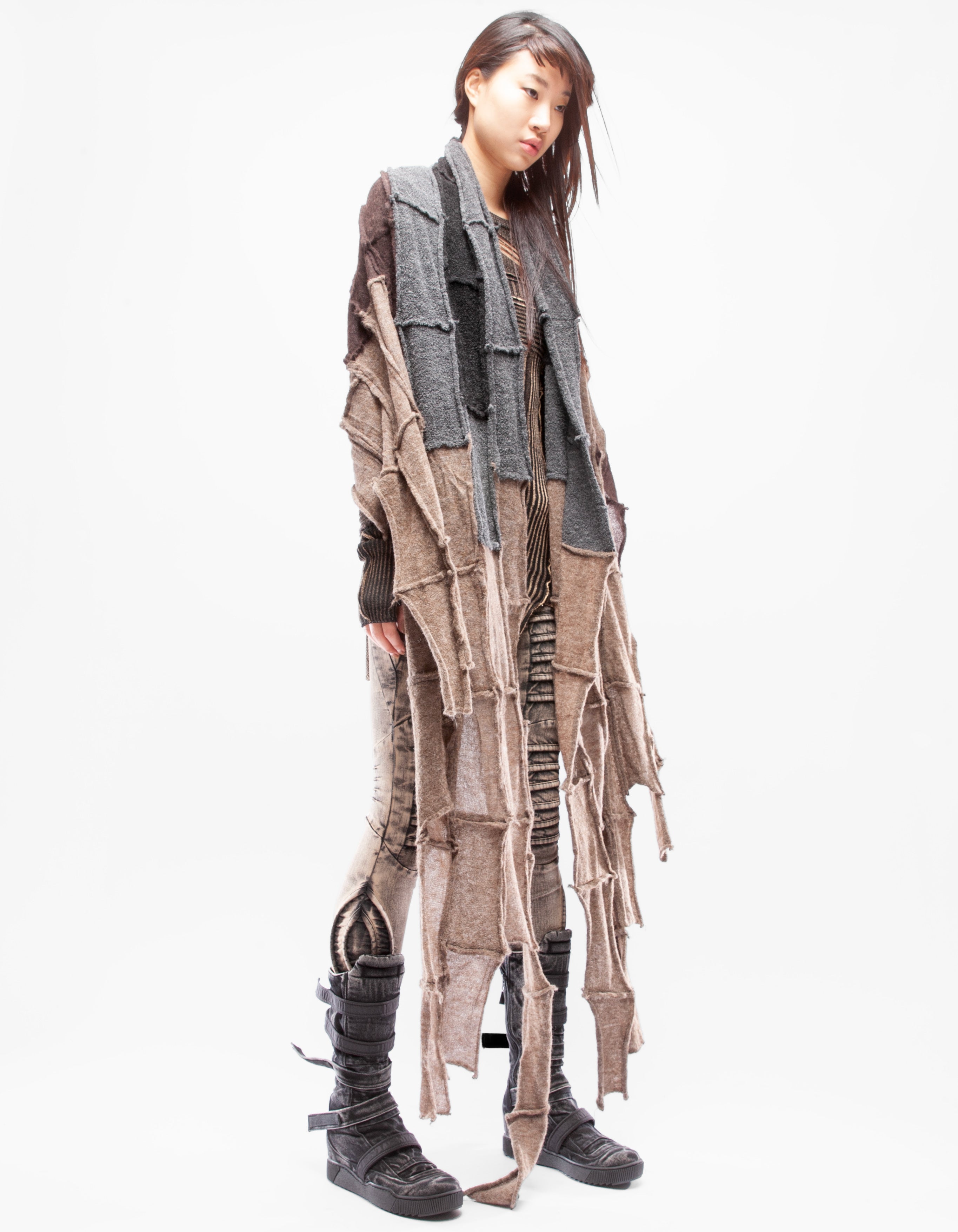 Detaillierter, asymmetrischer, schwerer, gestrickter langer Schal