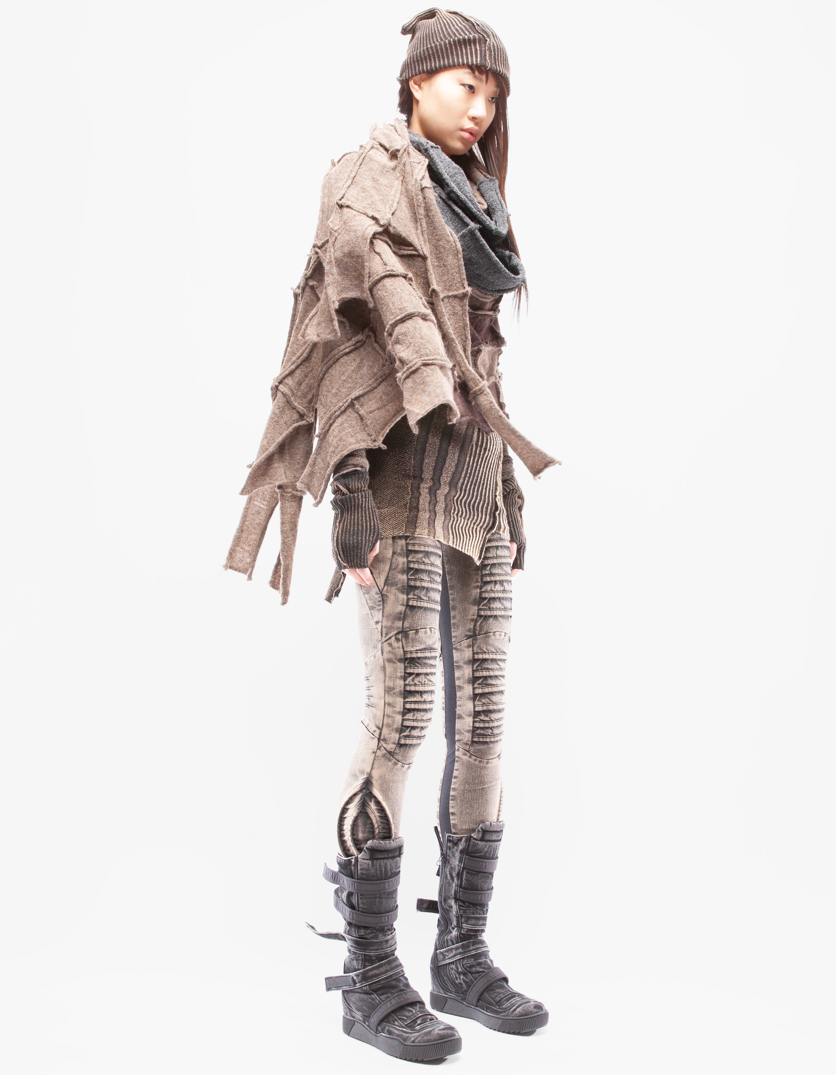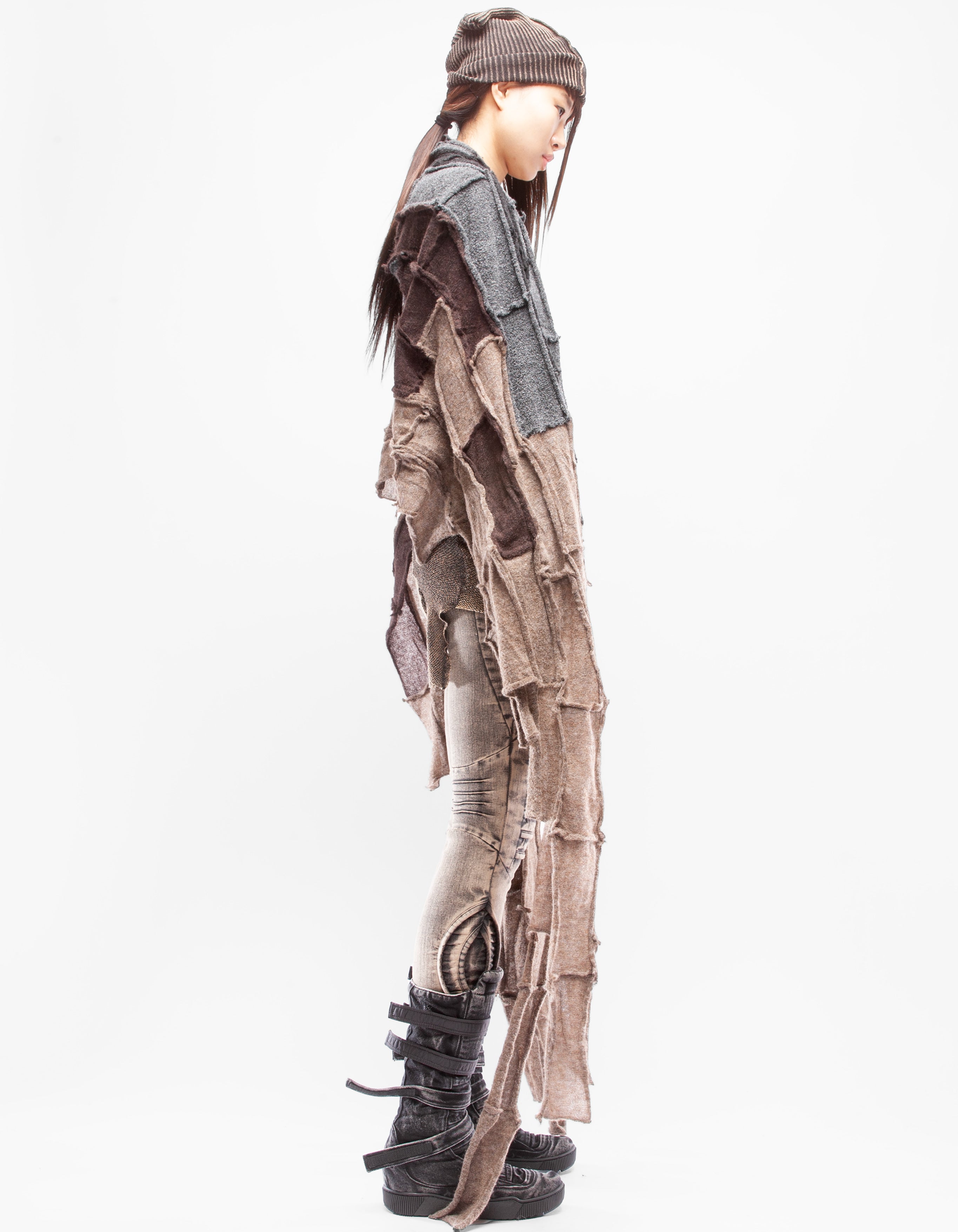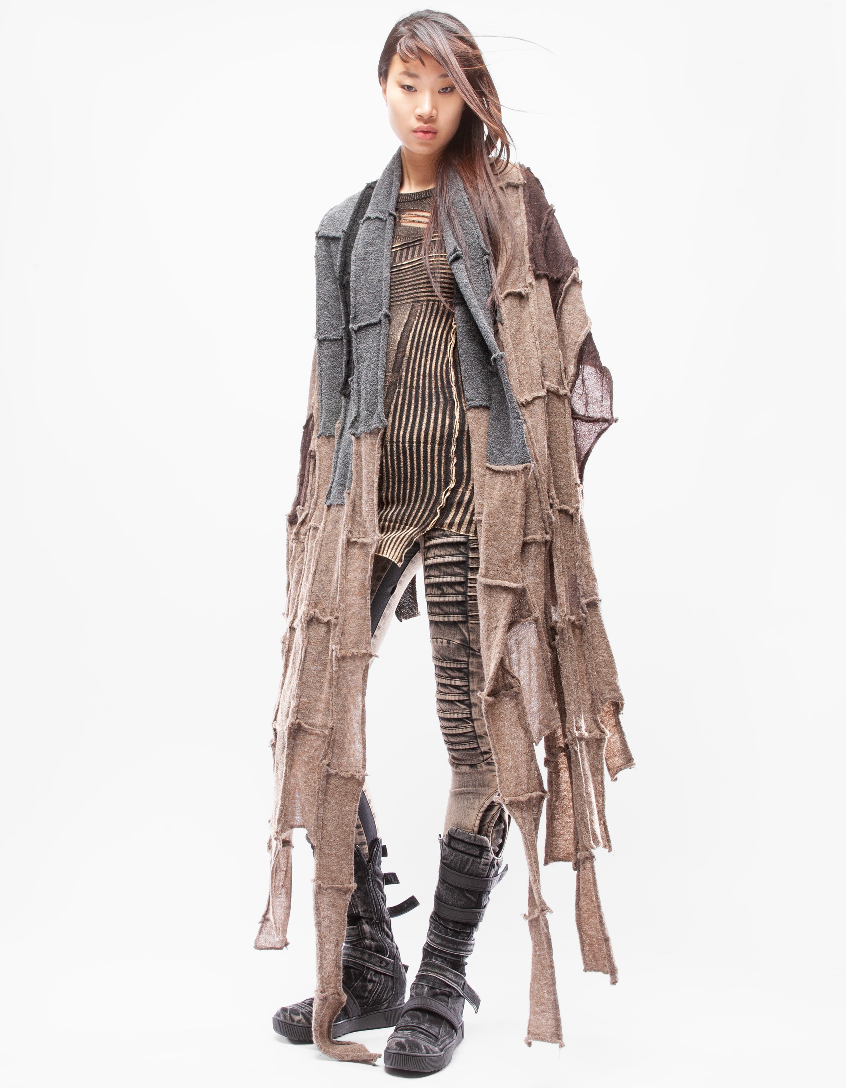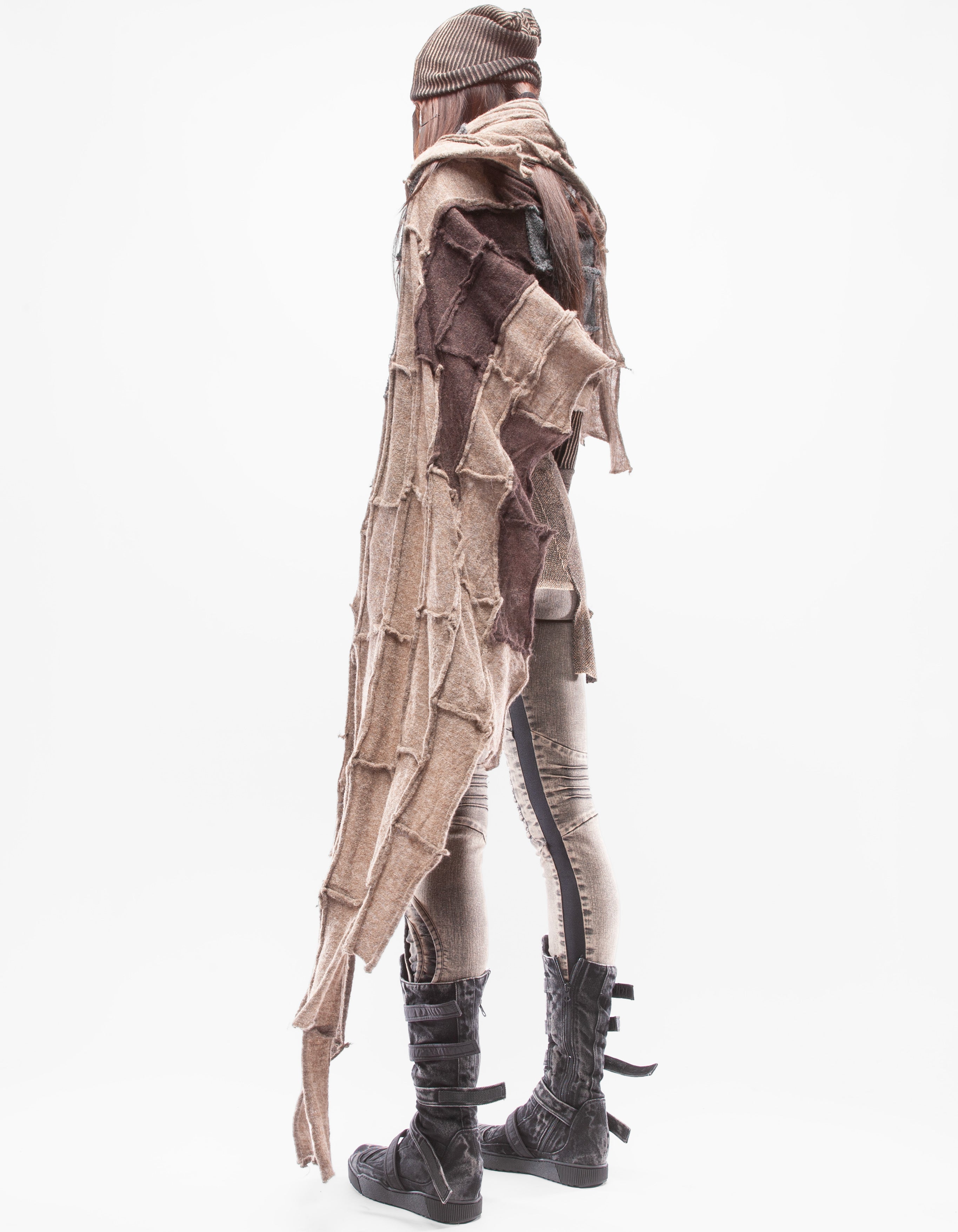 Detaillierter, asymmetrischer, schwerer, gestrickter langer Schal