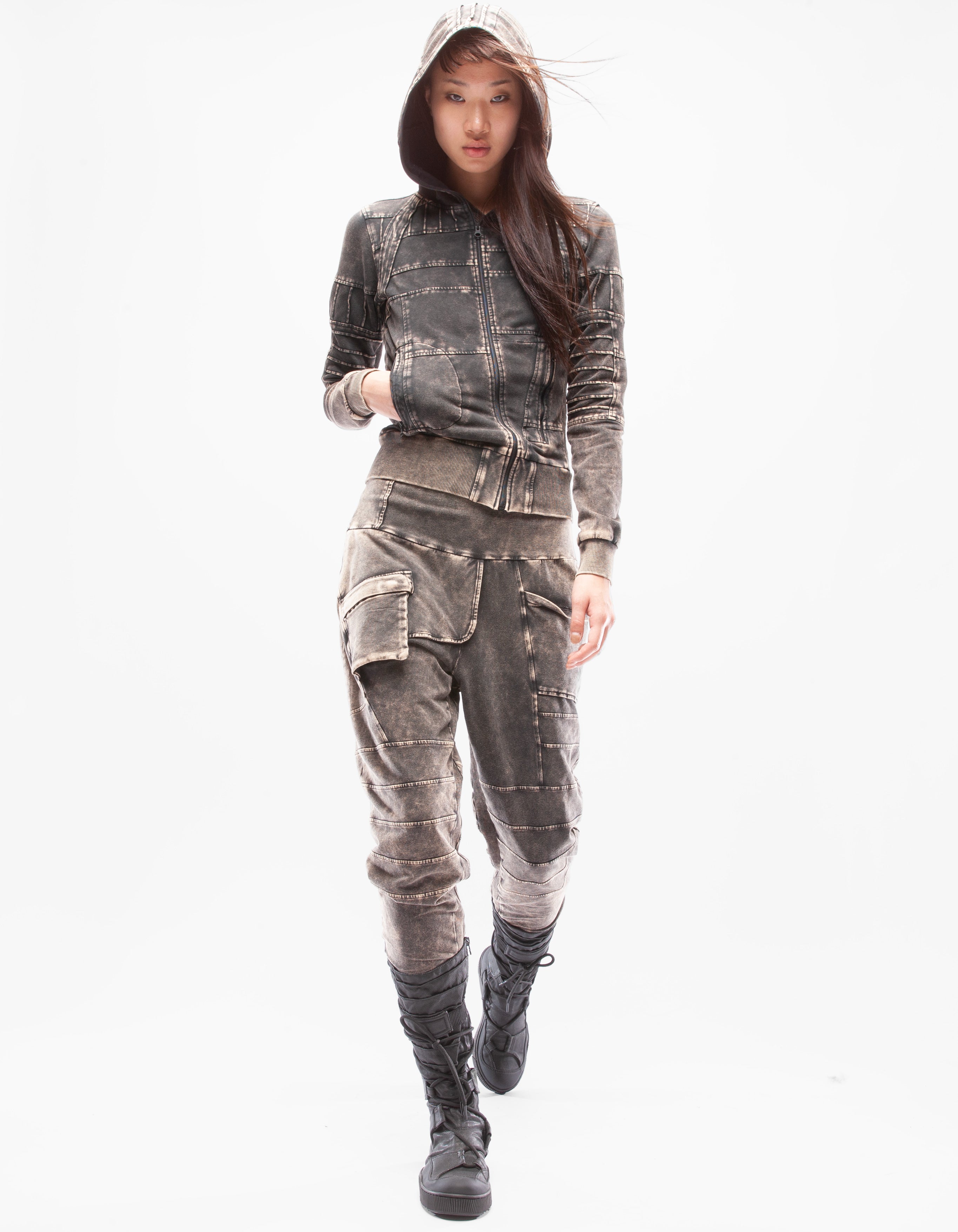 detaillierter asymmetrischer Kapuzenpullover aus elastischer Baumwolle mit Reißverschluss