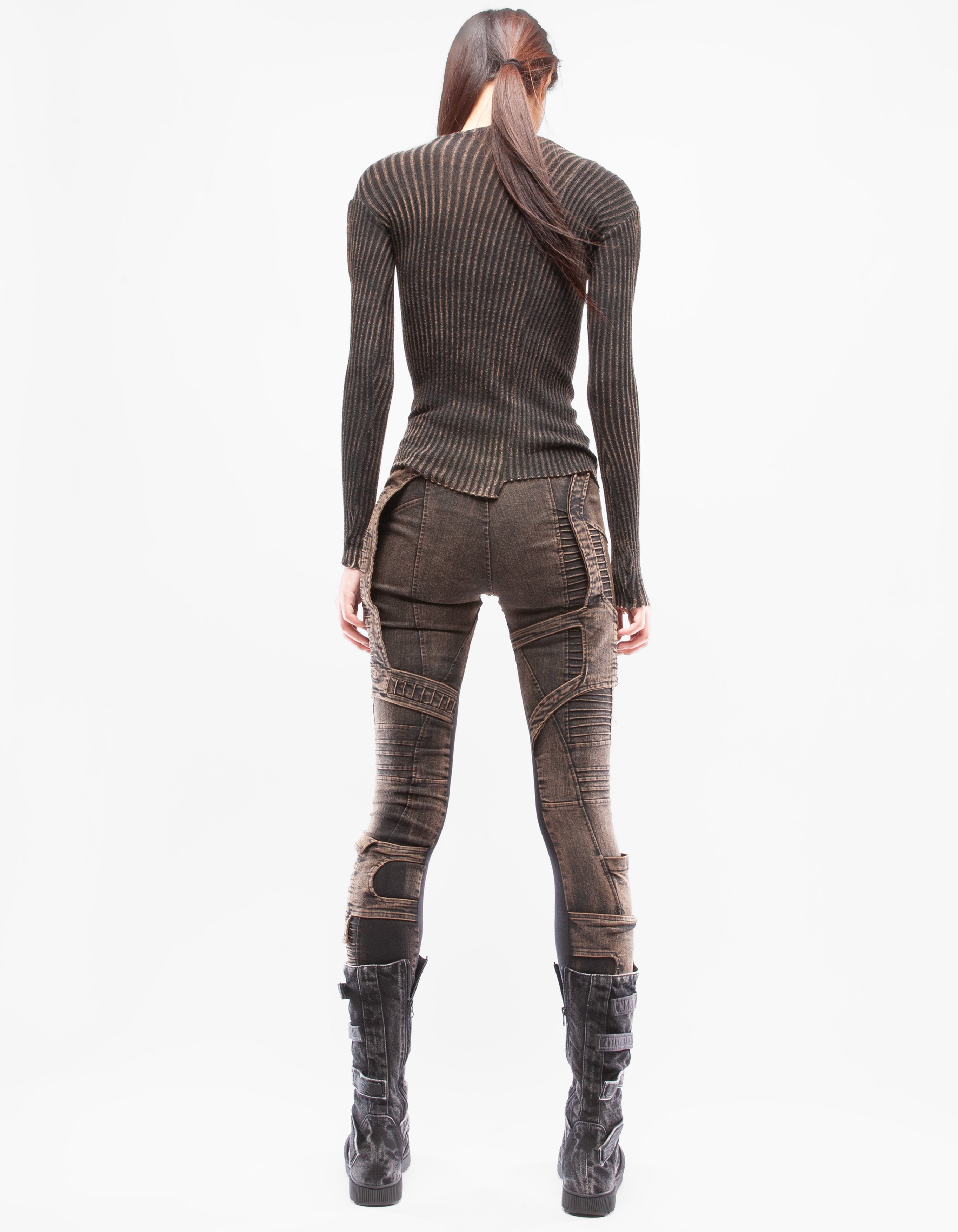 detailliertes, fein gestricktes, asymmetrisches, elastisches Oberteil
