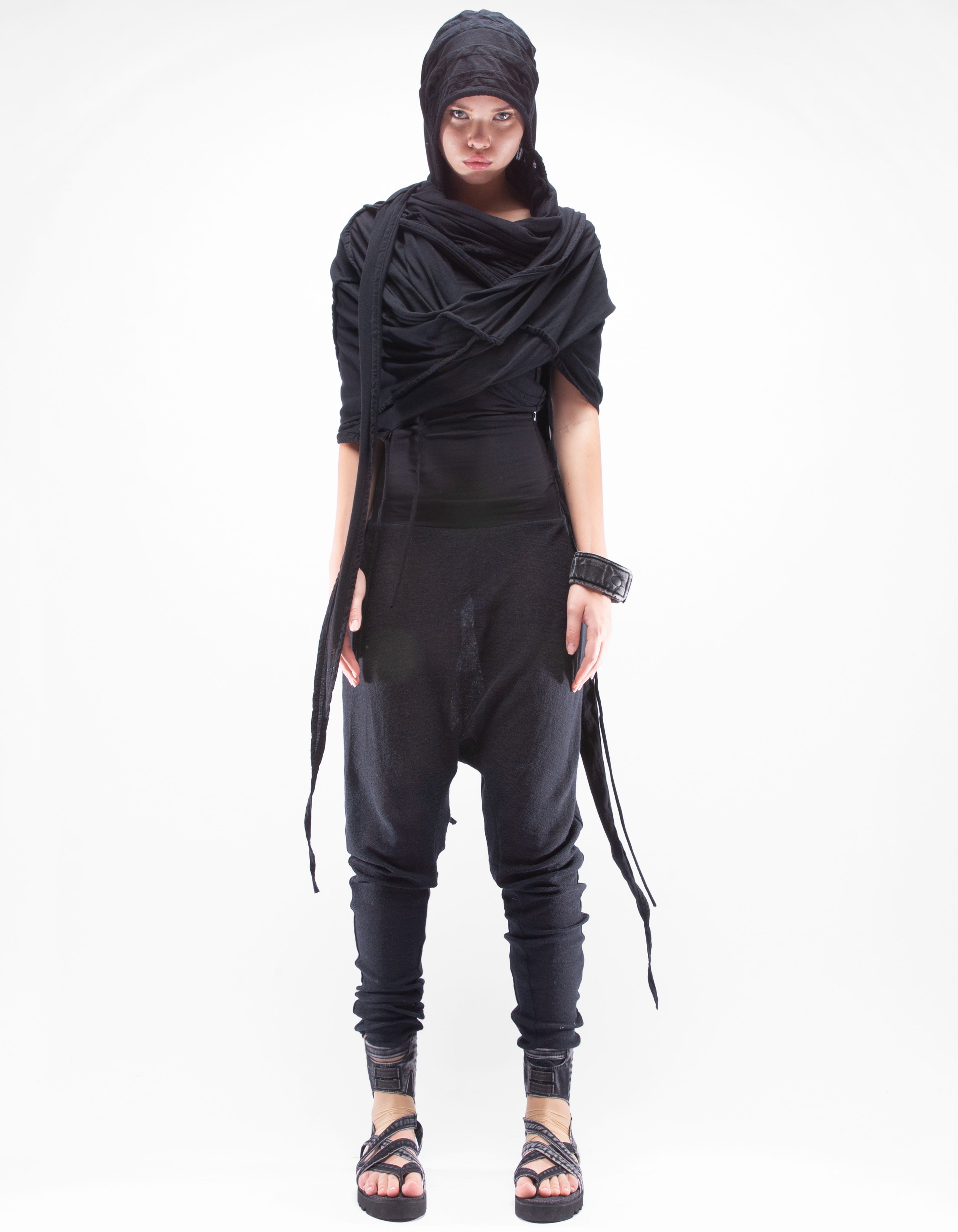 Fein gestrickter Baggy-Overall aus Leinen mit Cut-Outs, halbtransparent