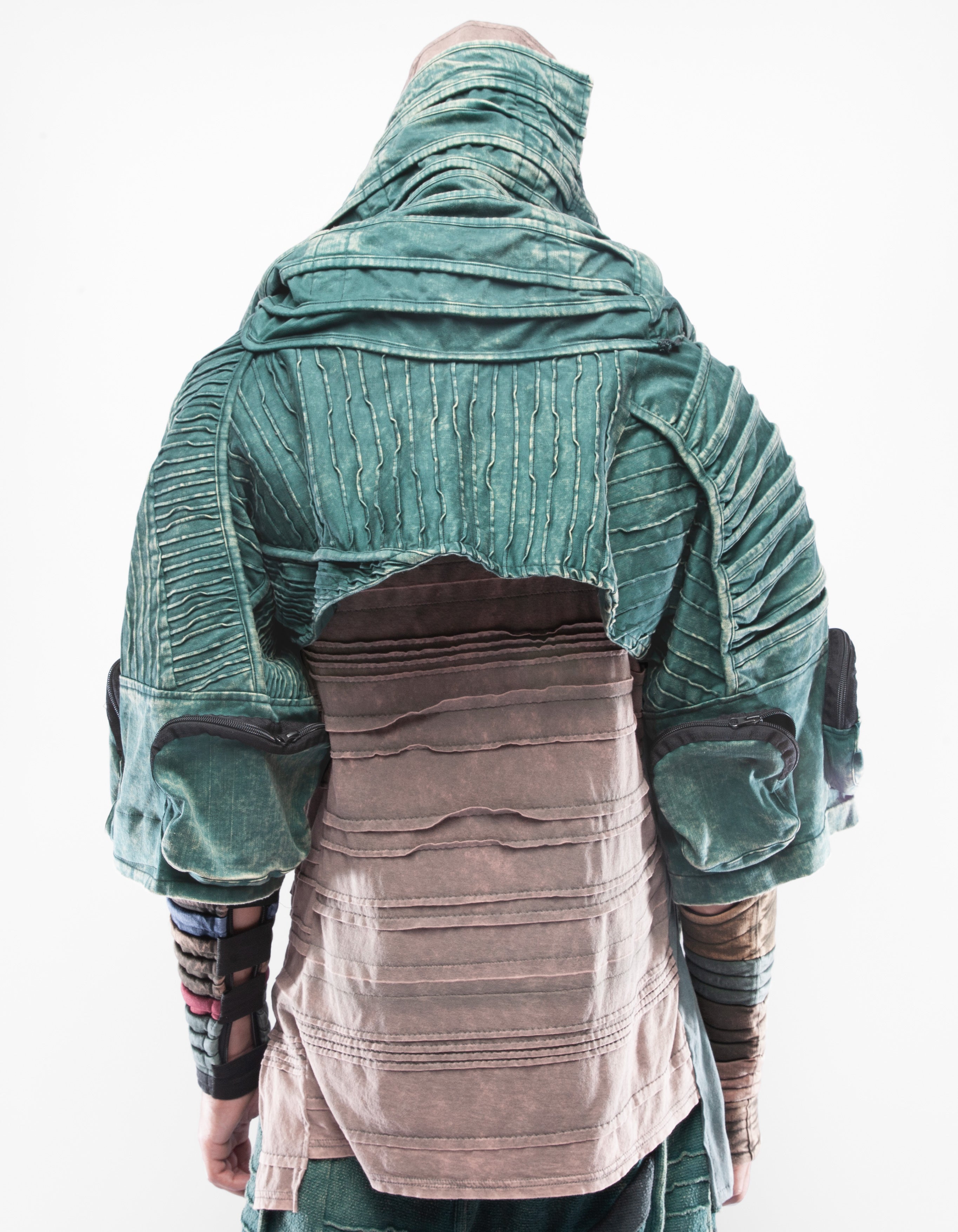 extrem detaillierte elastische Denim-Halsjacke mit hohem Kragen