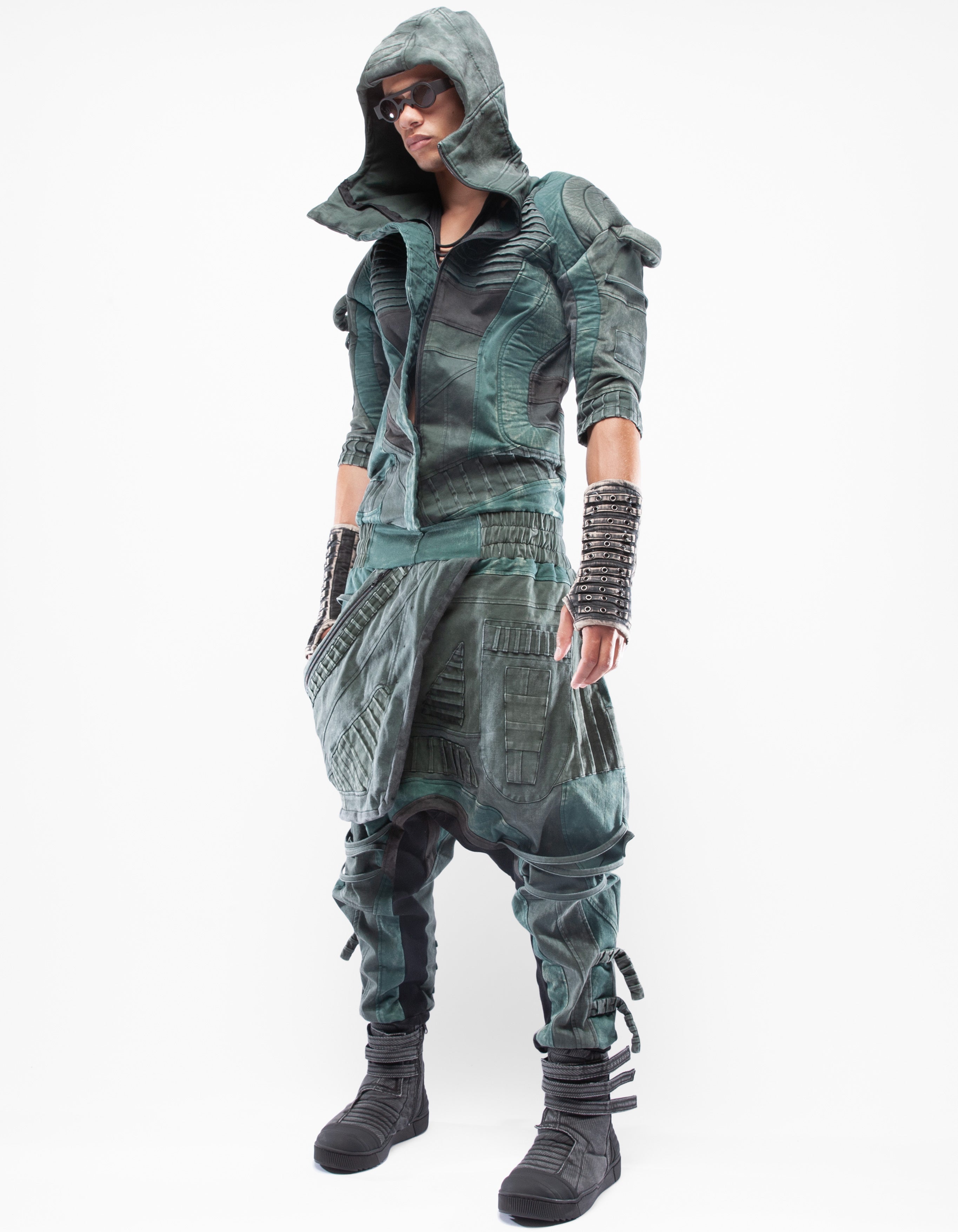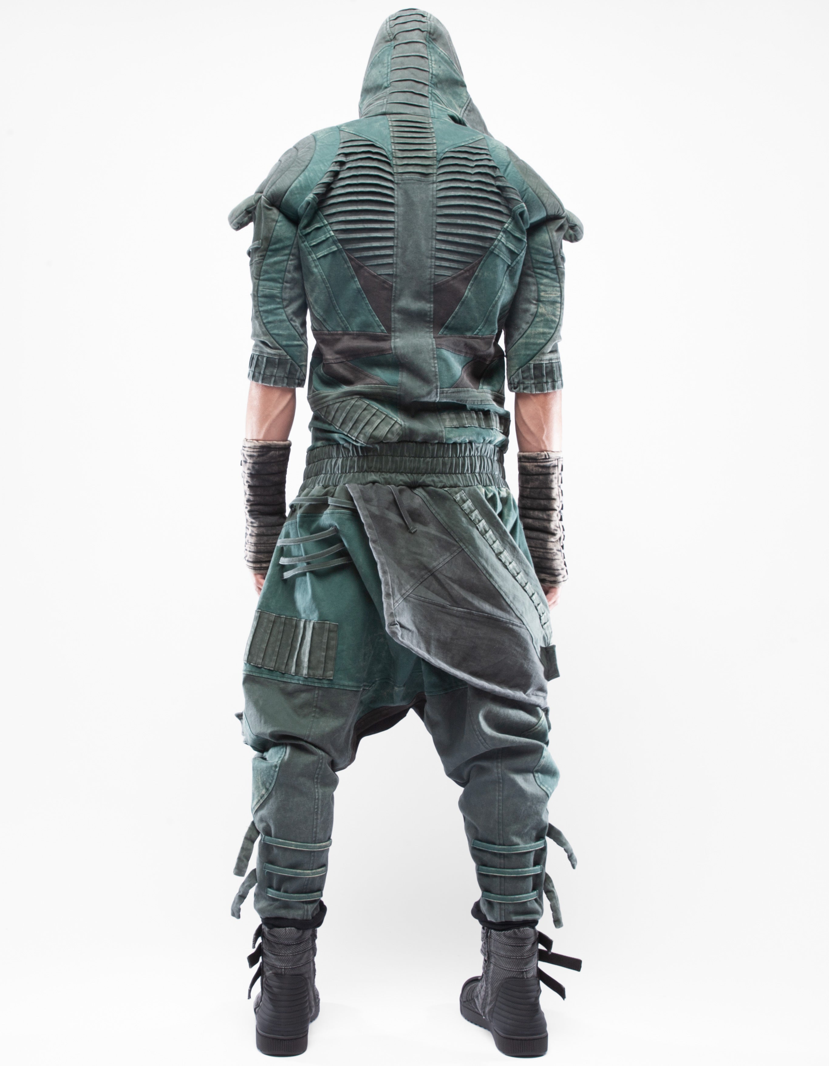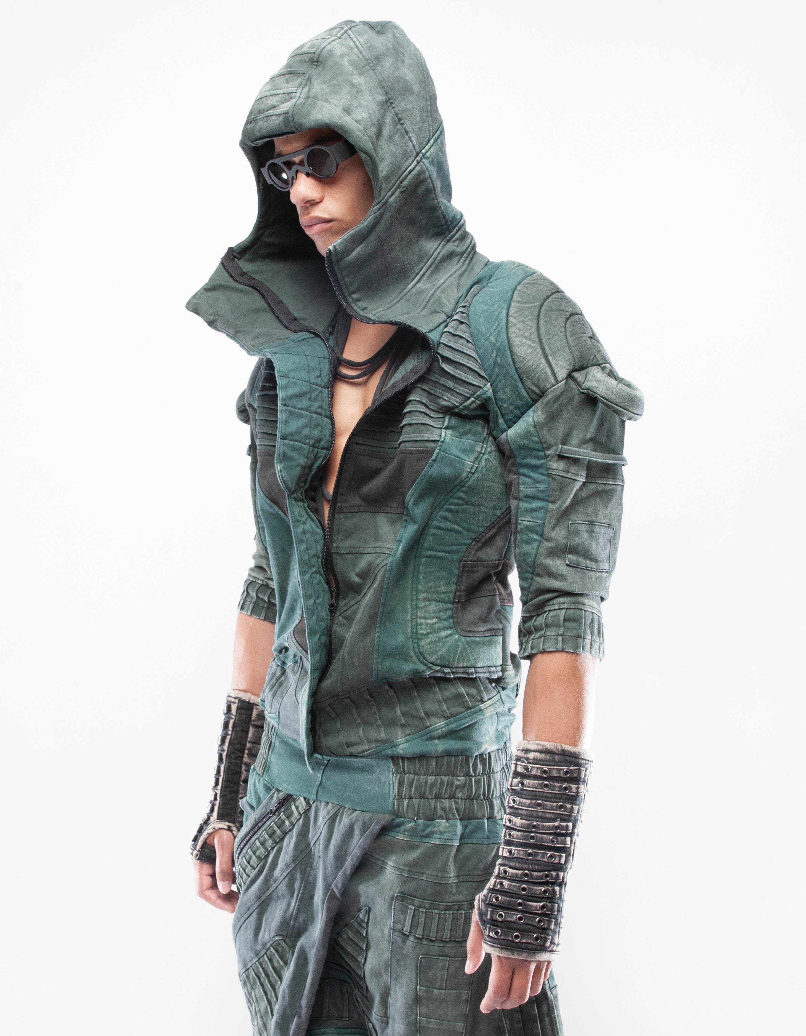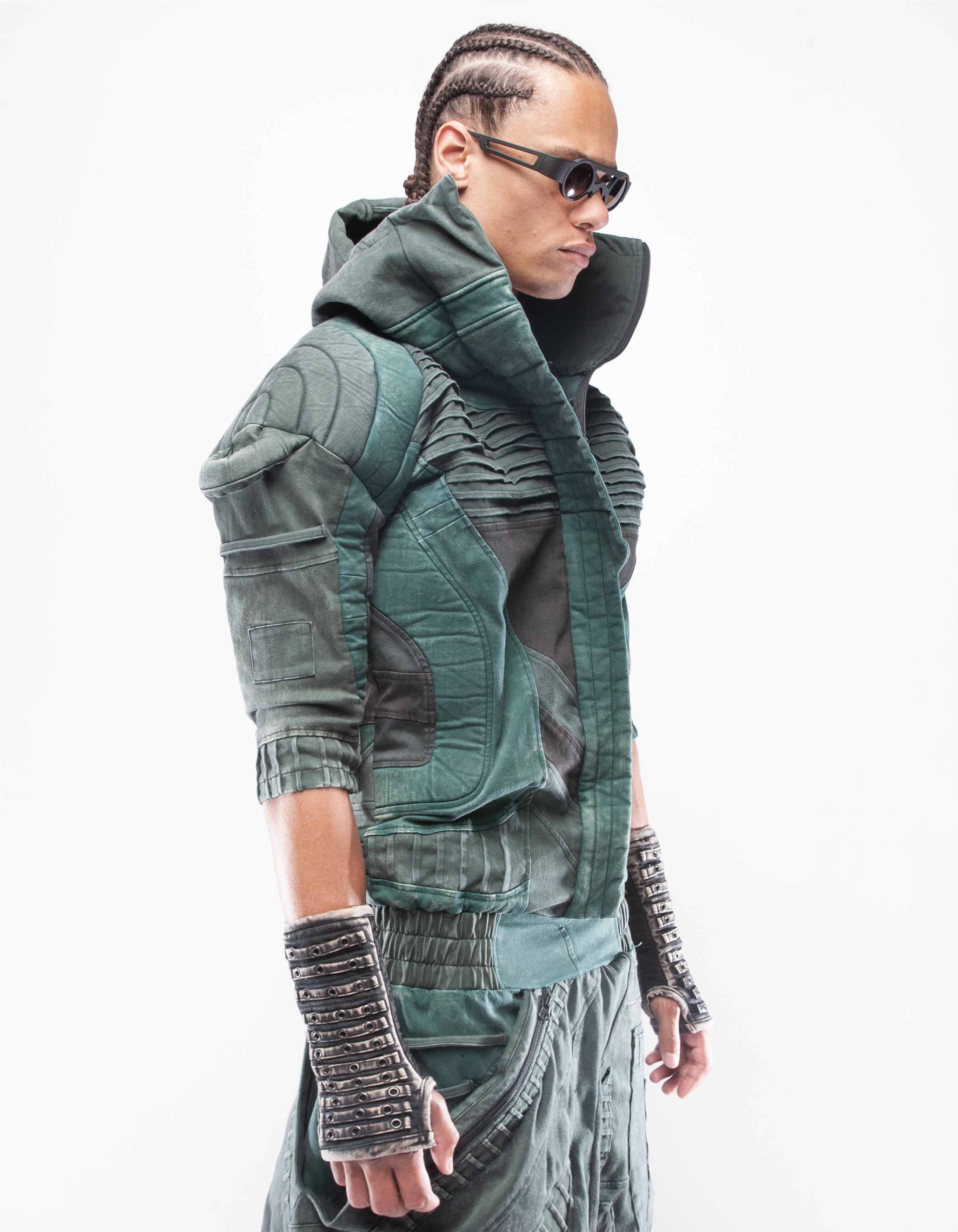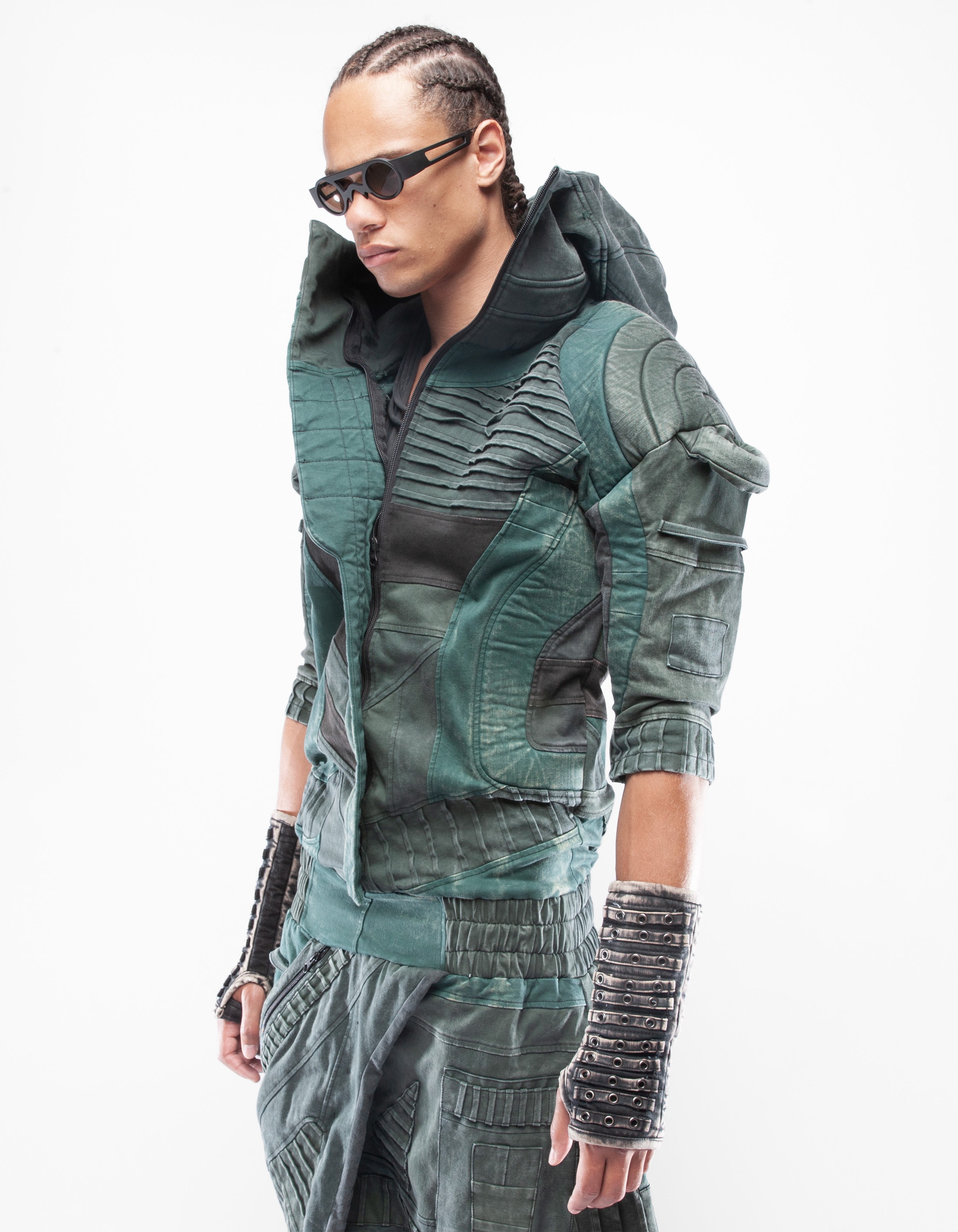 overol con capucha de mezclilla elástica multicolor extremadamente detallado