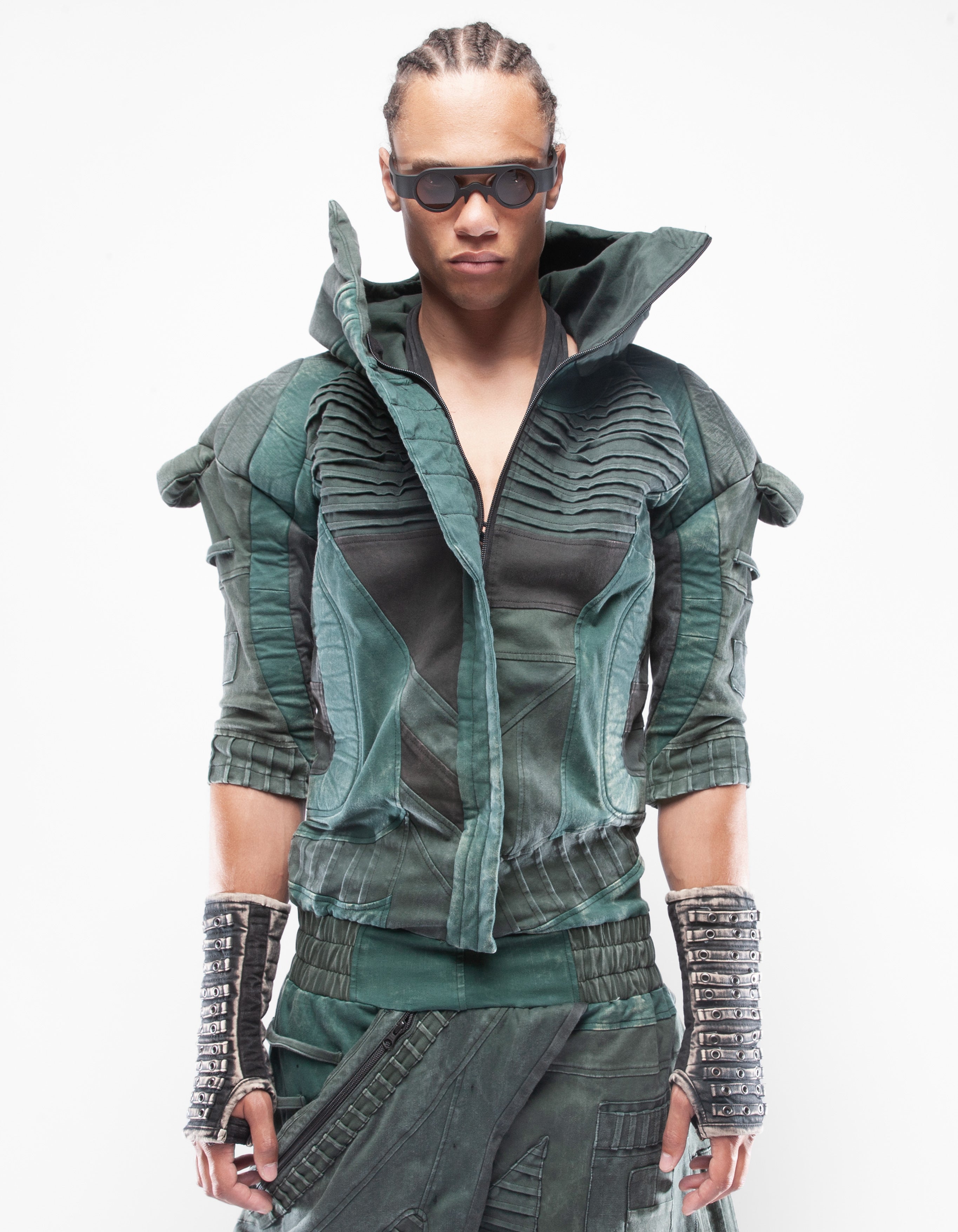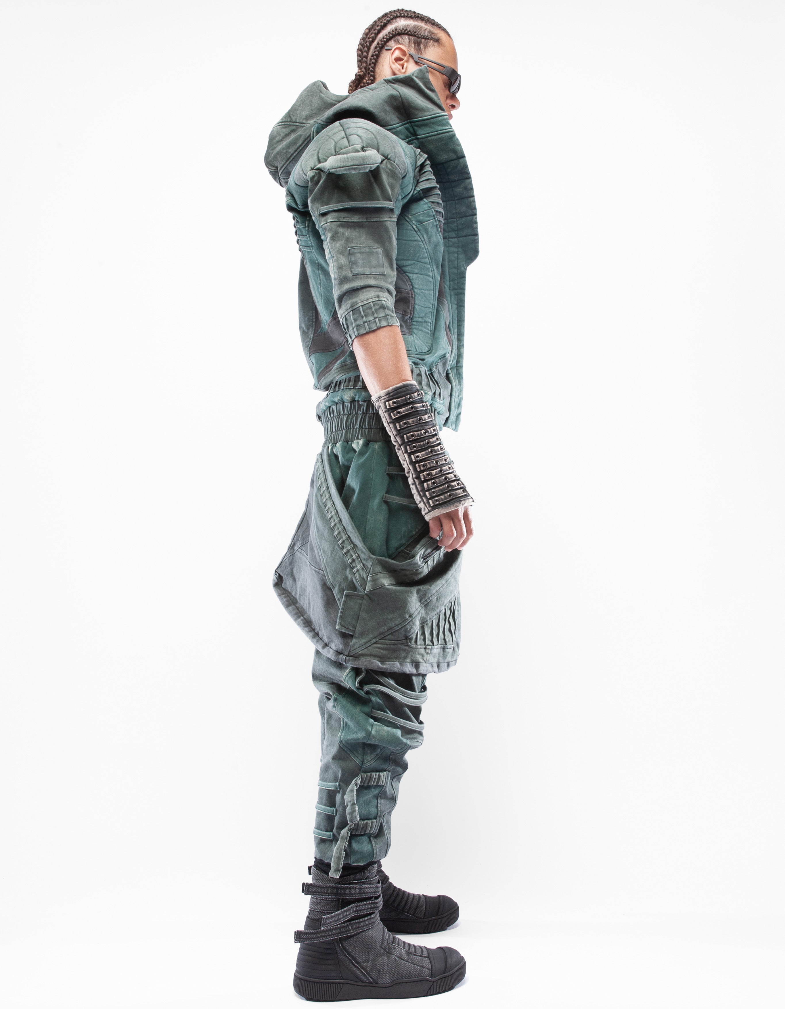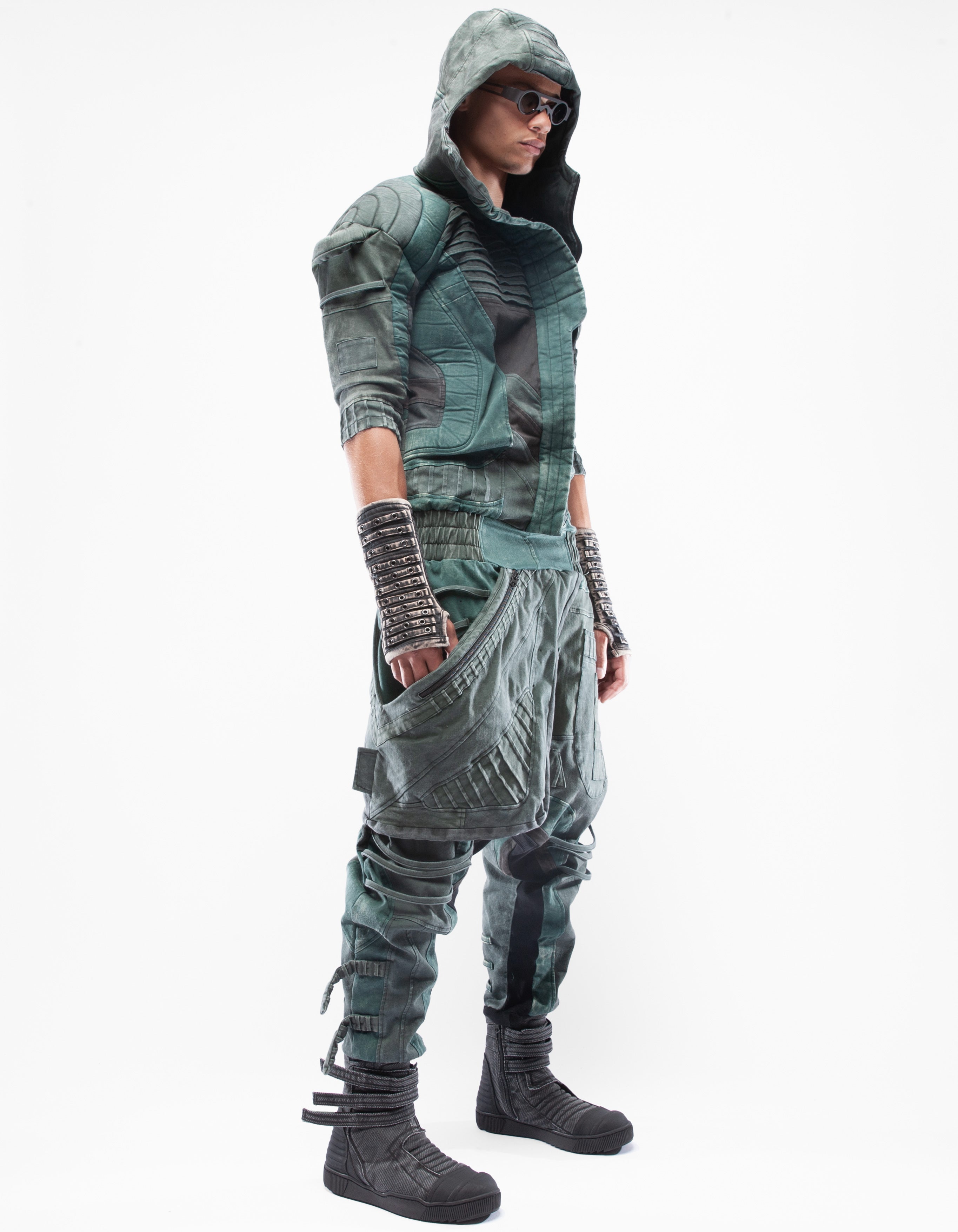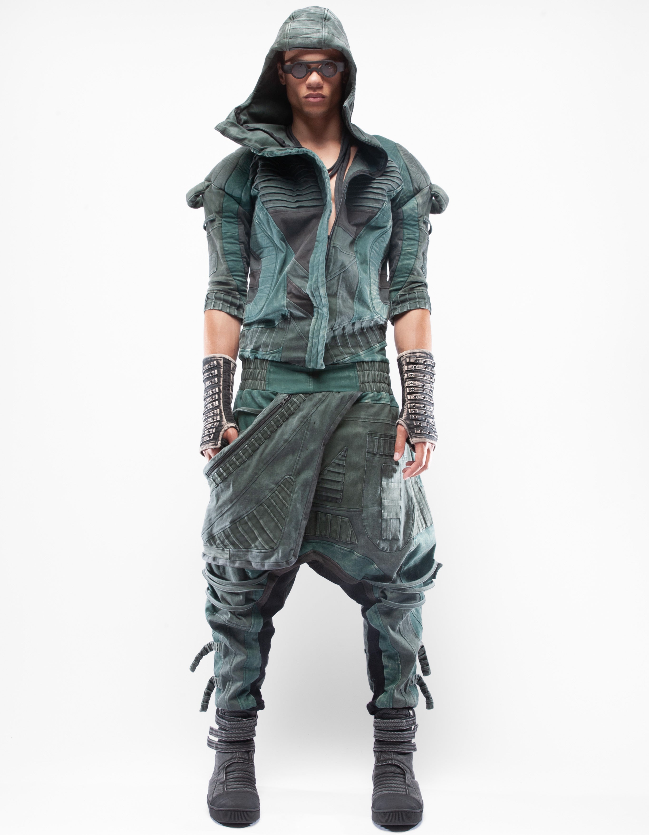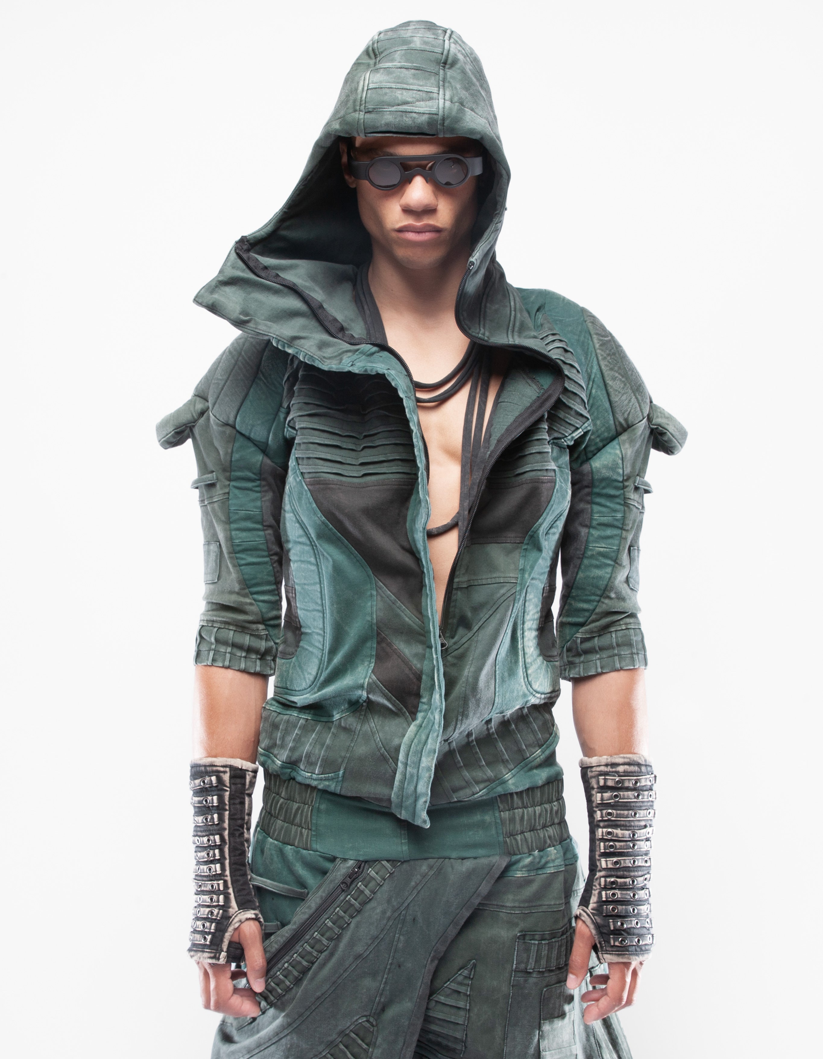 overol con capucha de mezclilla elástica multicolor extremadamente detallado