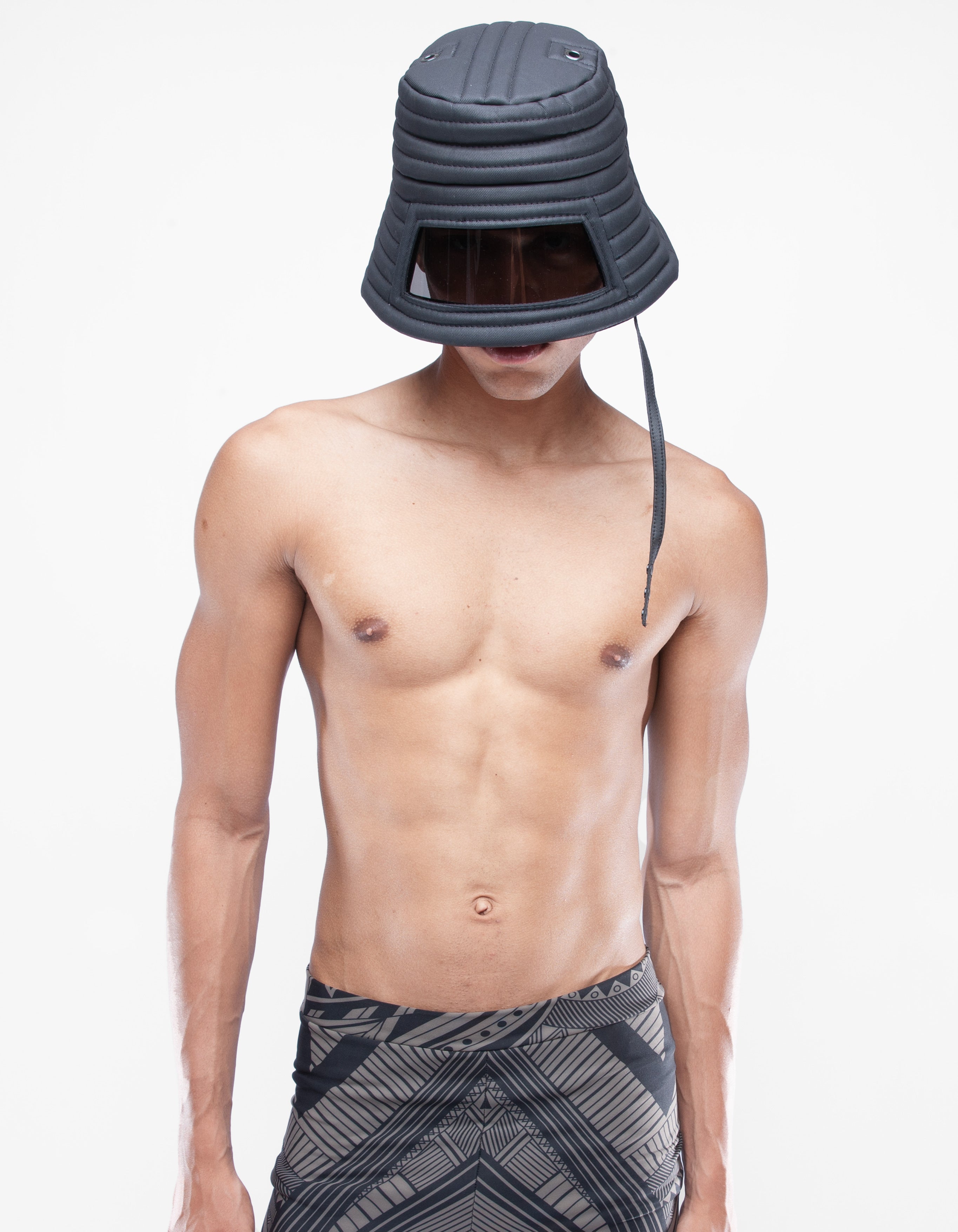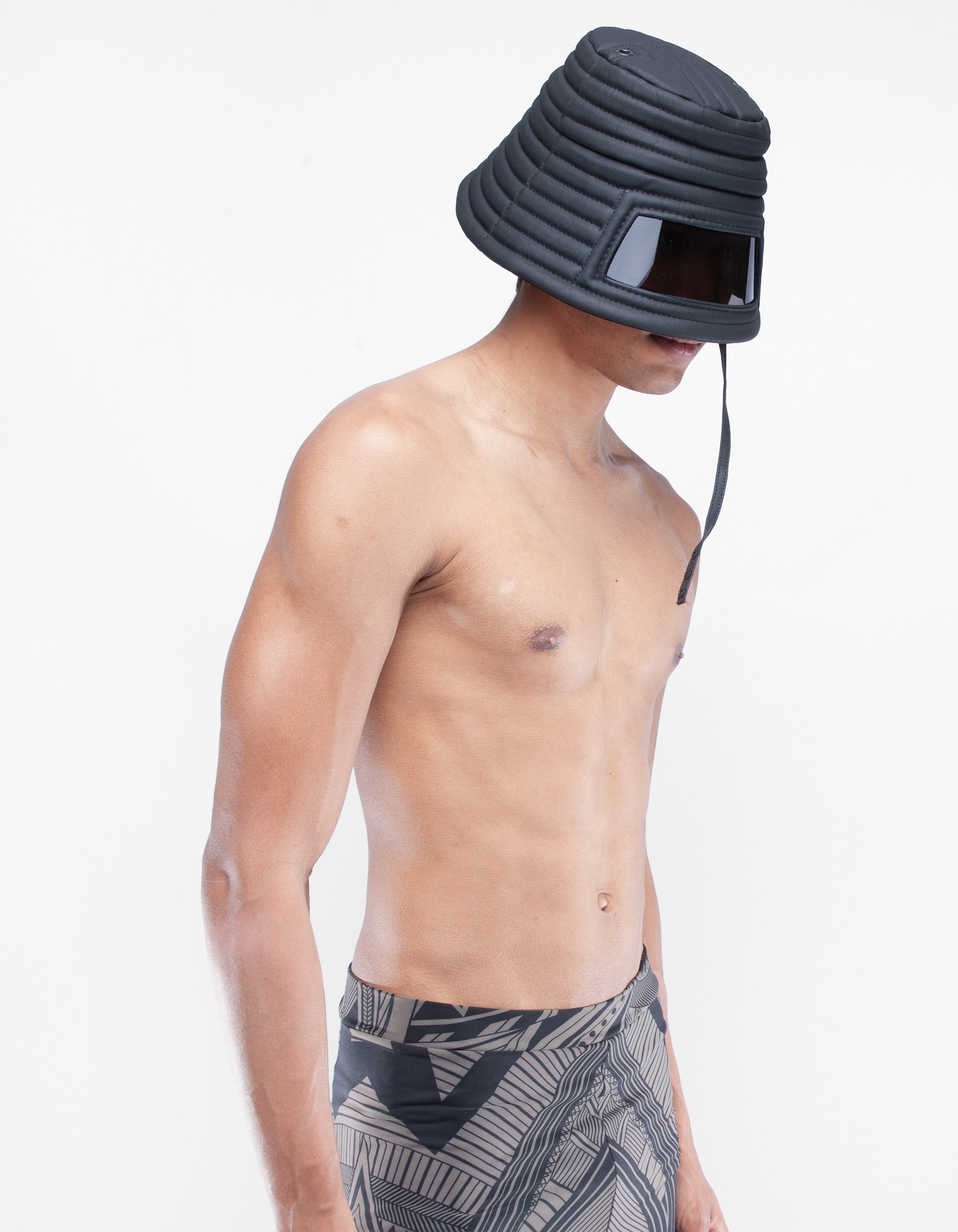 sombrero de cubo de neopreno de mezclilla encerada detallada con visera protectora solar Carl Zeiss