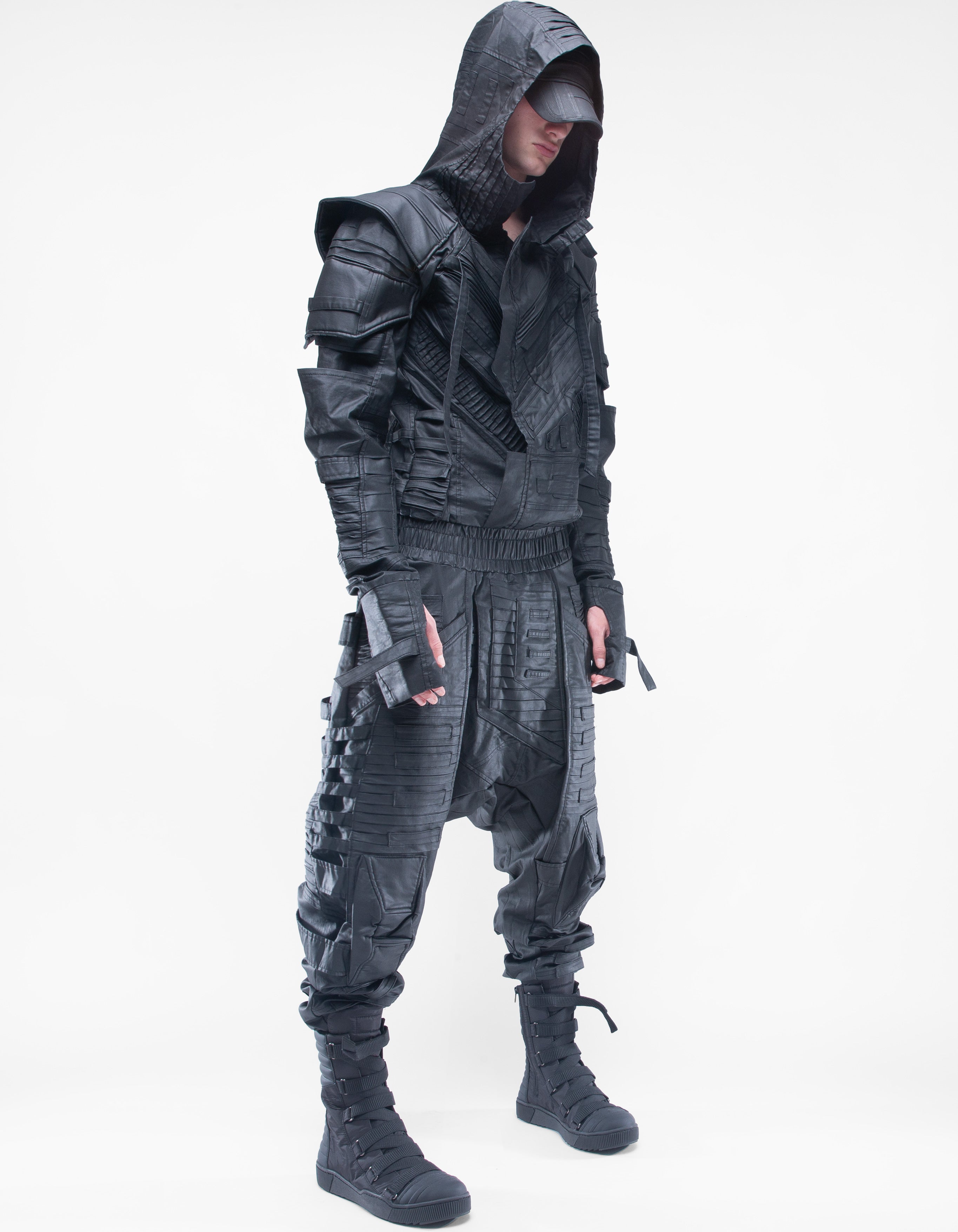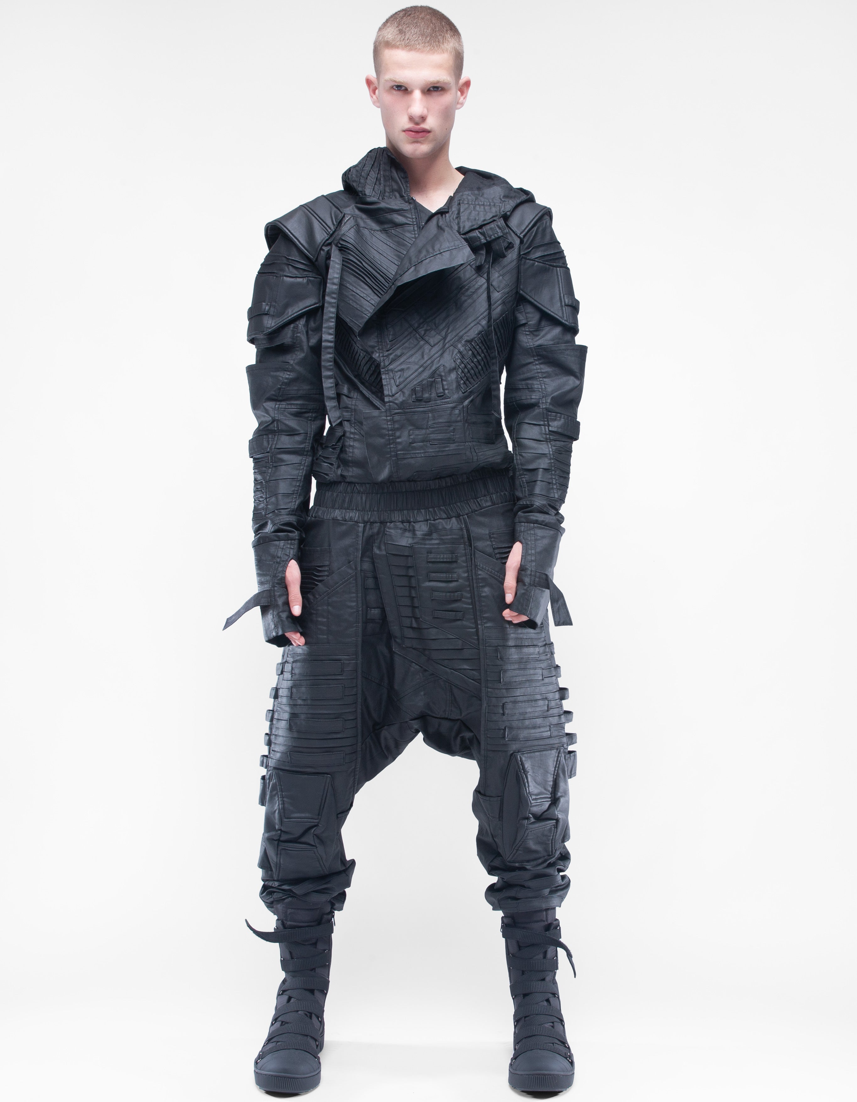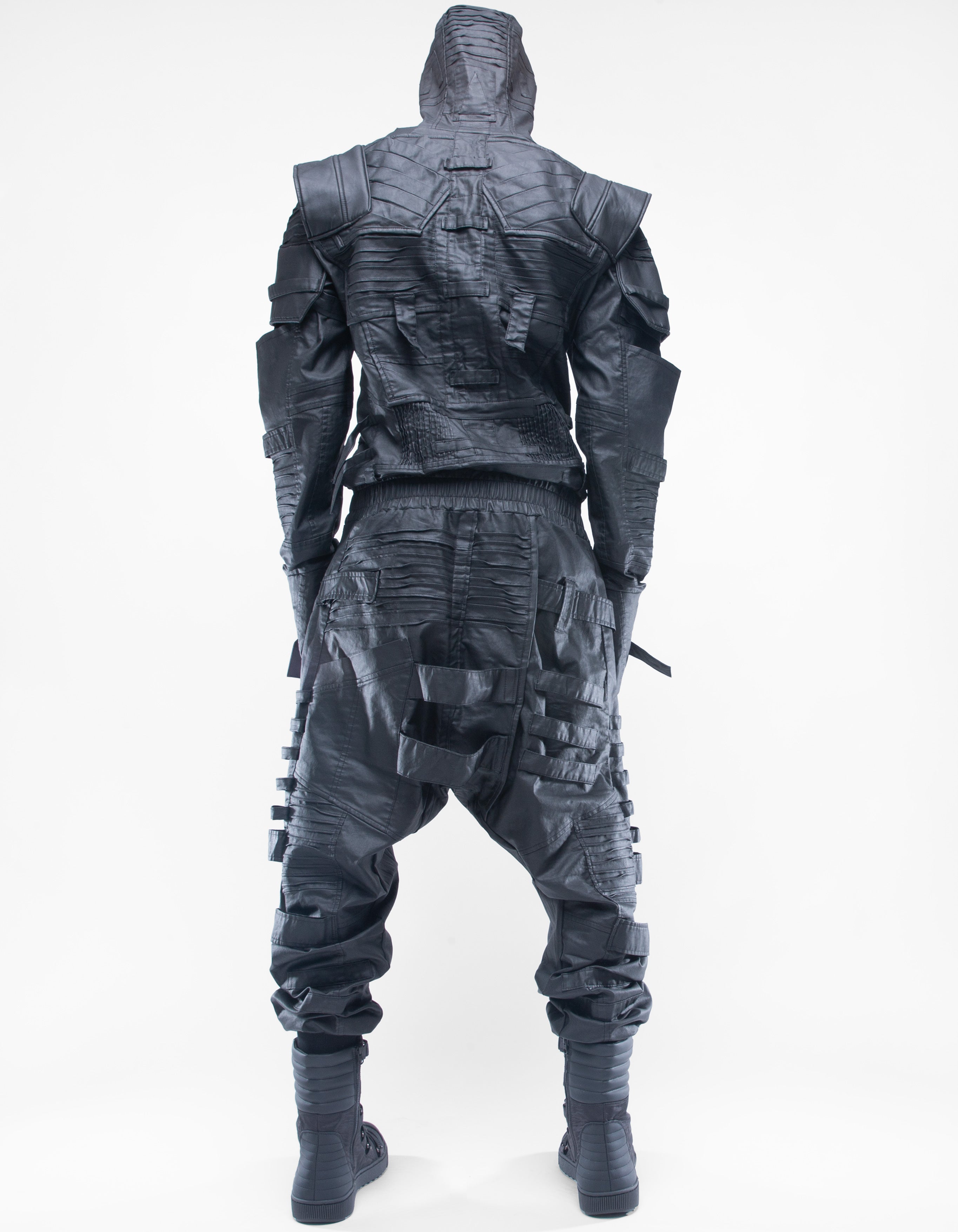 overol con capucha de denim encerado elástico suave extremadamente detallado