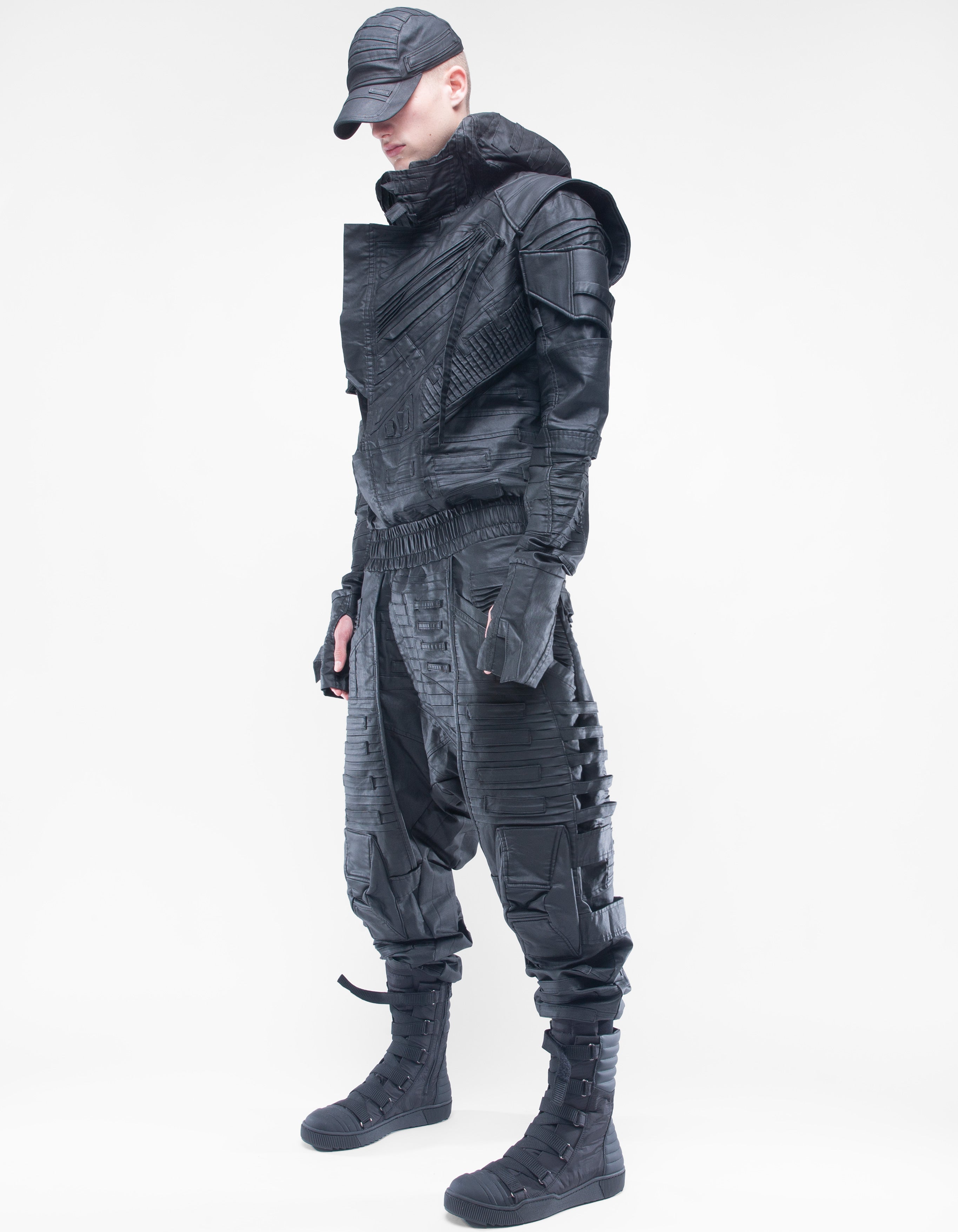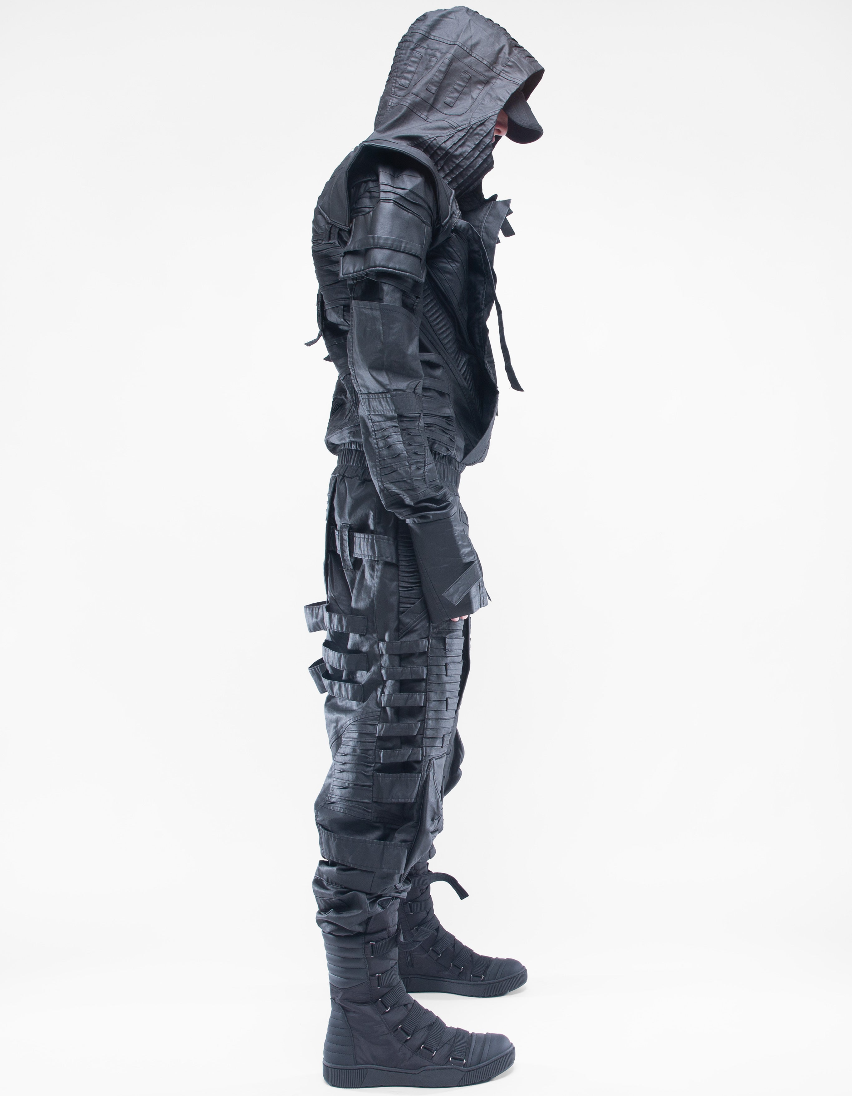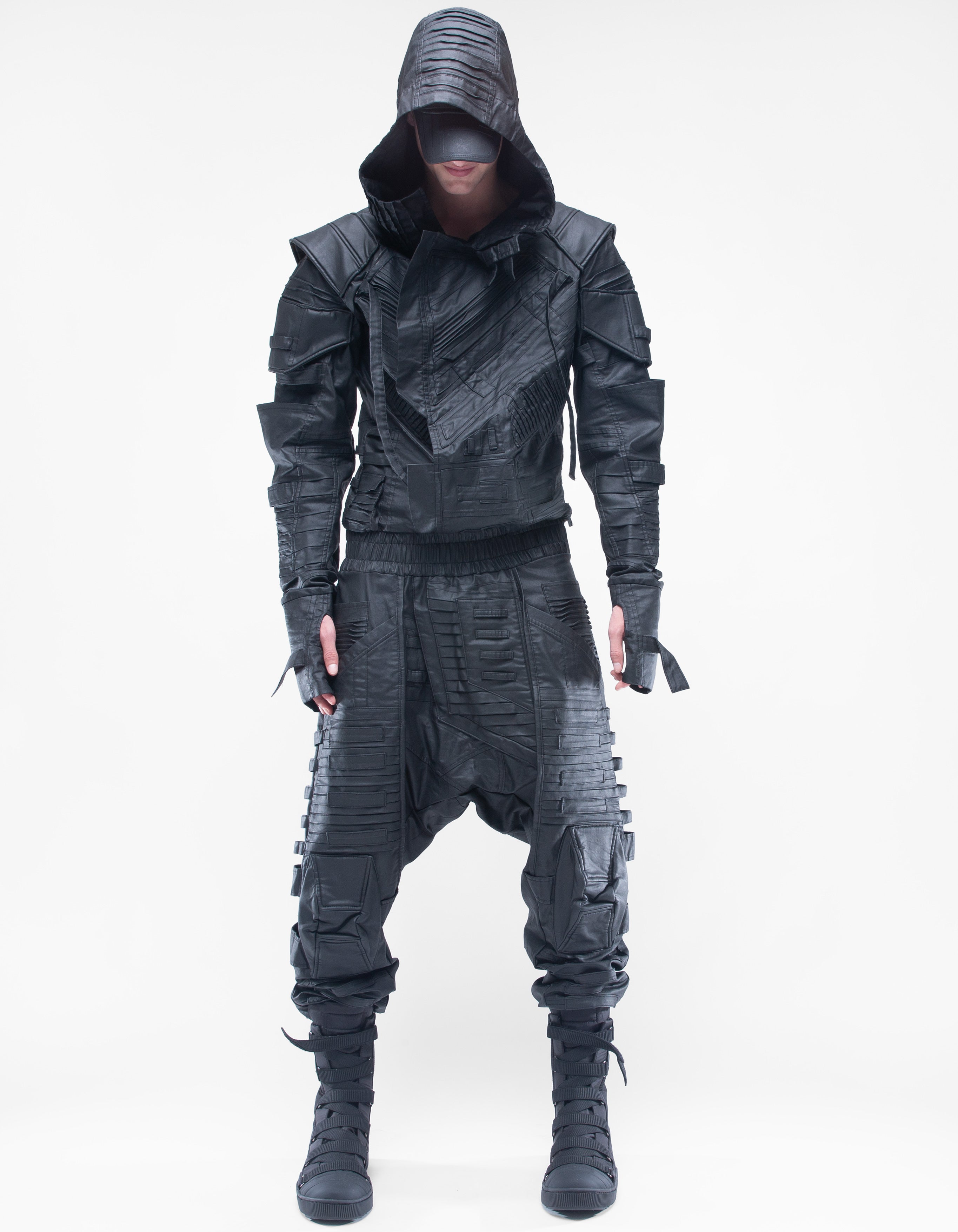 overol con capucha de denim encerado elástico suave extremadamente detallado