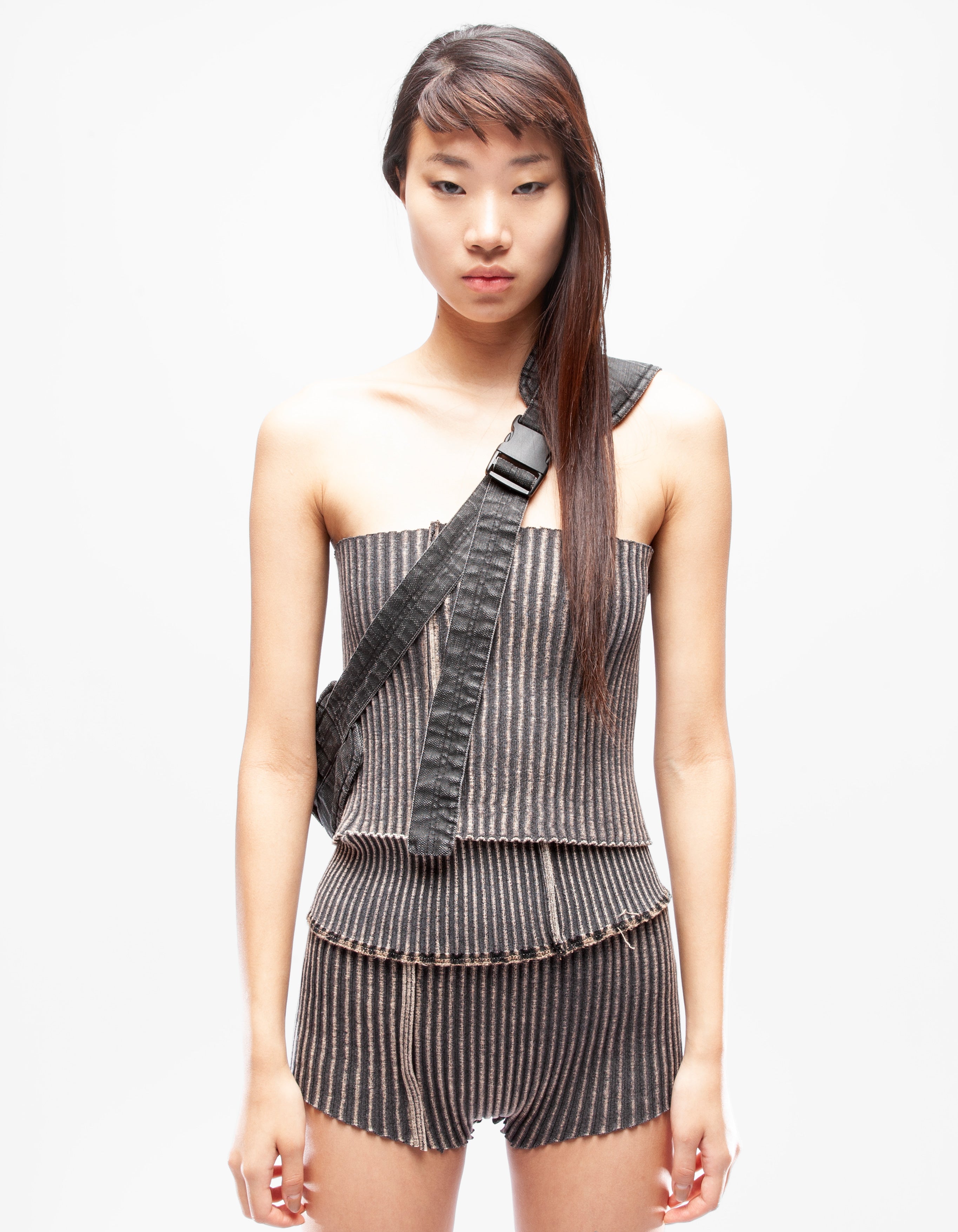sac à bandoulière Bullet en denim néoprène multi-poches détaillé