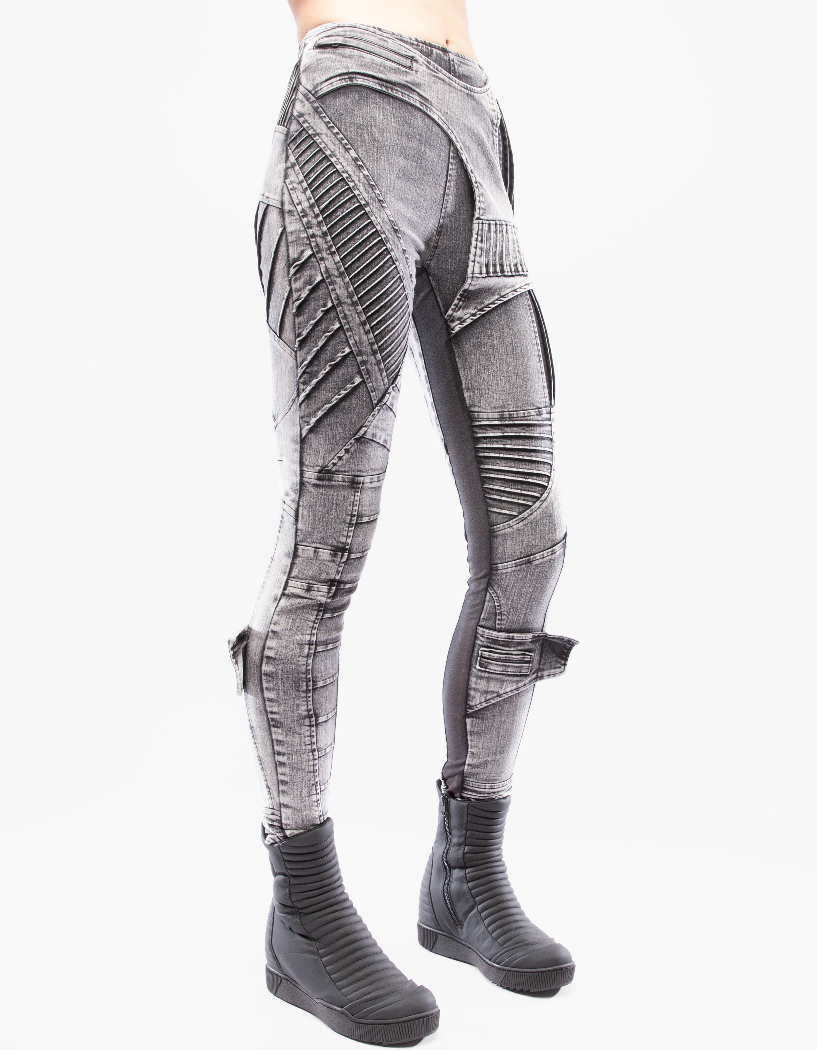 leggings en jean élastique à coupe détaillée