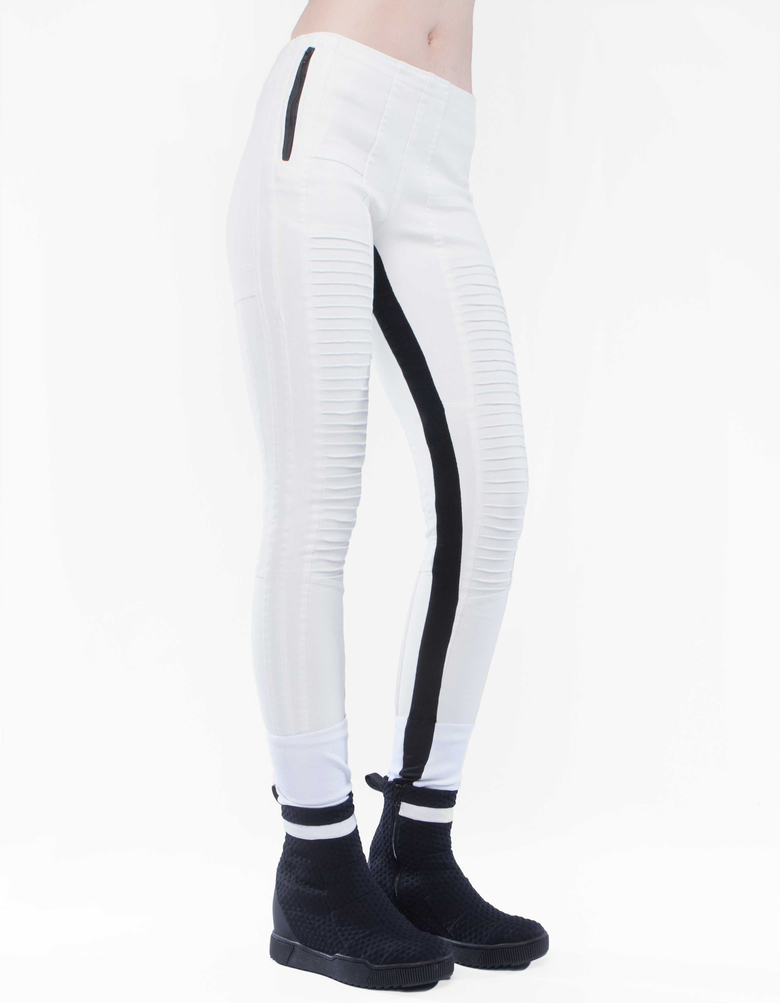pantalon ajusté taille haute futuriste détaillé