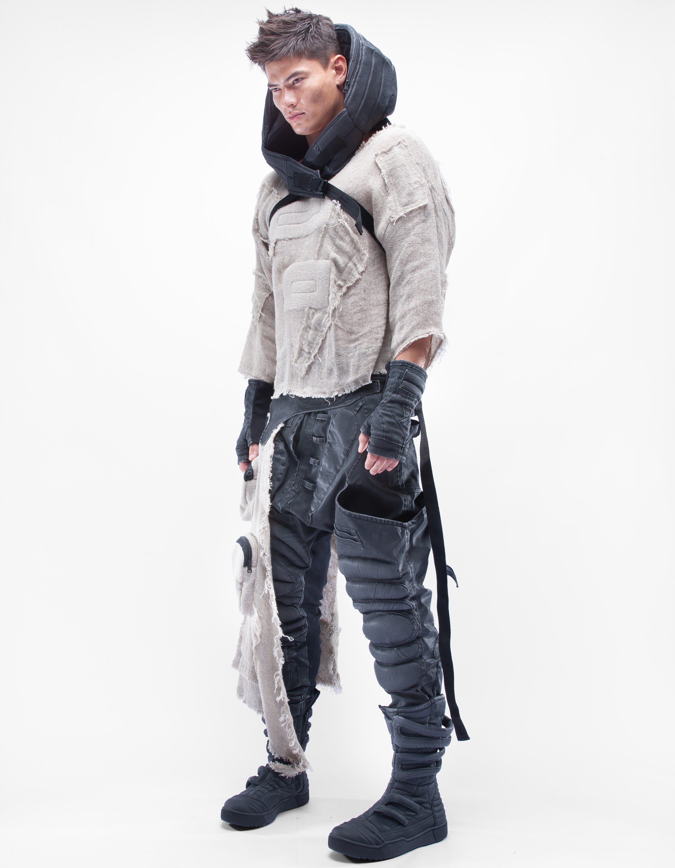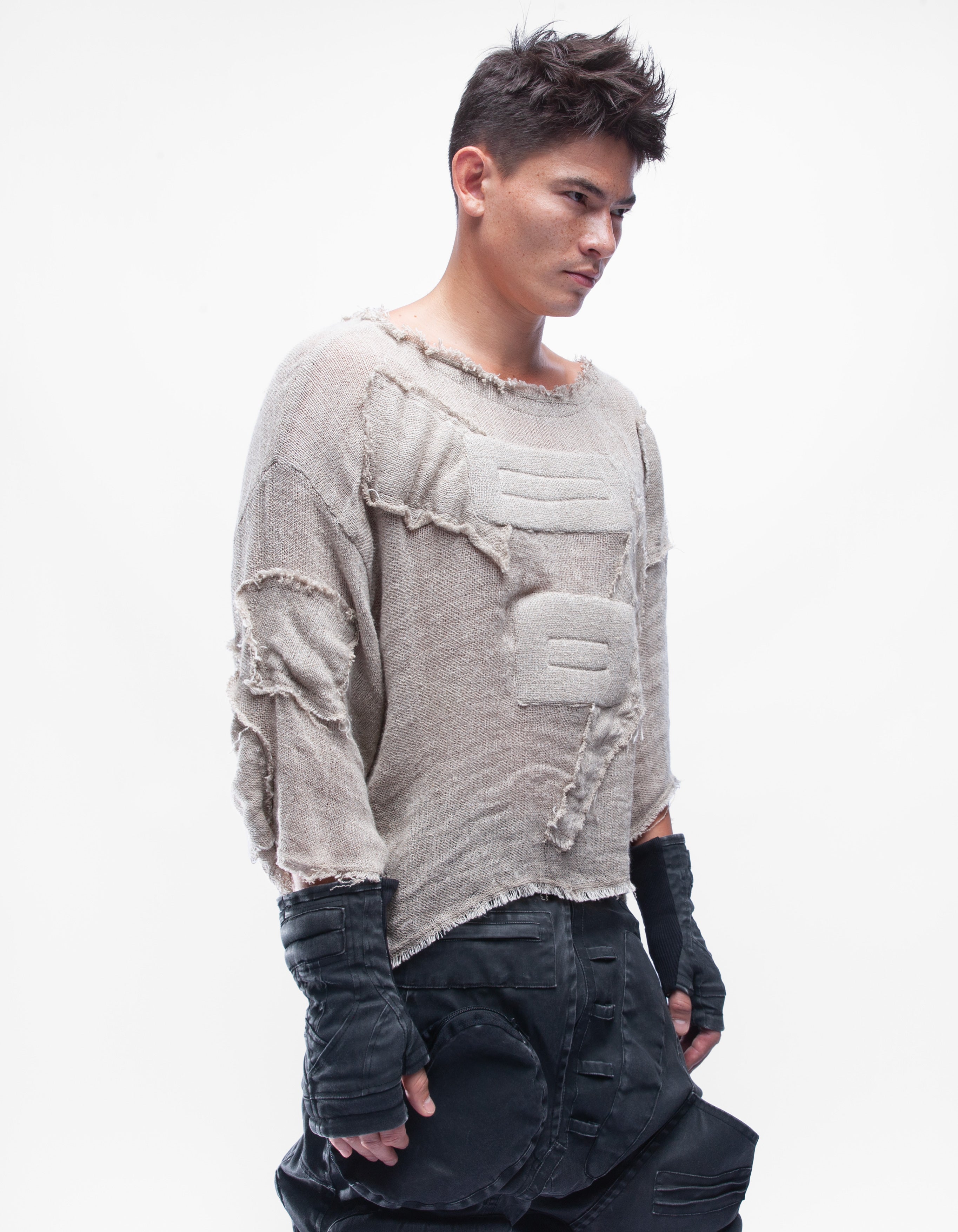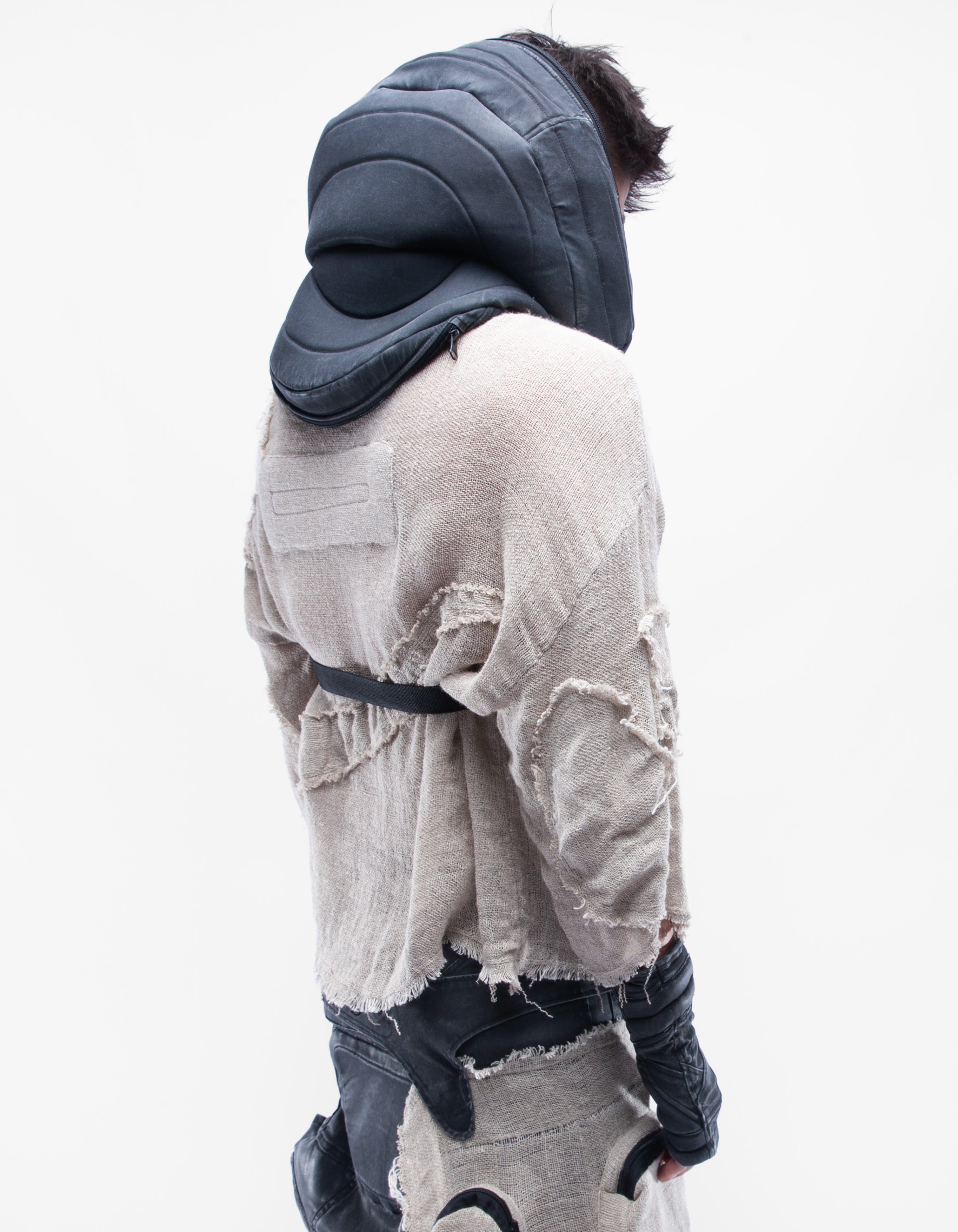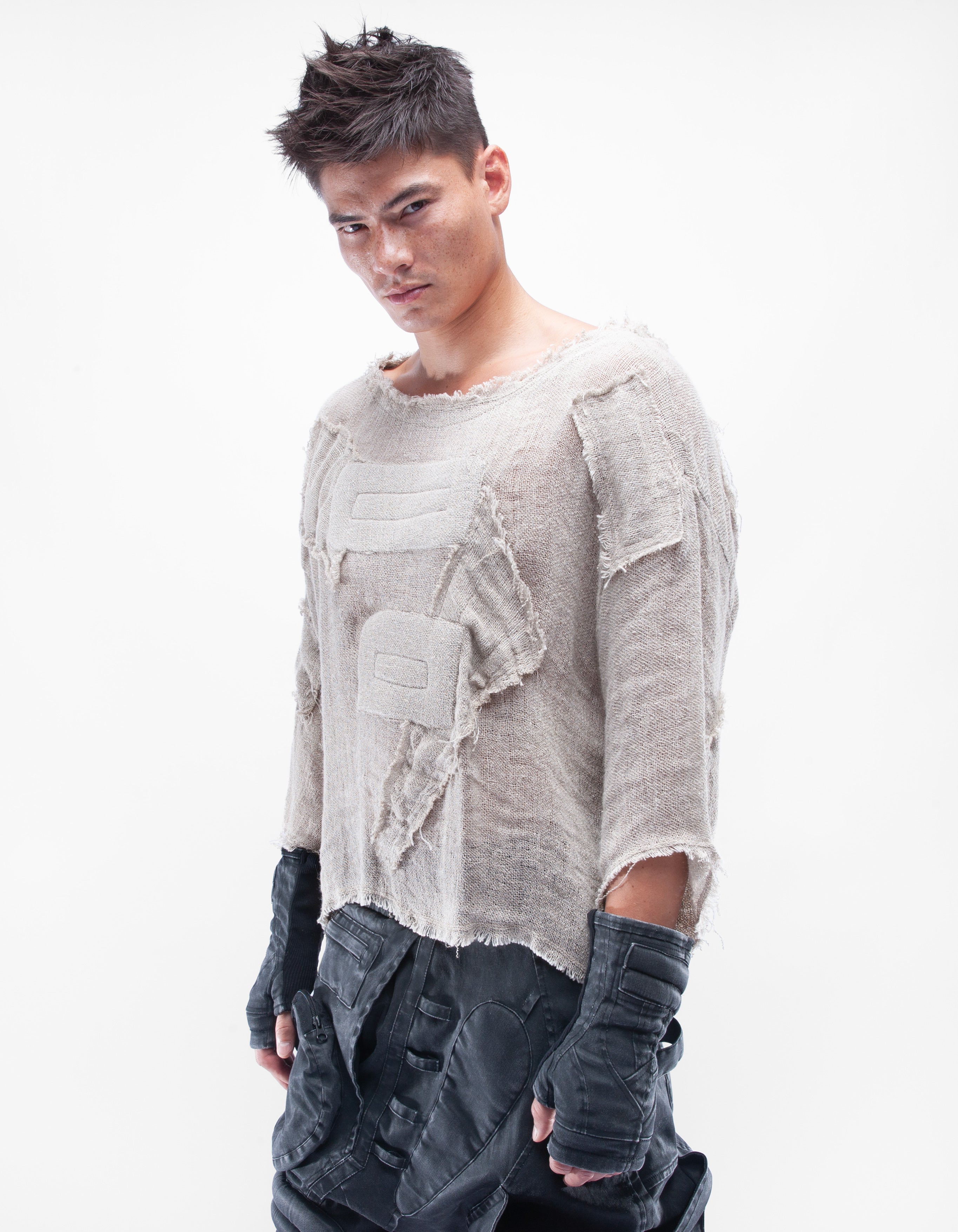 haut court en lin naturel détaillé