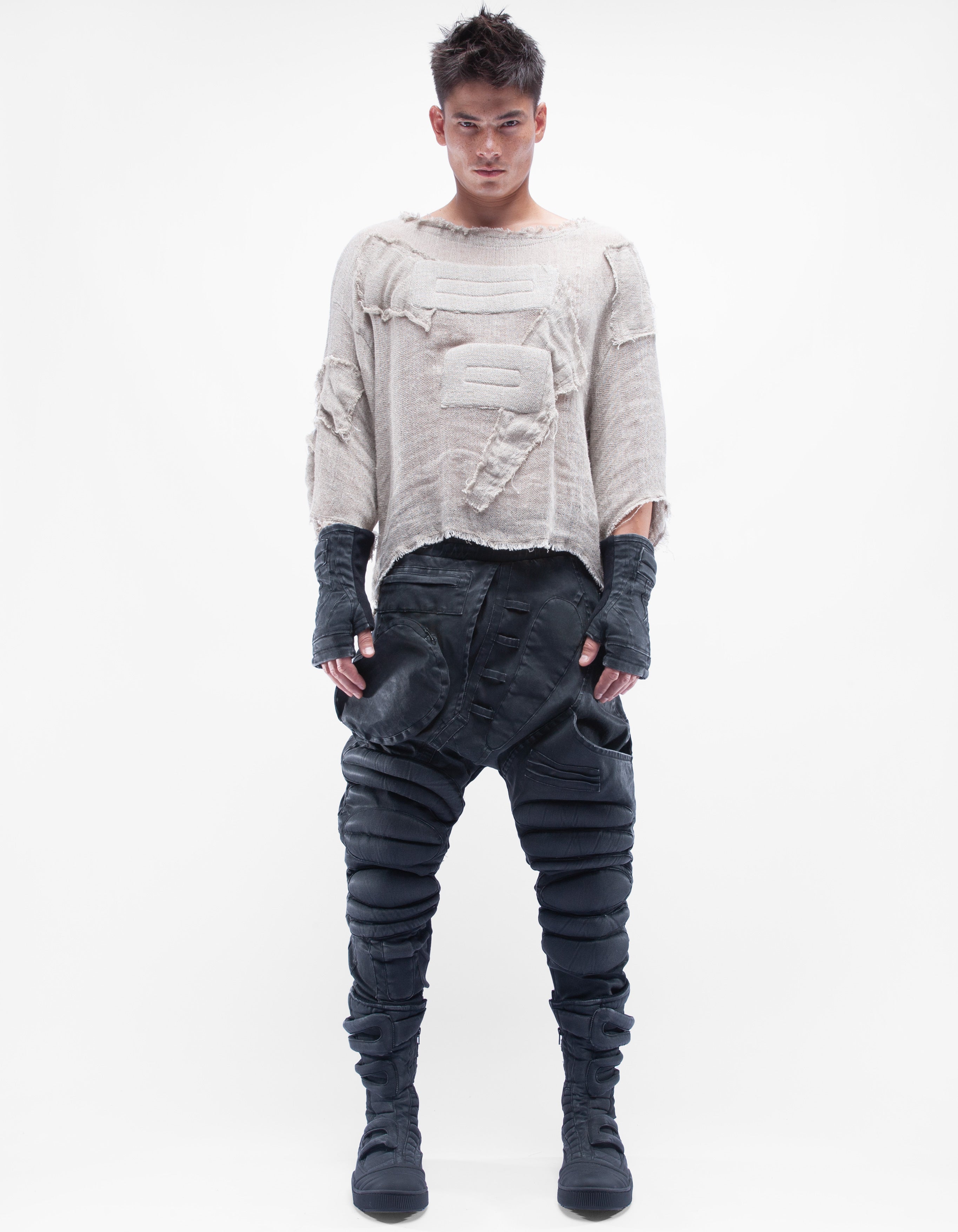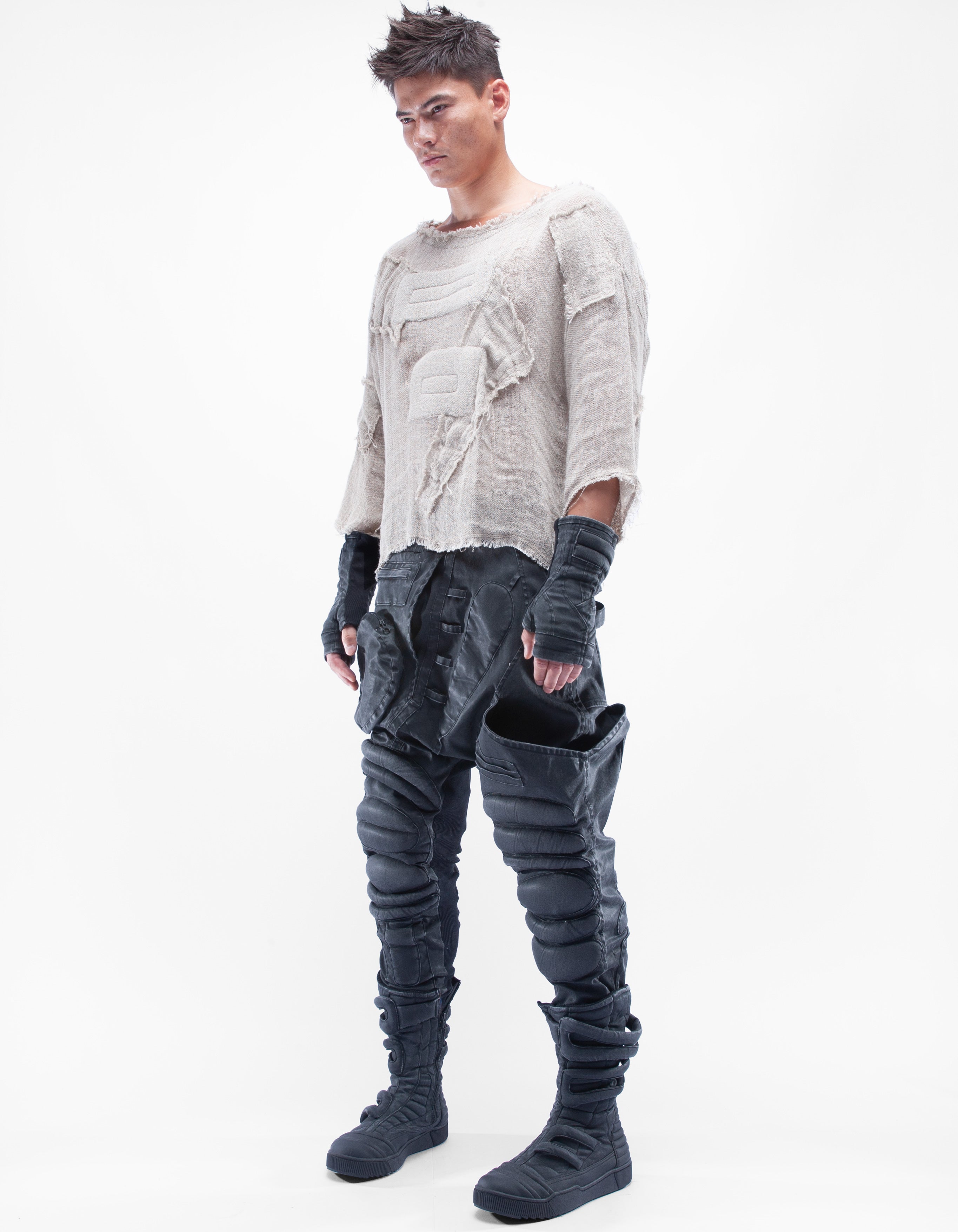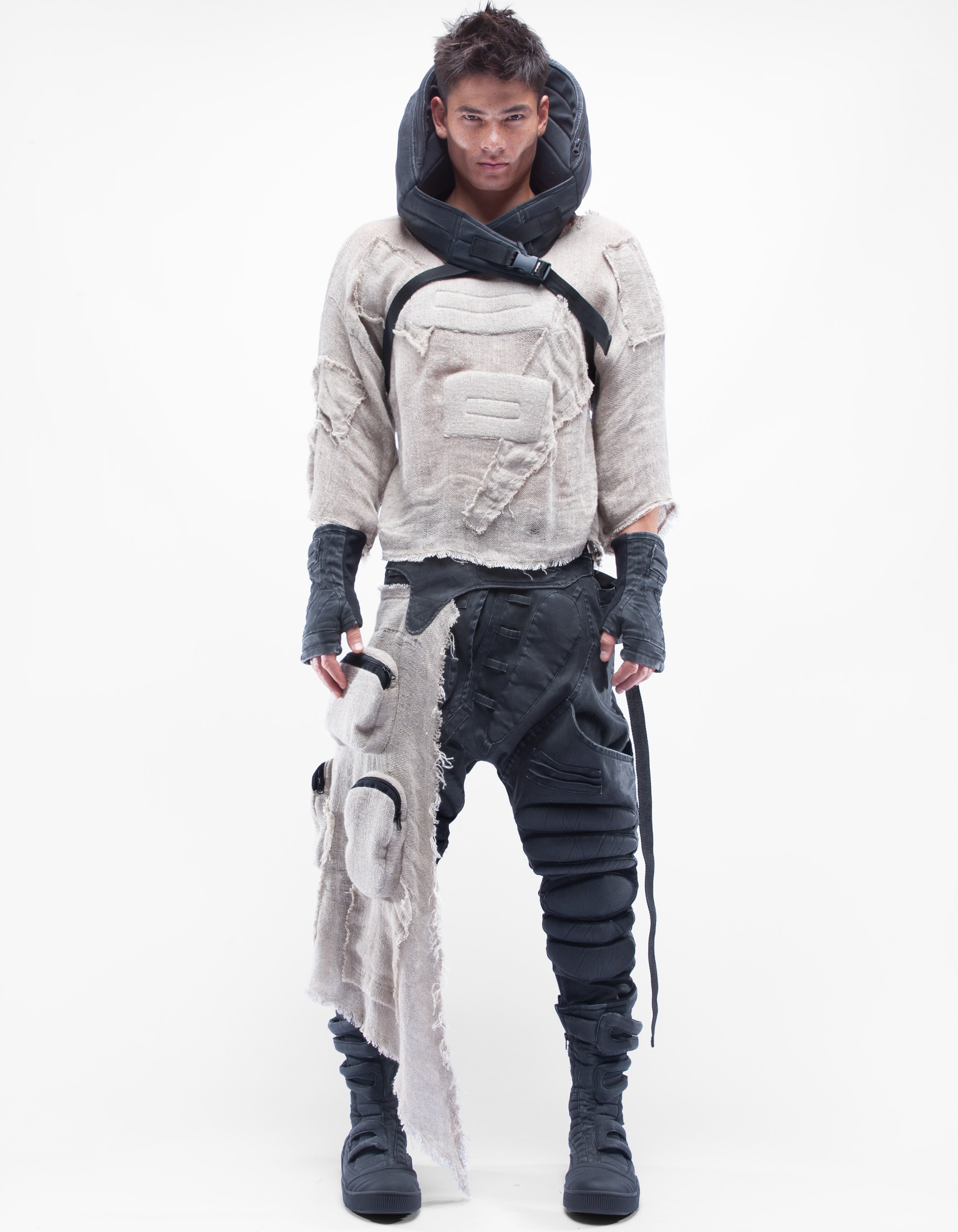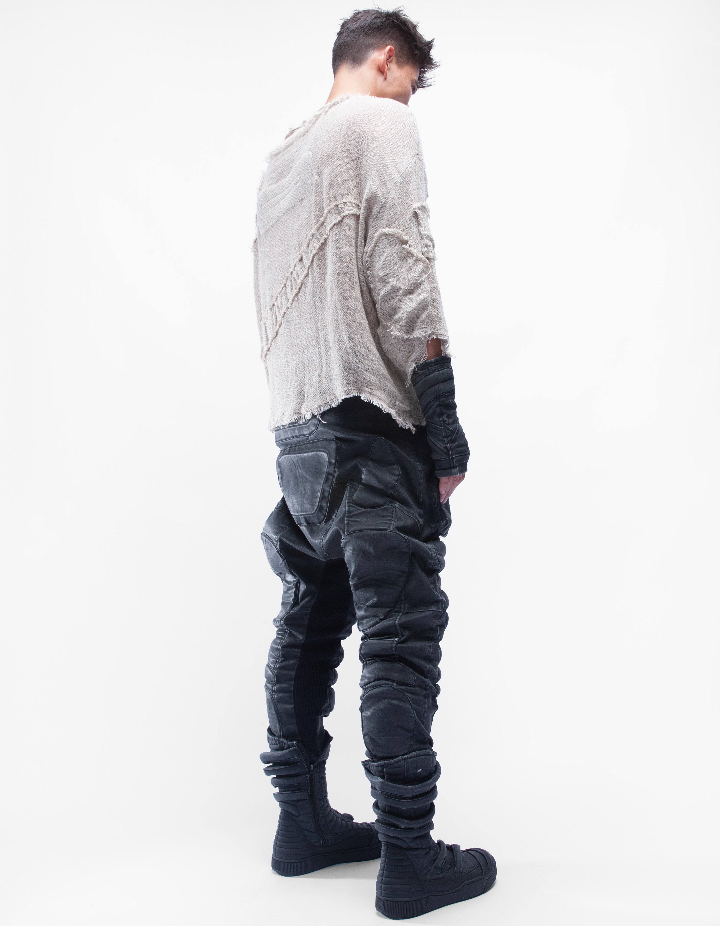 haut court en lin naturel détaillé