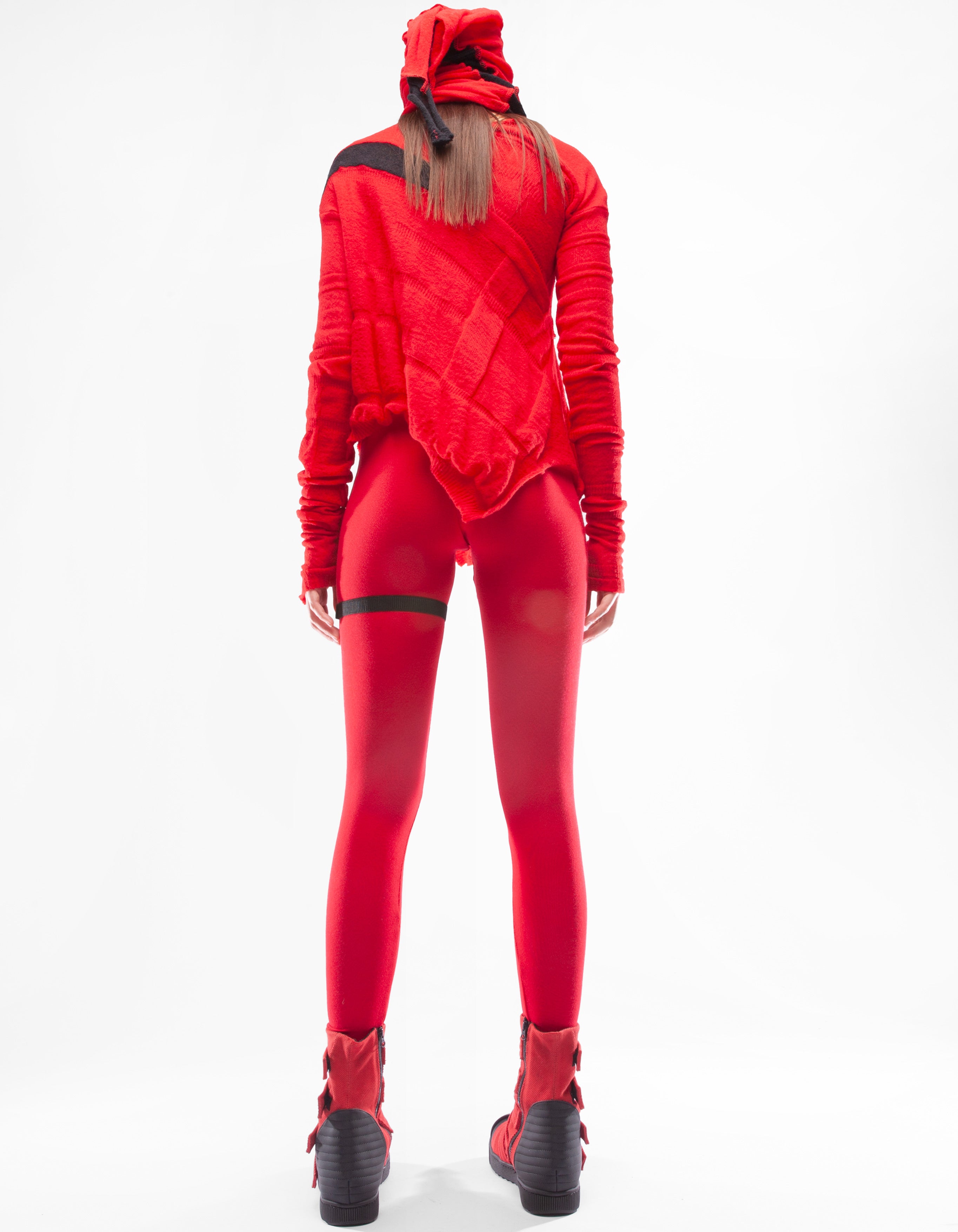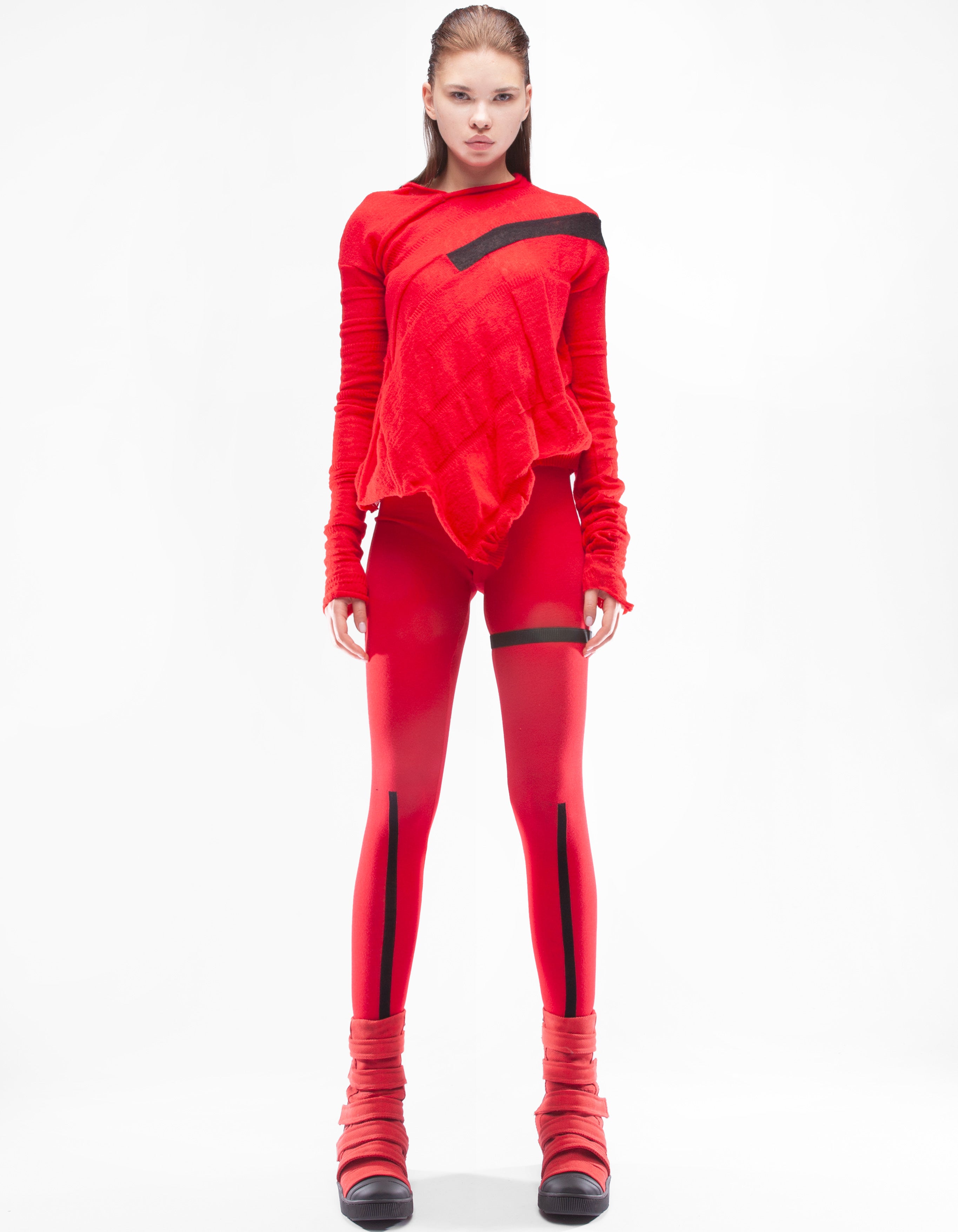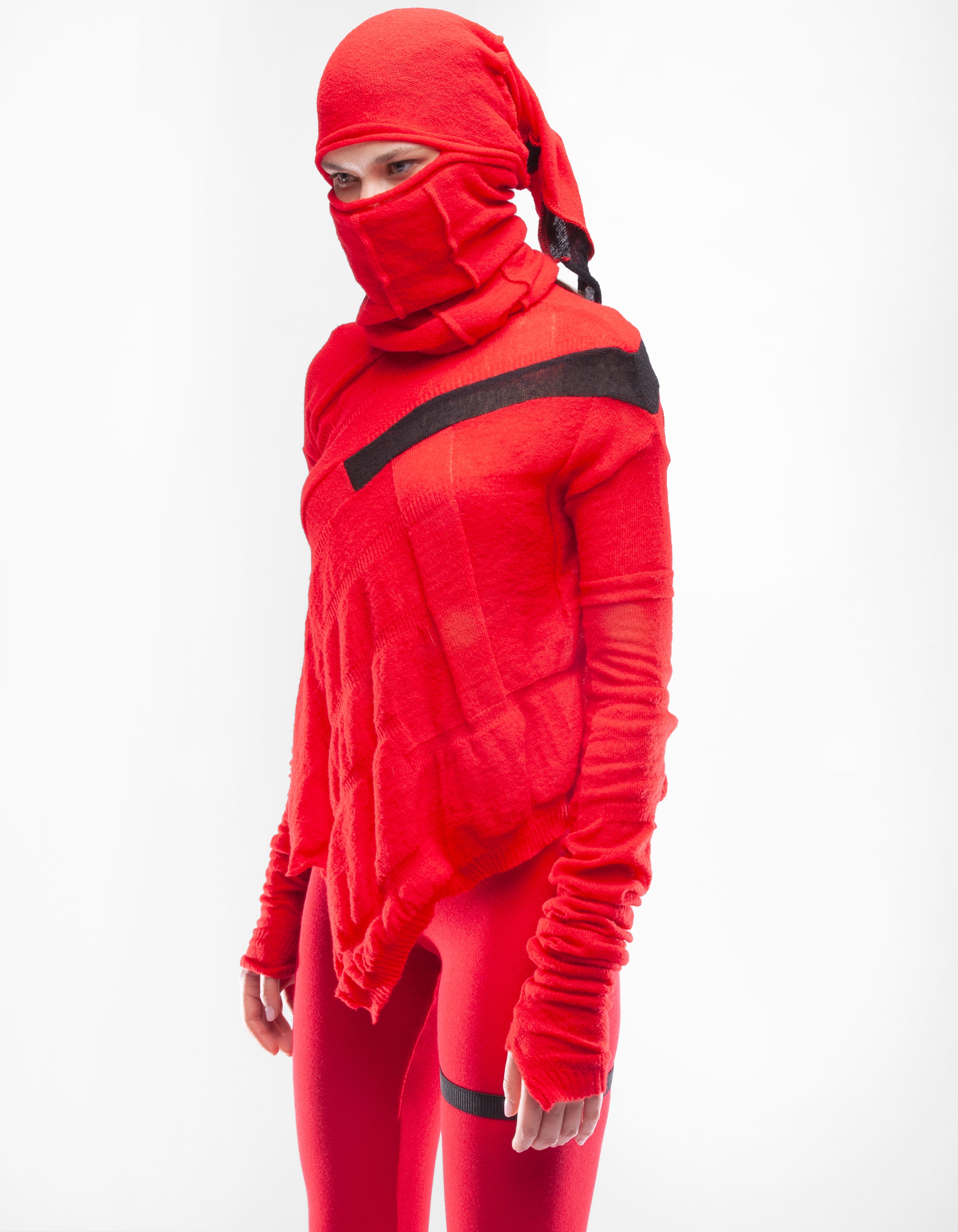 haut asymétrique à manches longues en maille fine avec éléments en relief