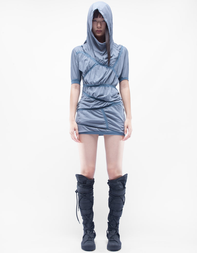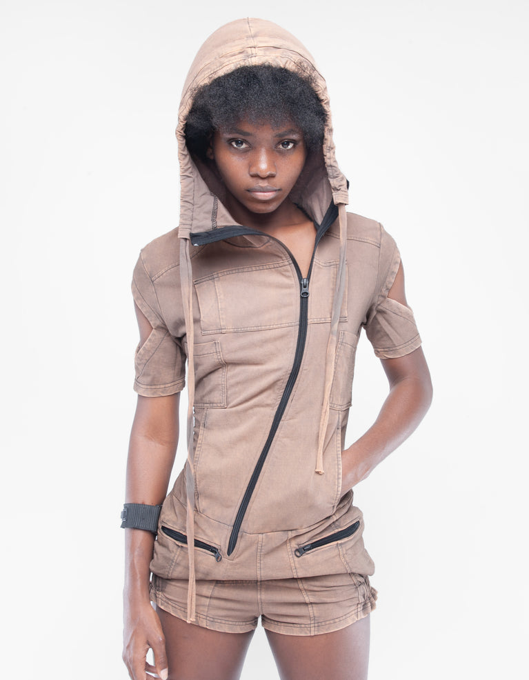 CAMICIA CORTA CON CAPPUCCIO IN TESSUTO