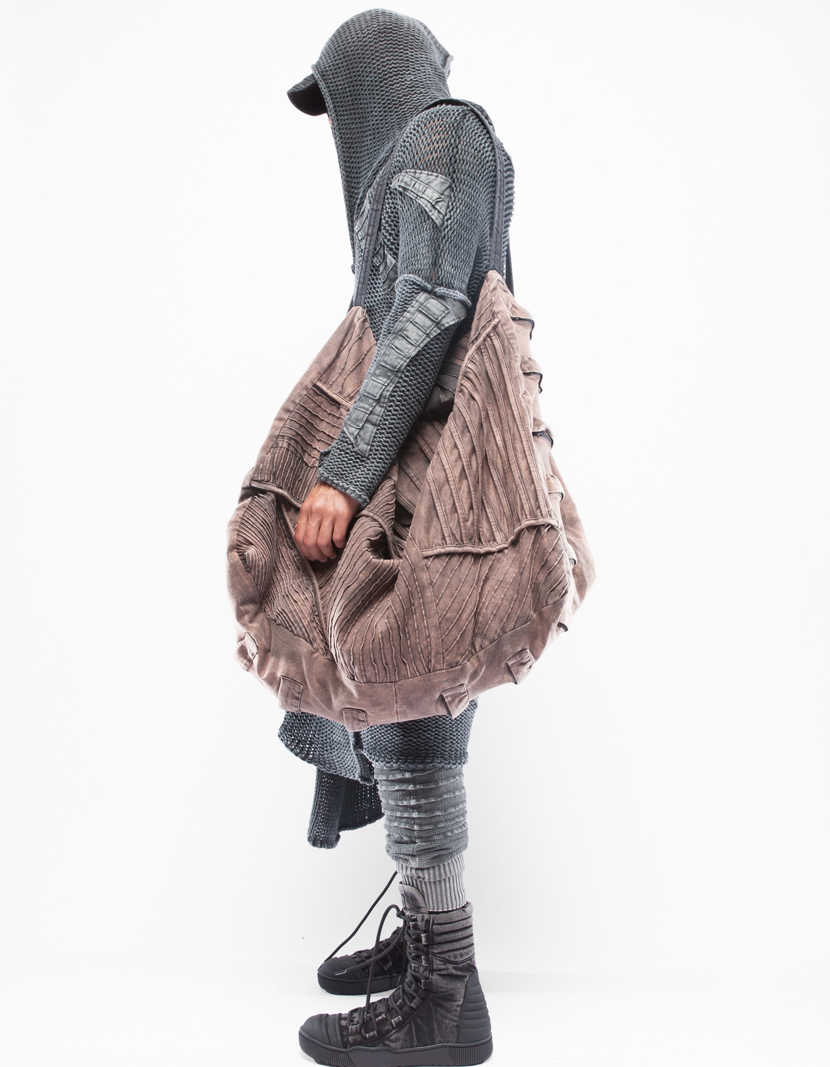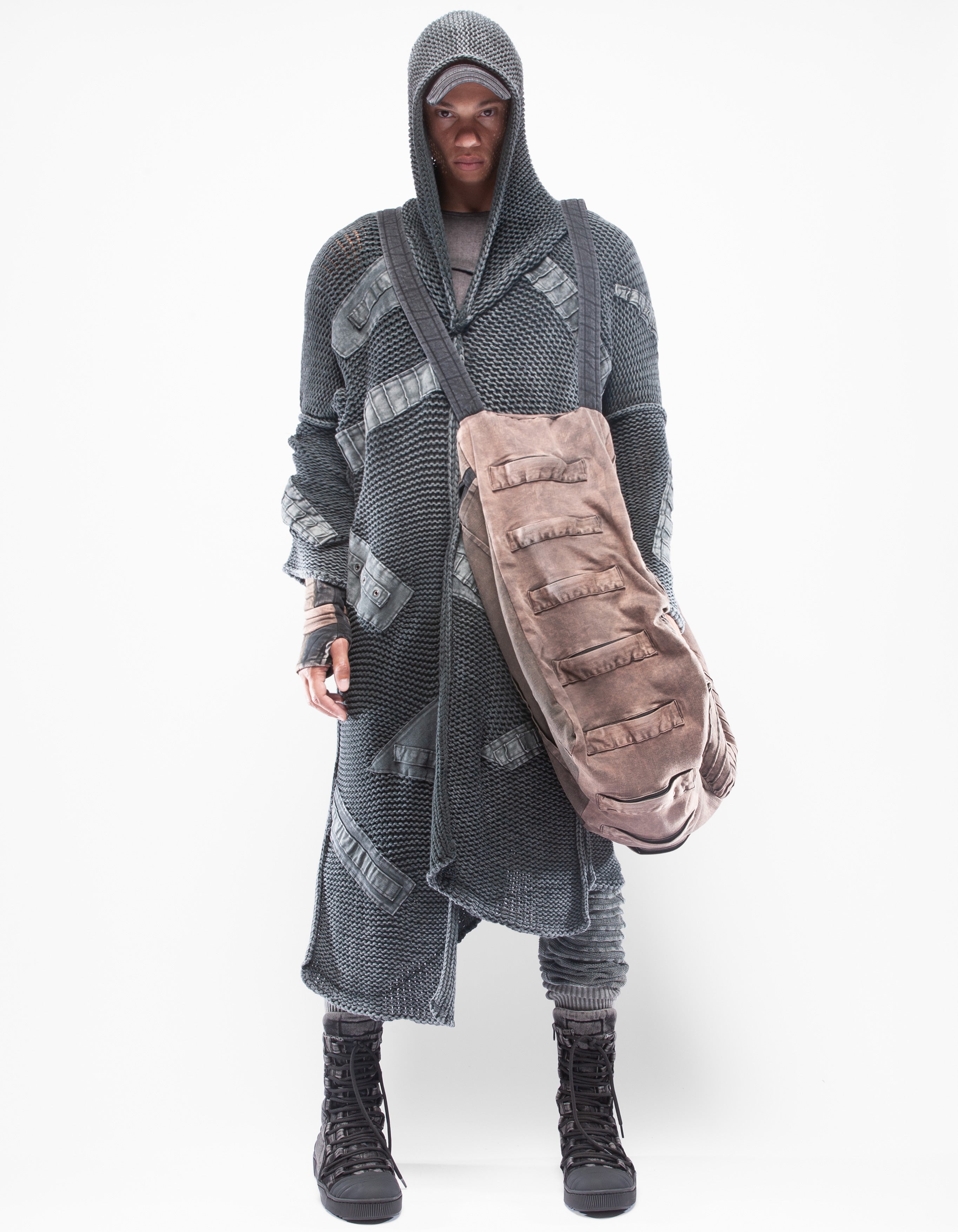 cardigan pesante lavorato a maglia dettagliato ricostruito con elementi in denim