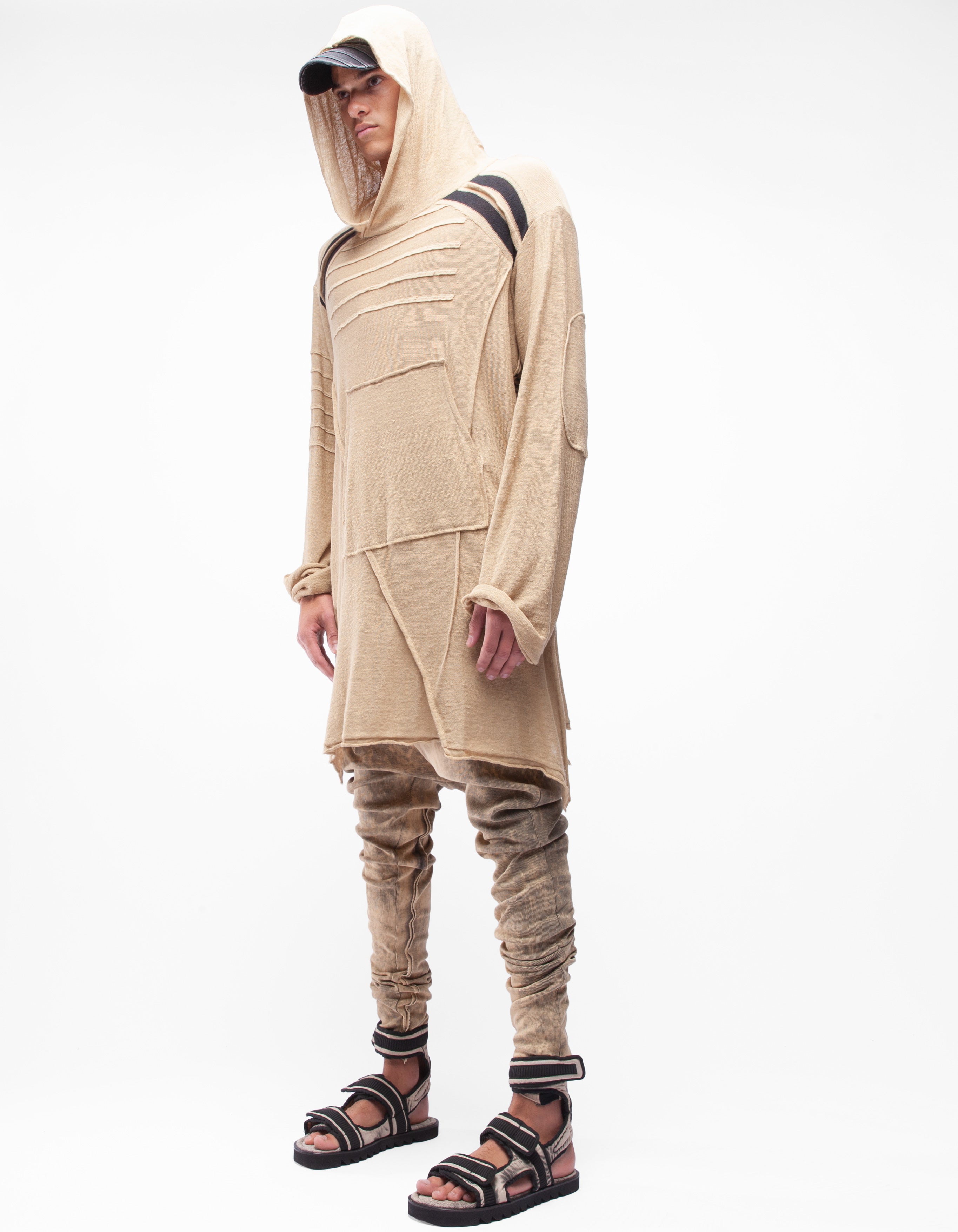 top oversize con cappuccio da uomo lavorato a maglia fine e dettagliato