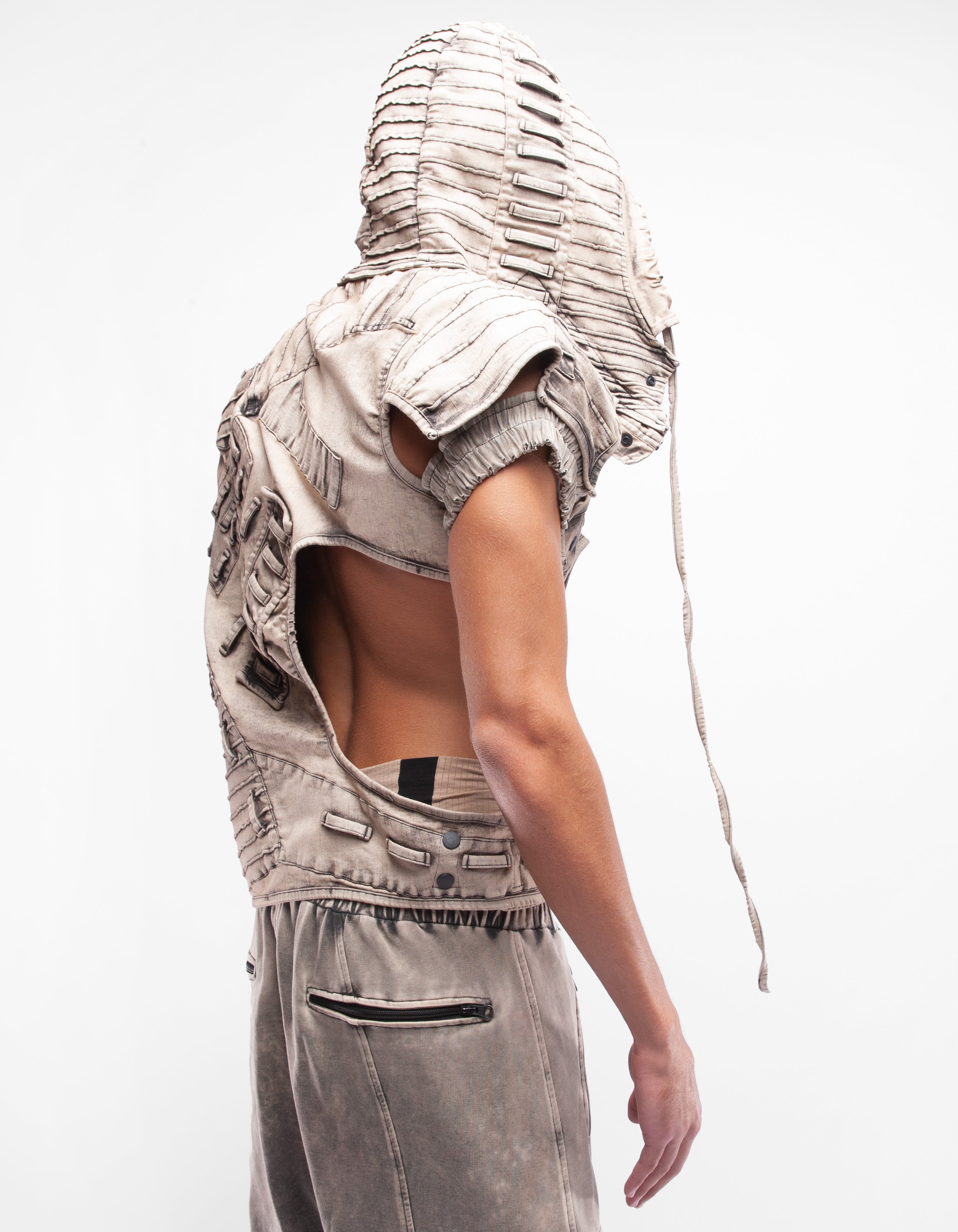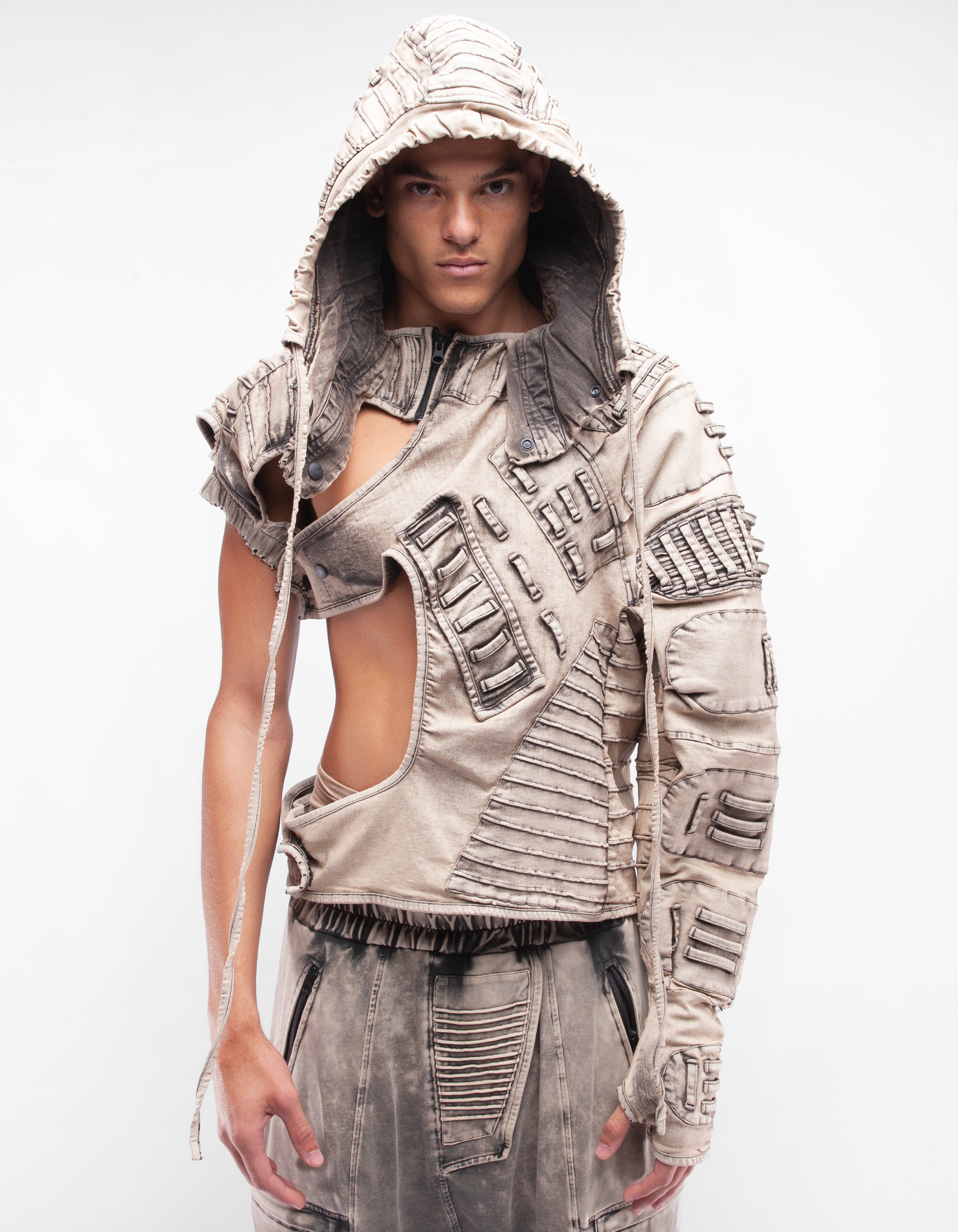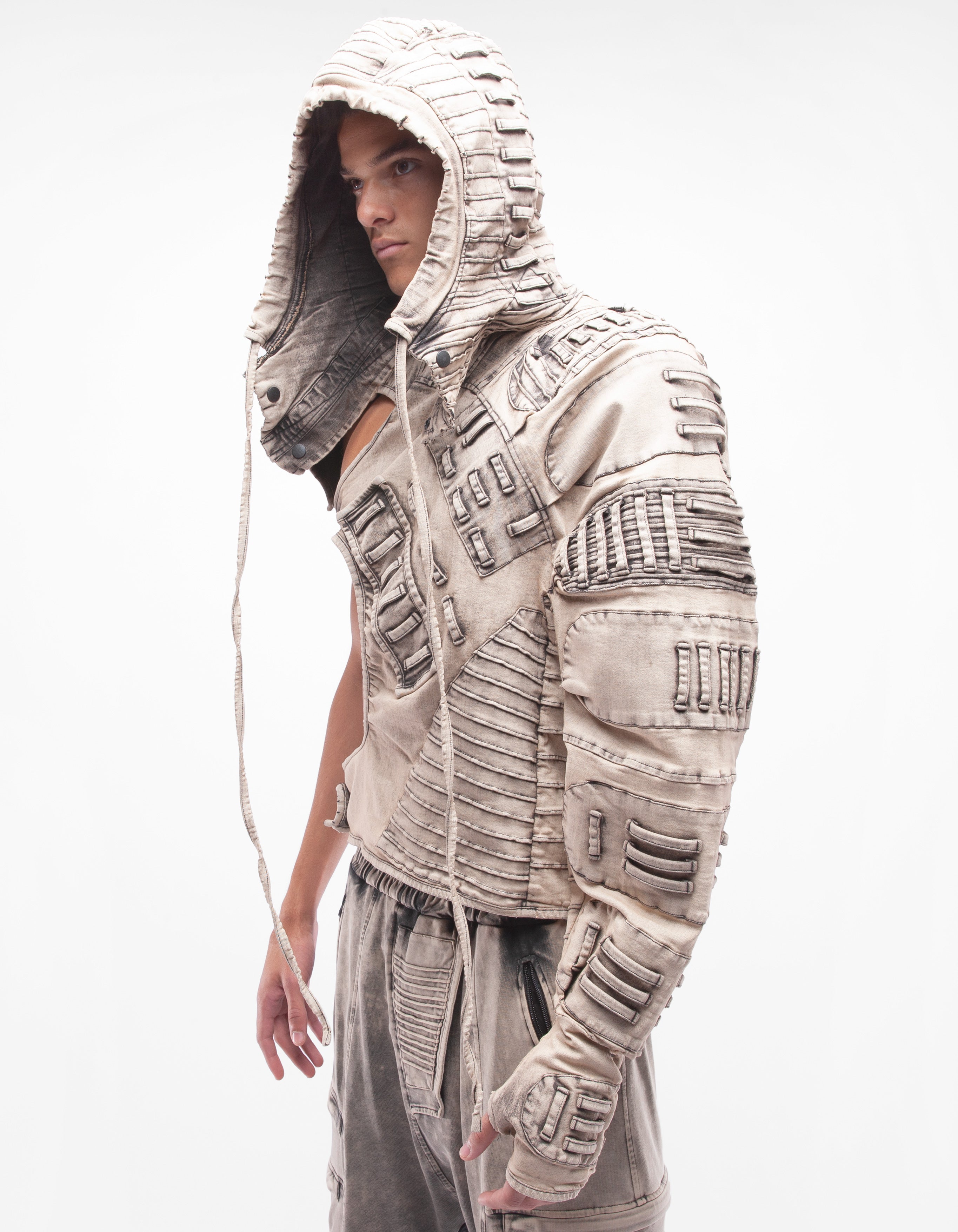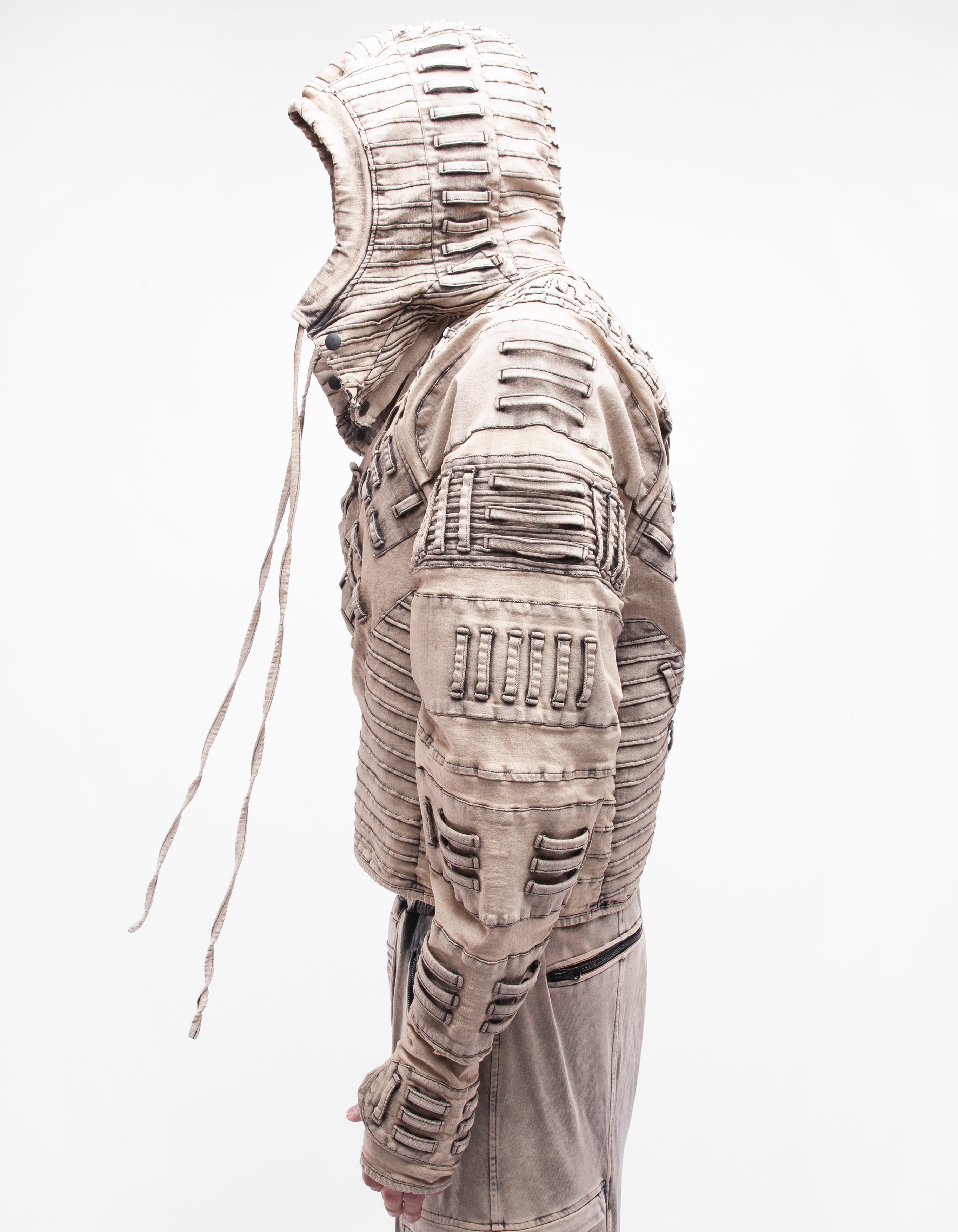 giacca in denim con maniche con cappuccio