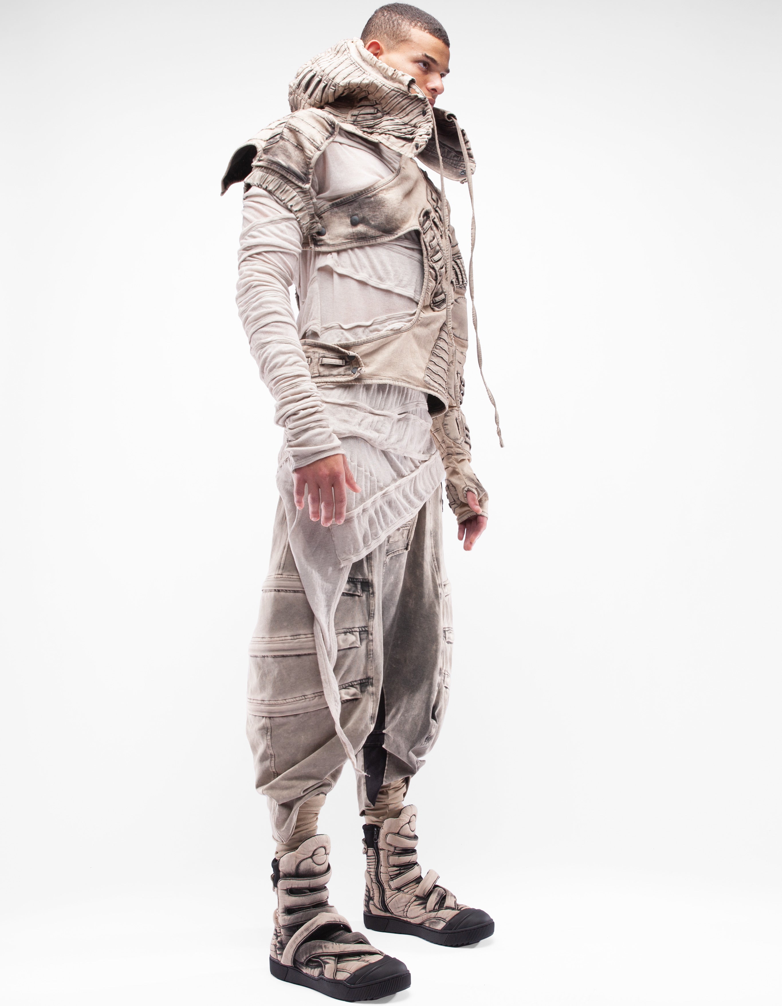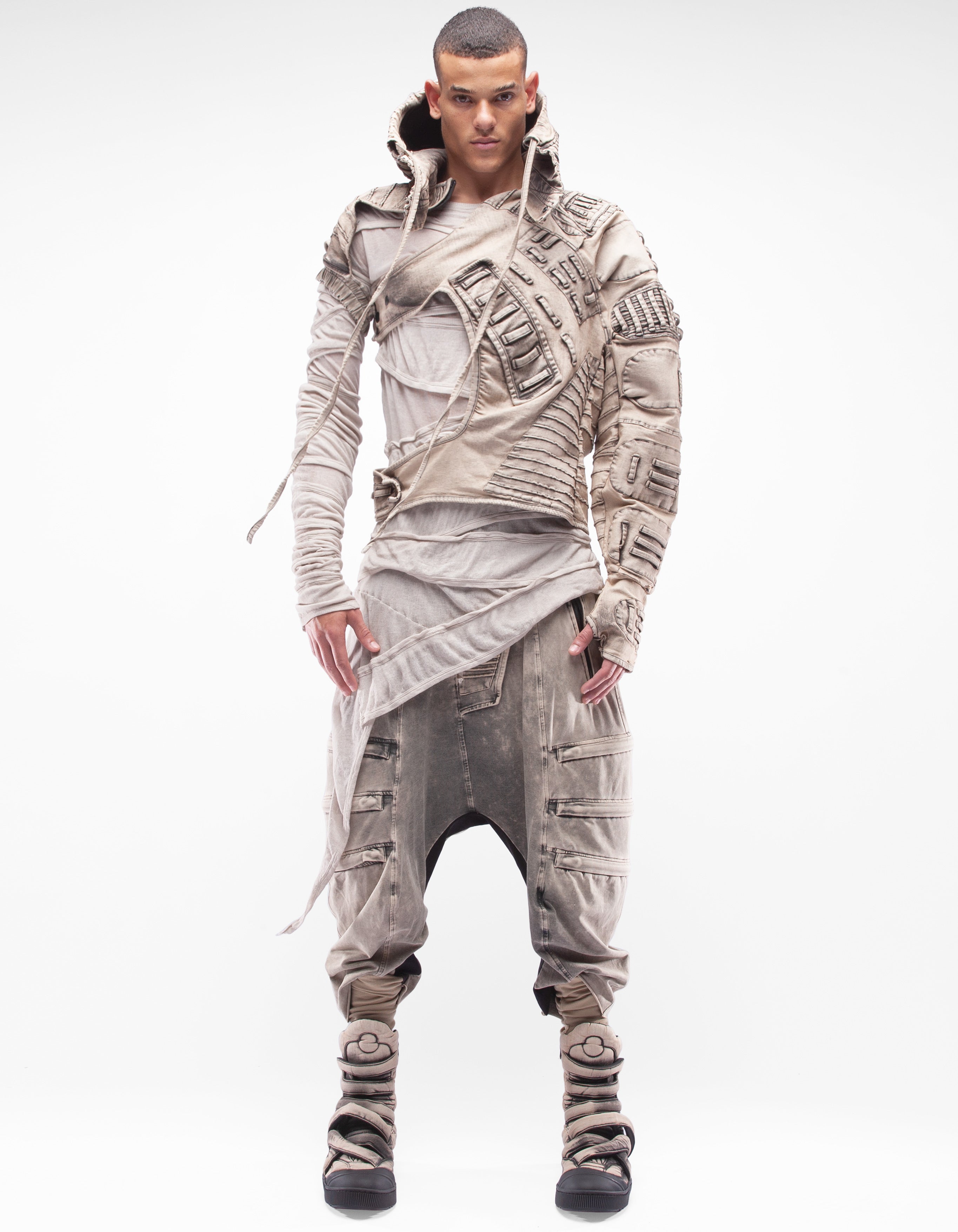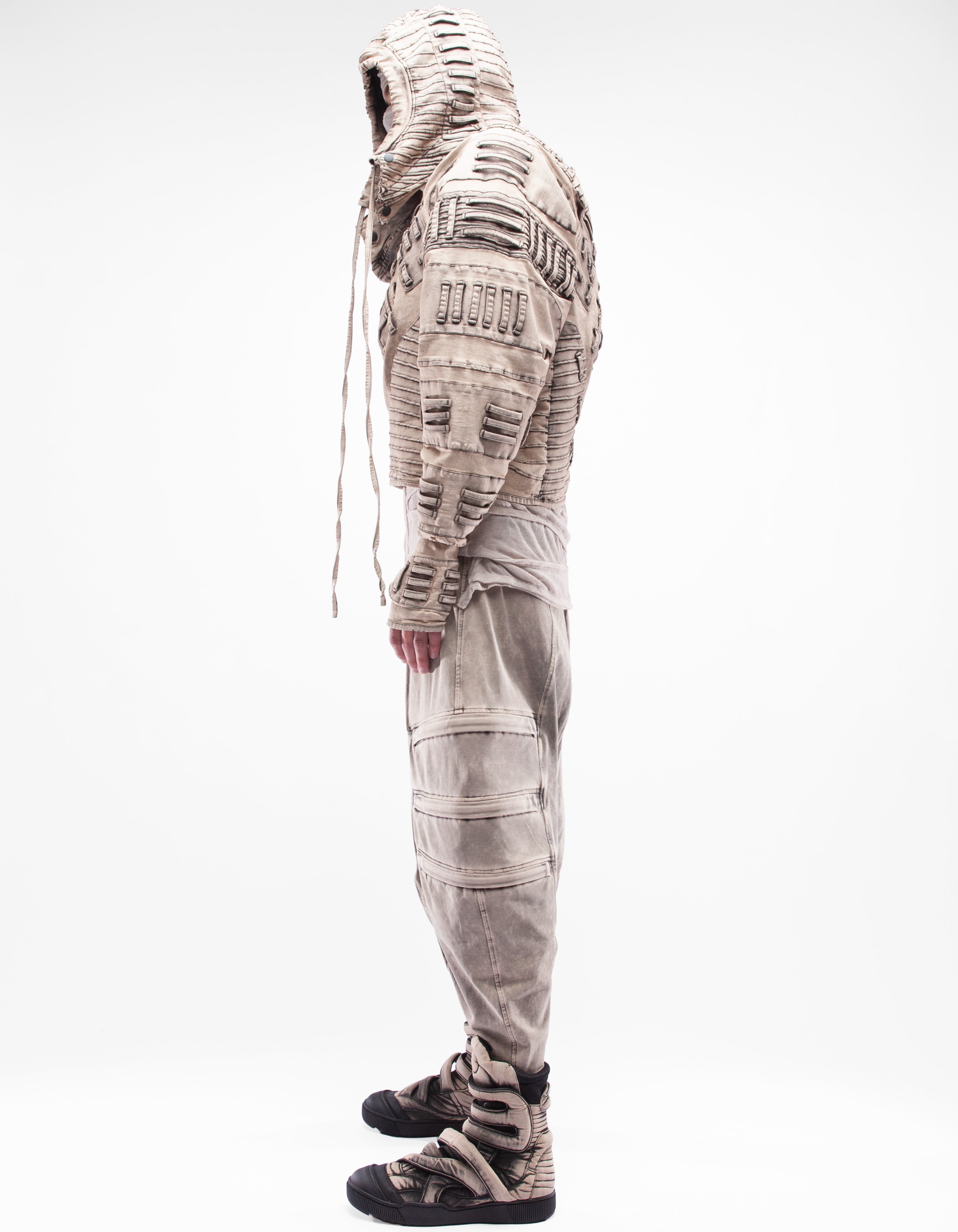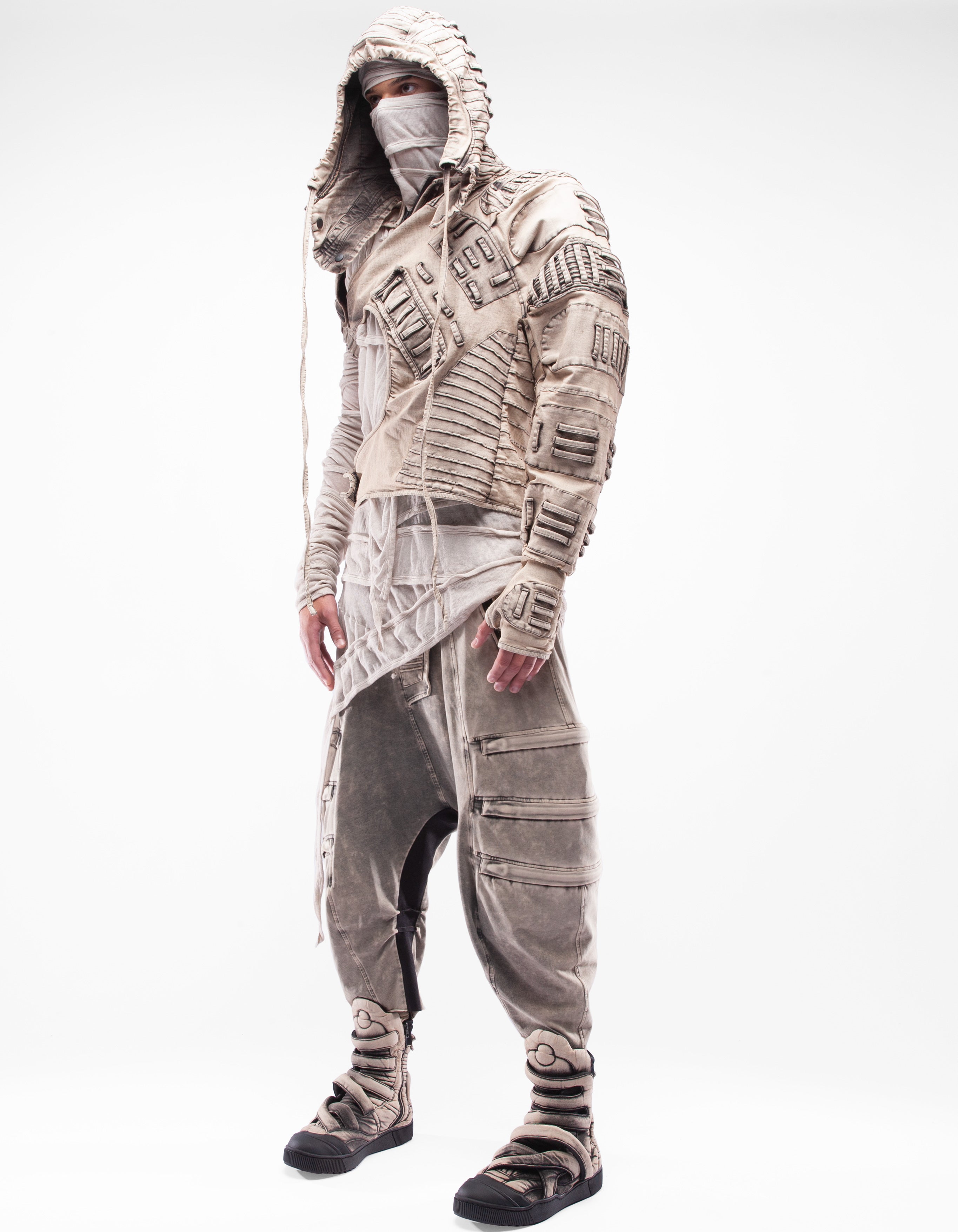giacca in denim con maniche con cappuccio