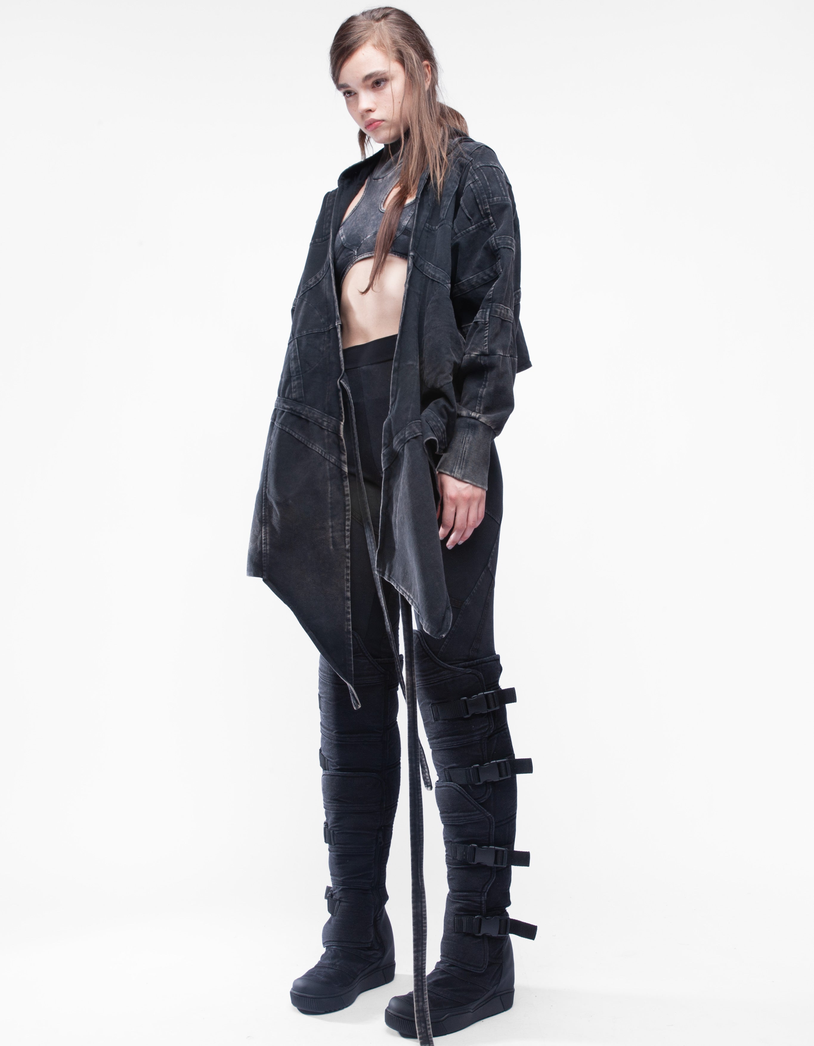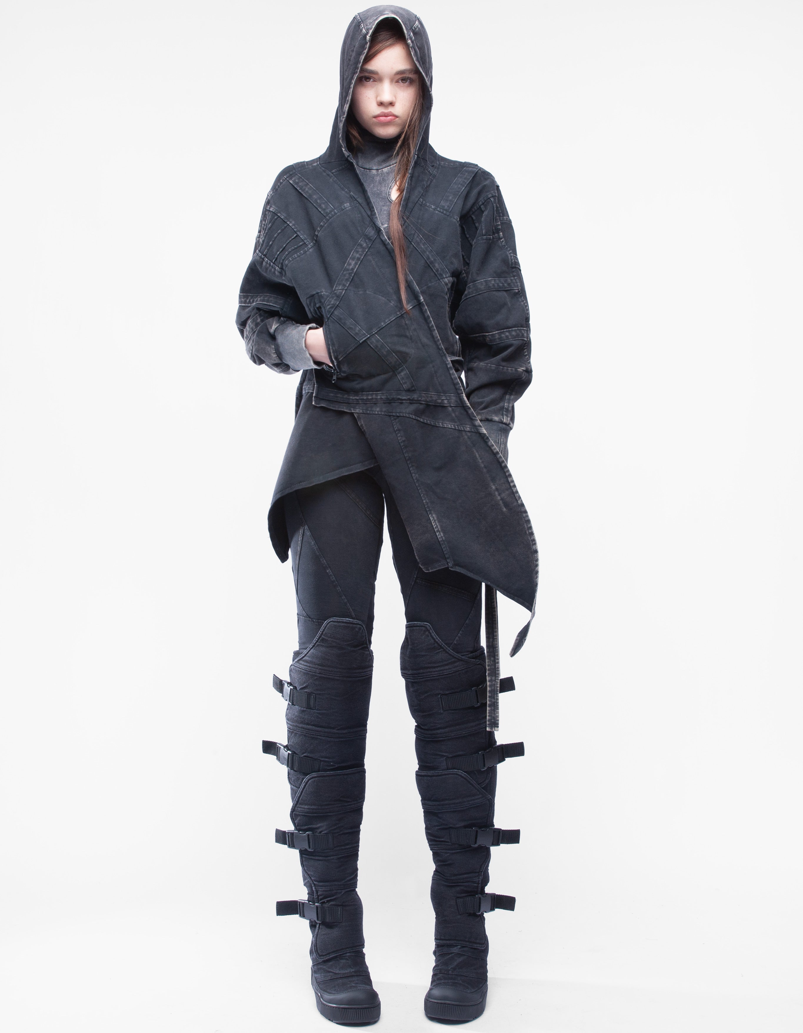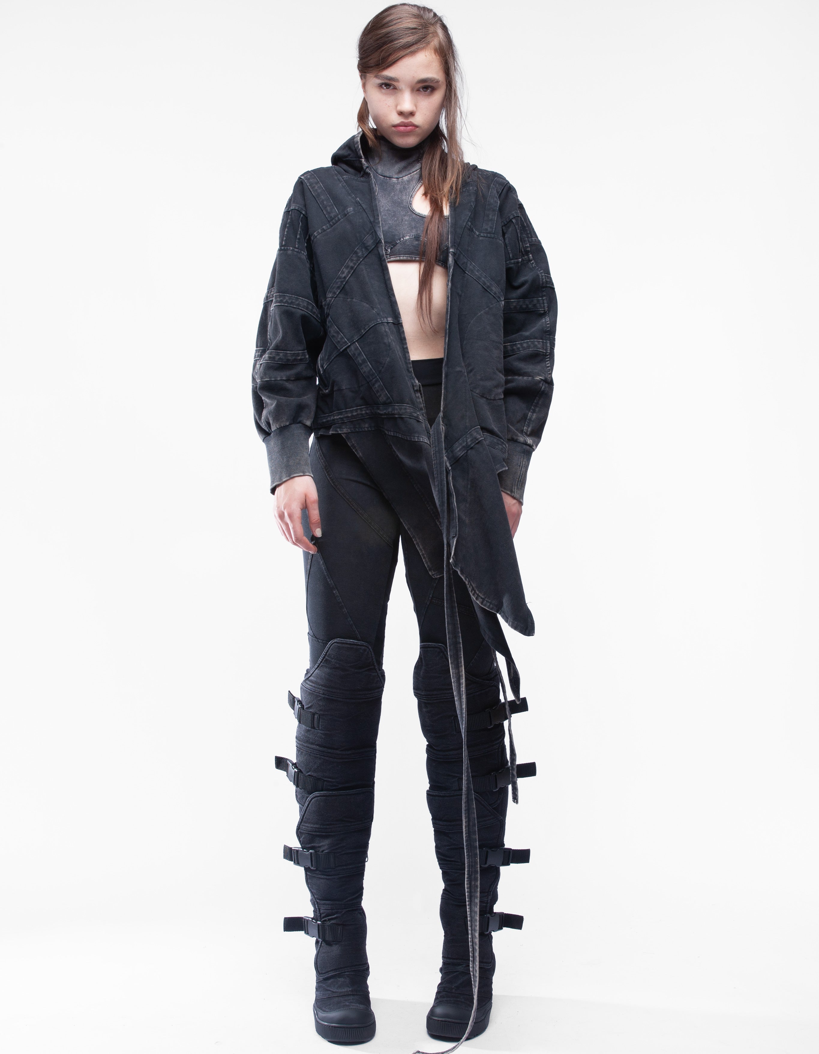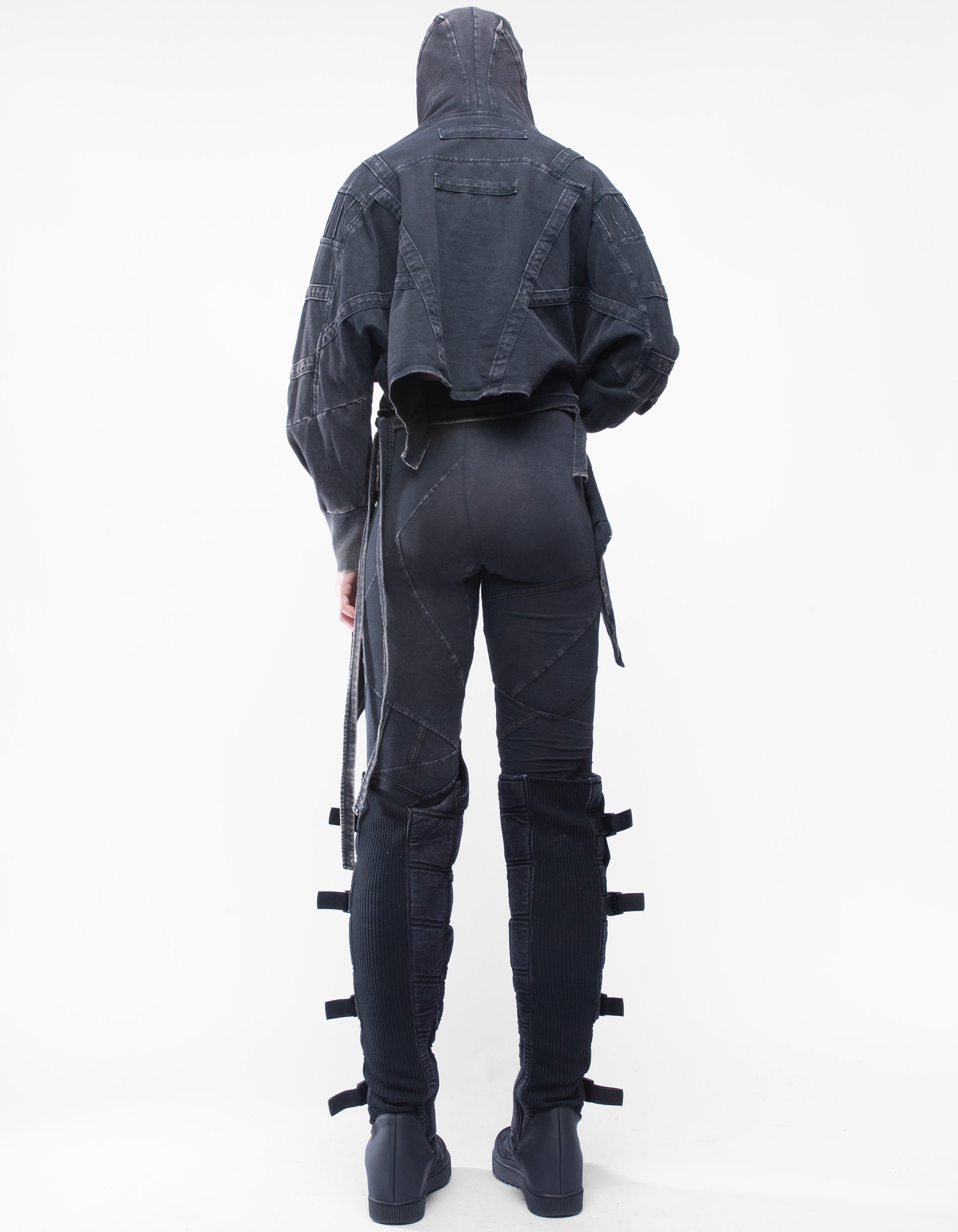 detailed cotton asymmetric short V-neck wrap hooded cardigan