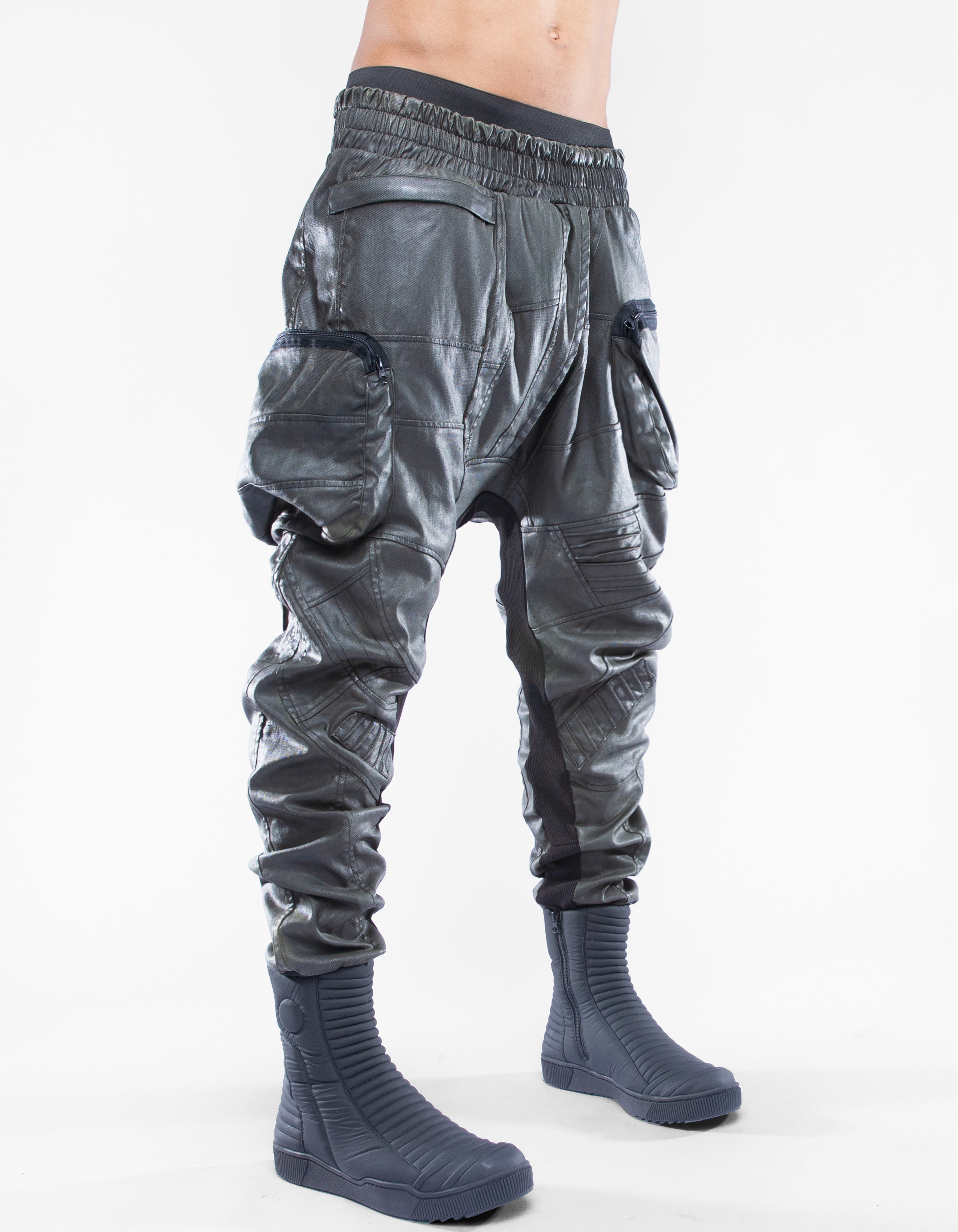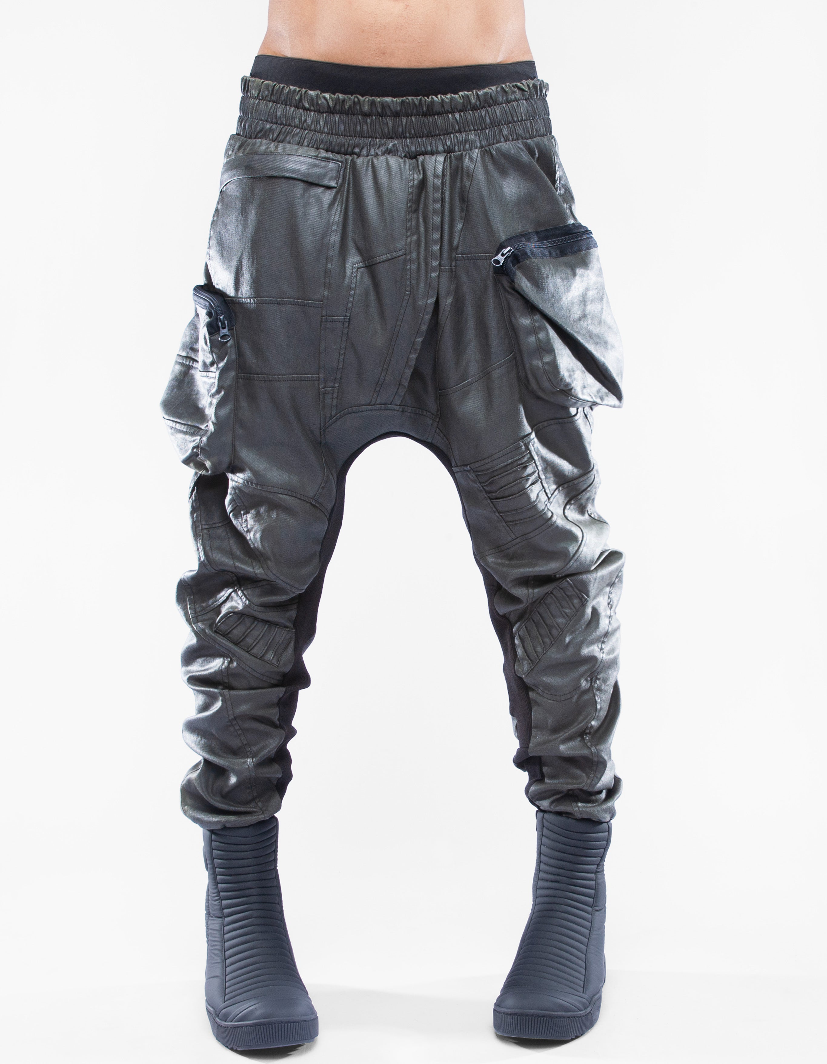 waxed denim combat trousers