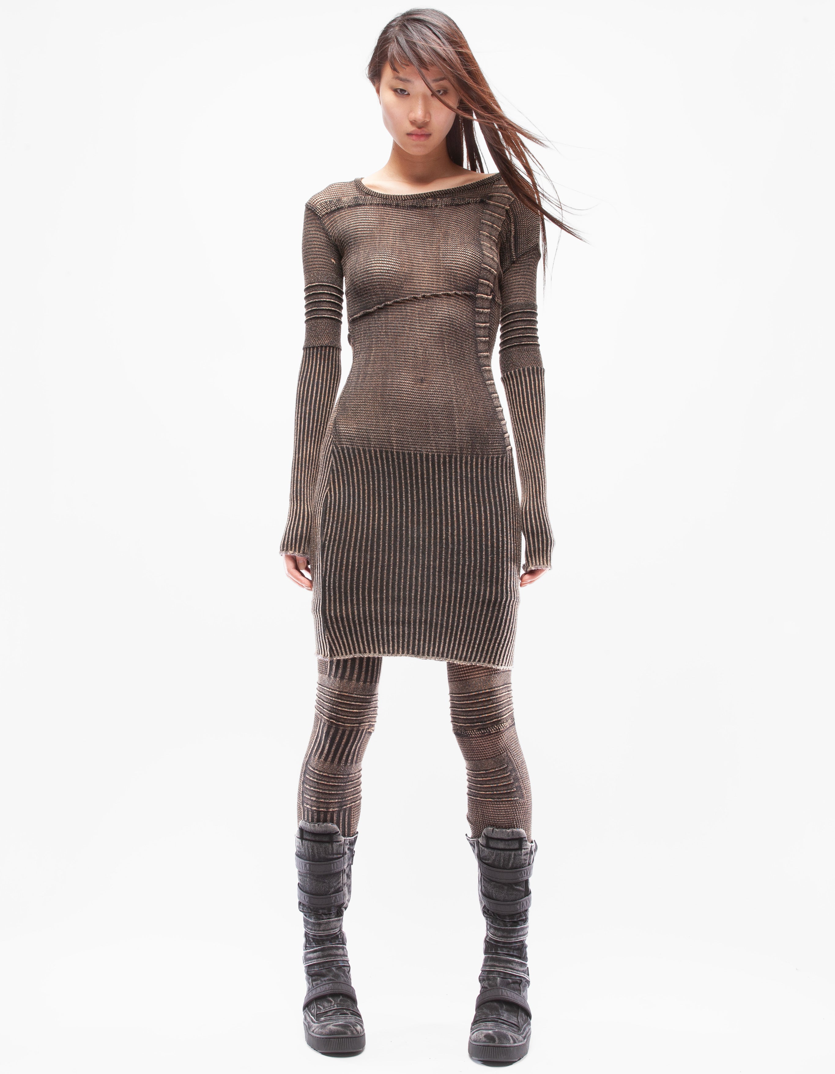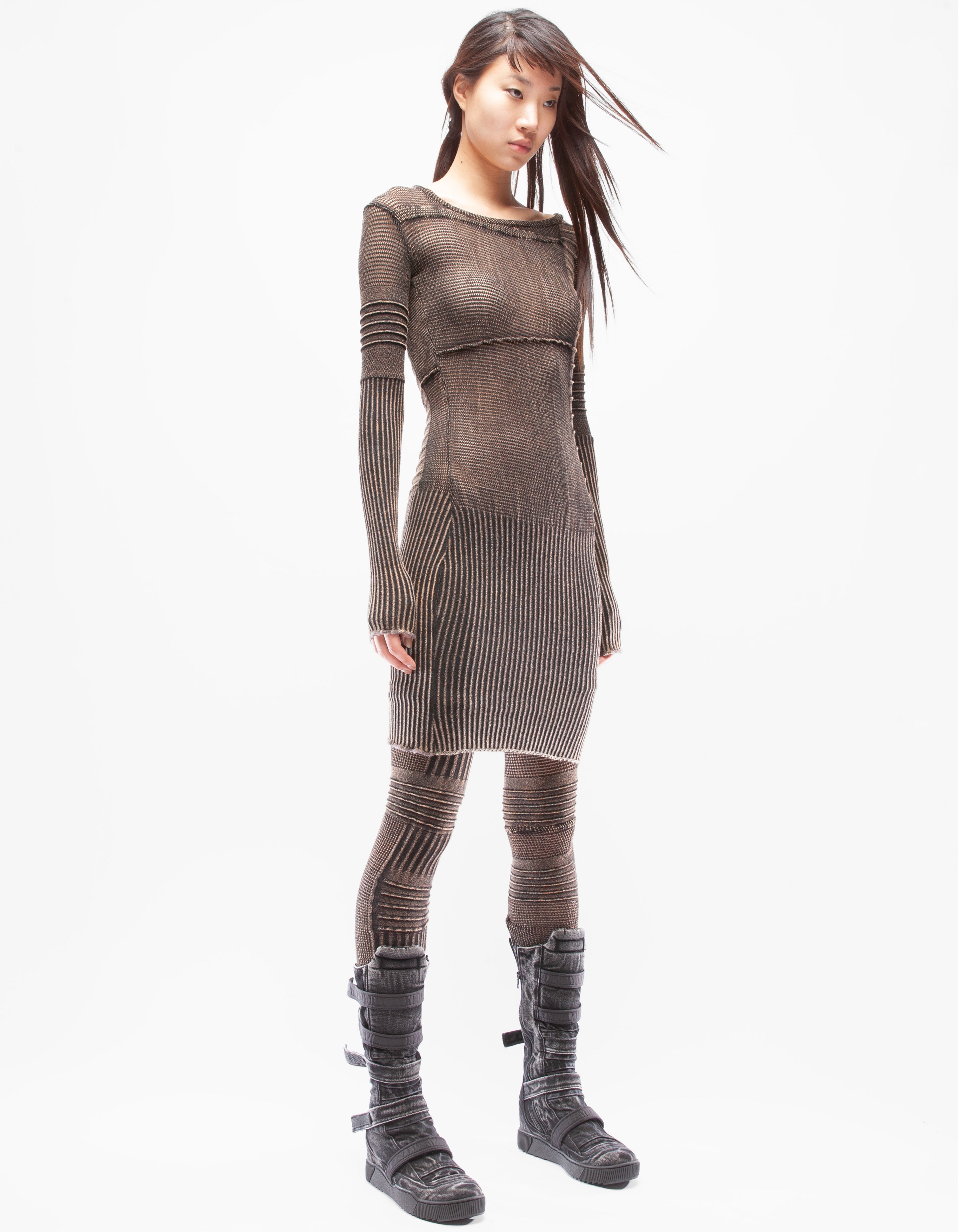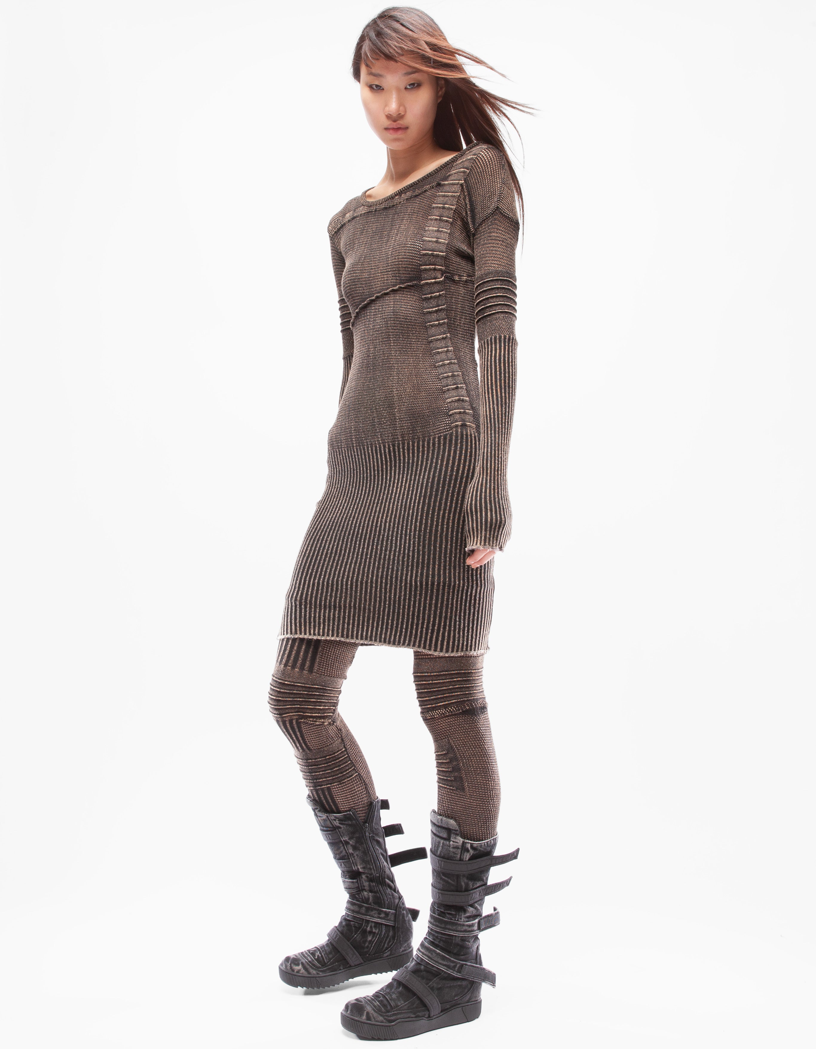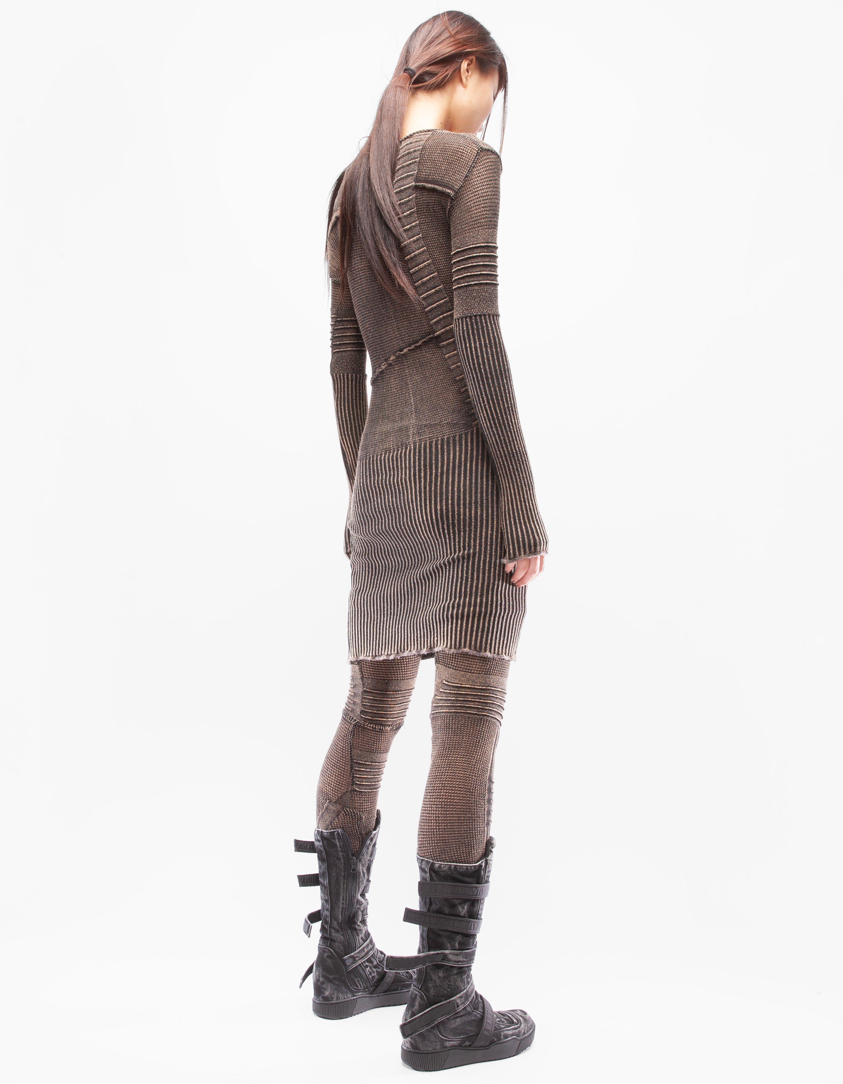詳細なファインニットの伸縮性のあるアシンメトリーフィットドレス