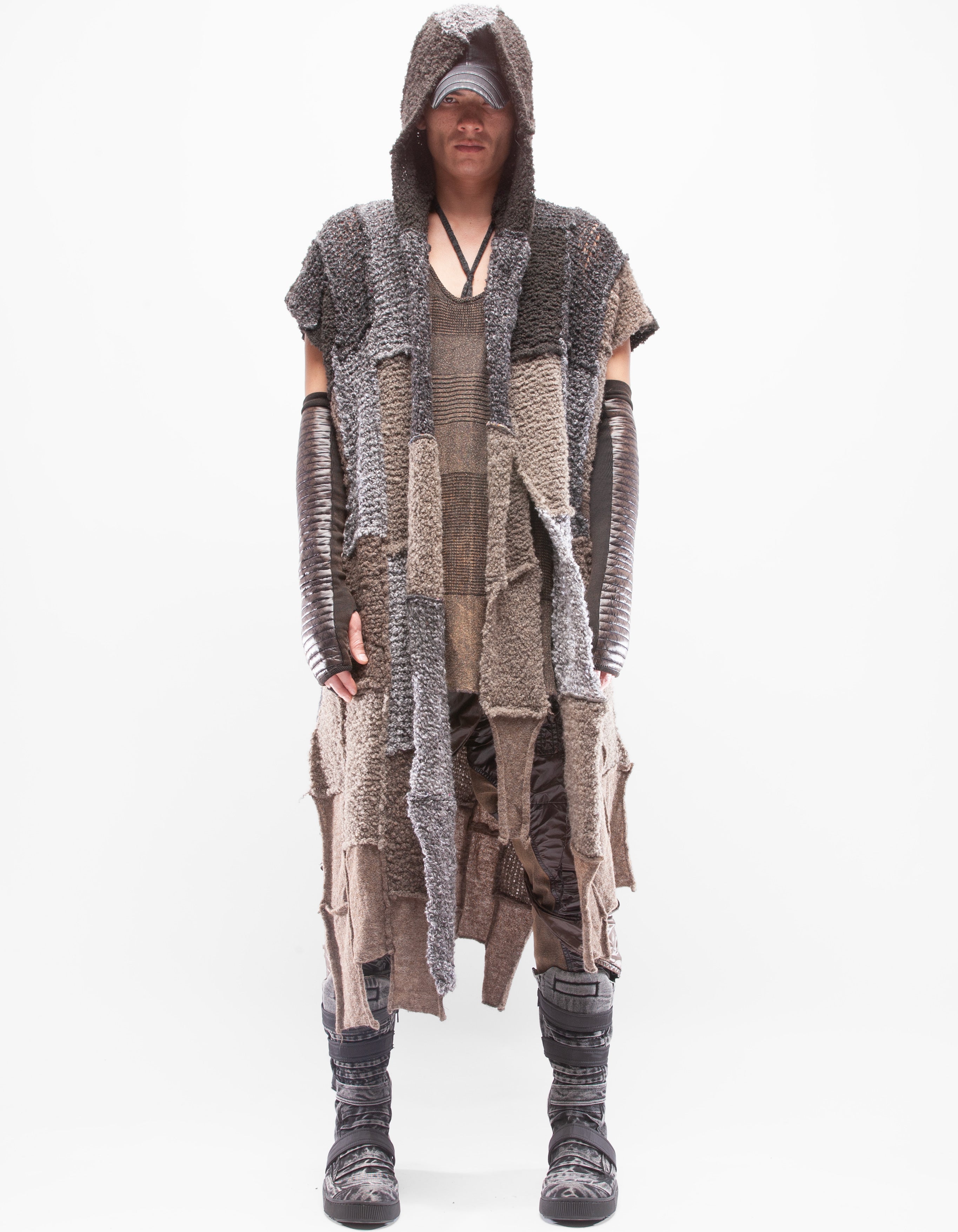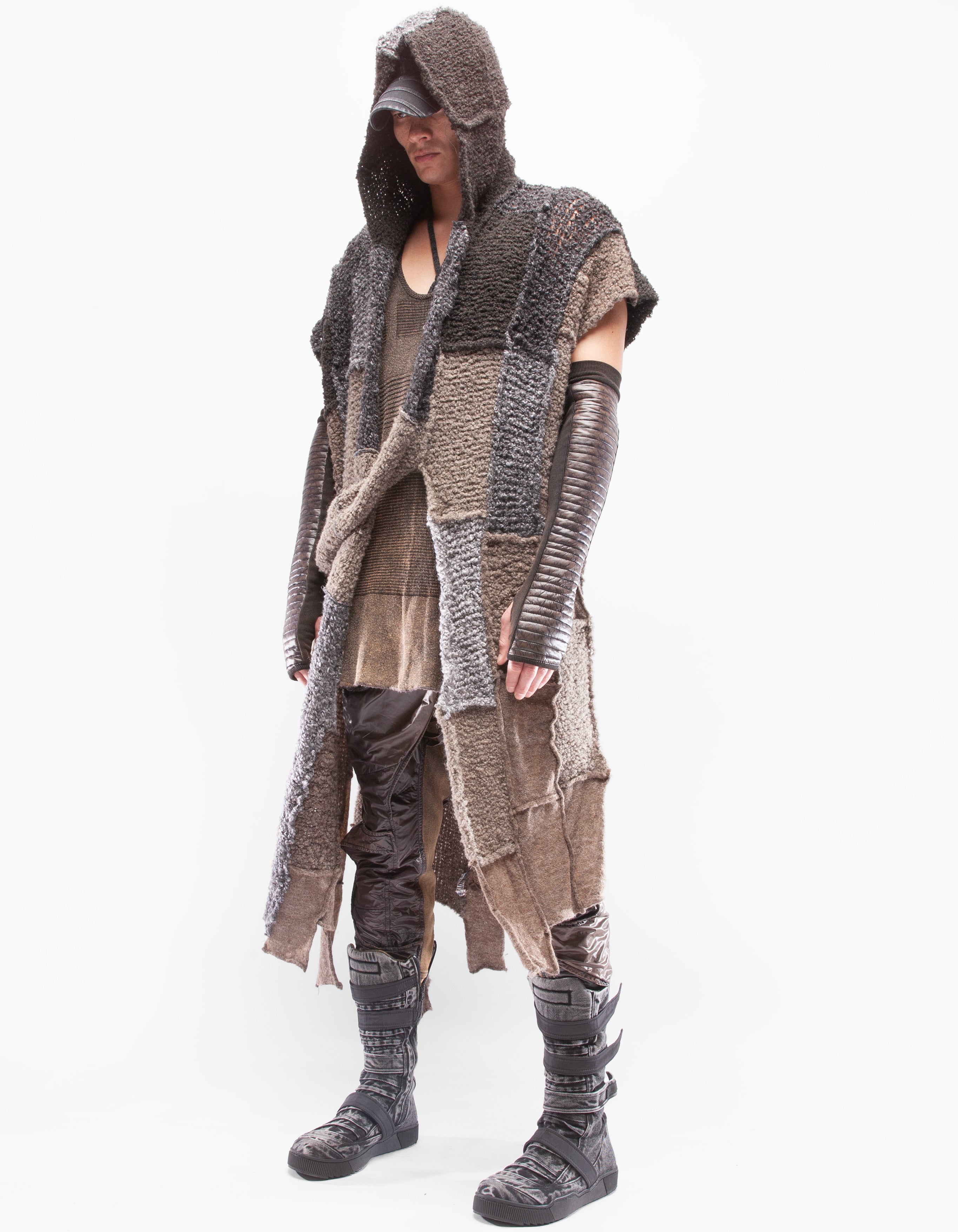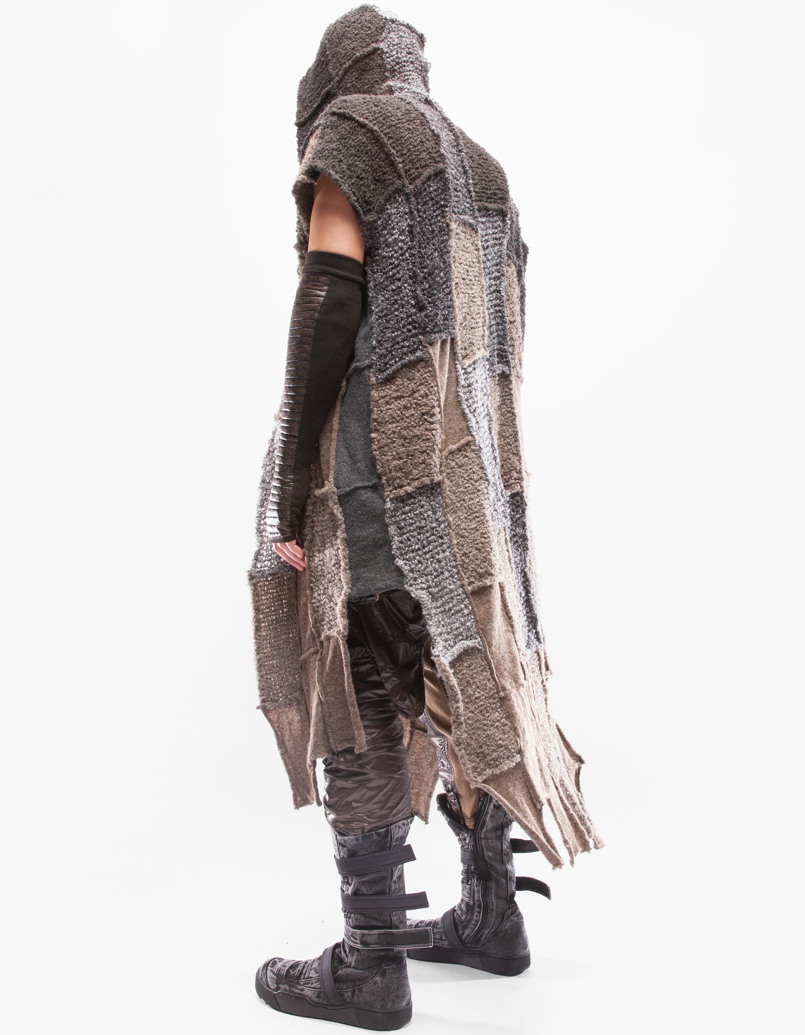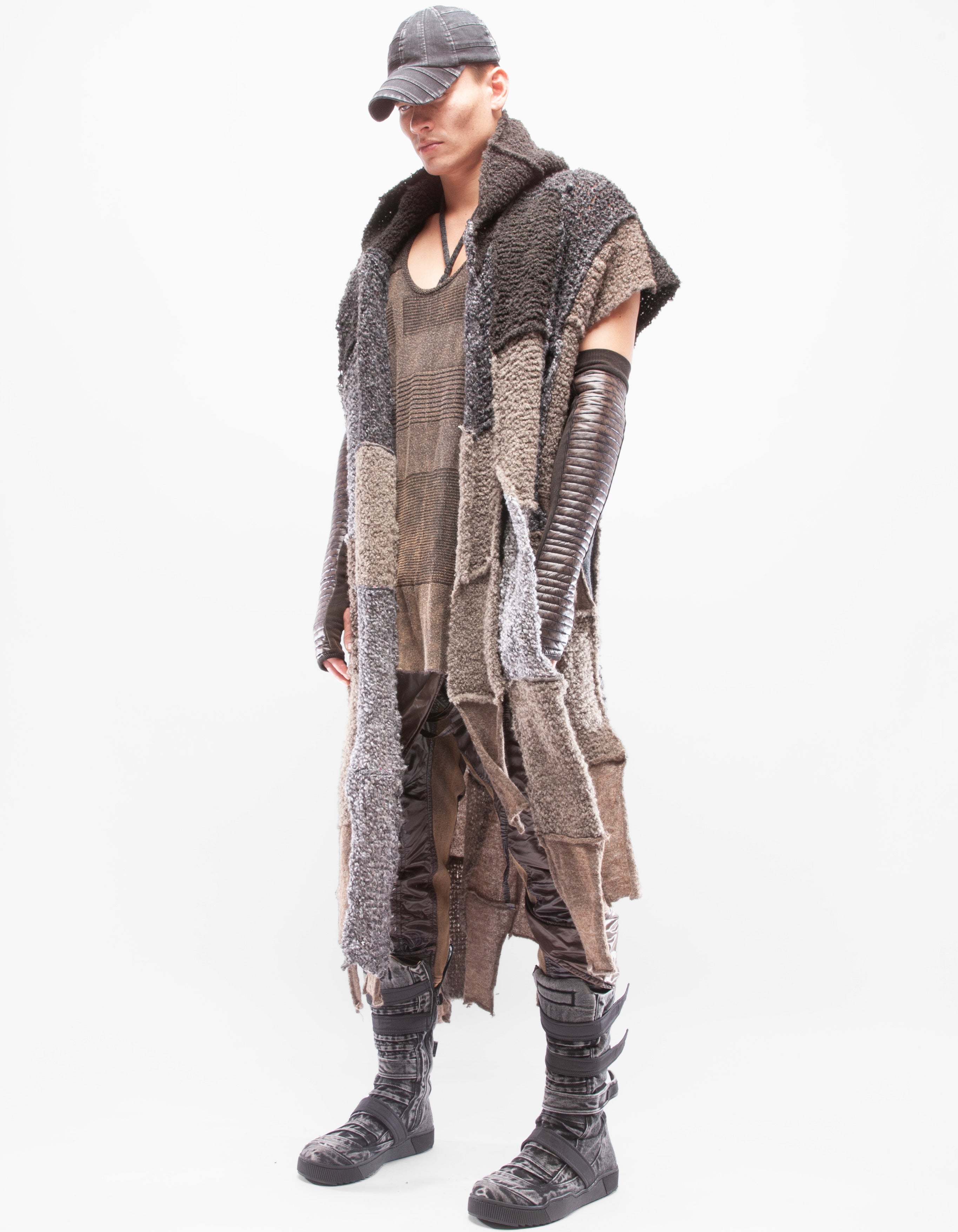 detailed heavy knitted wrap sleeveless hooded cardigan