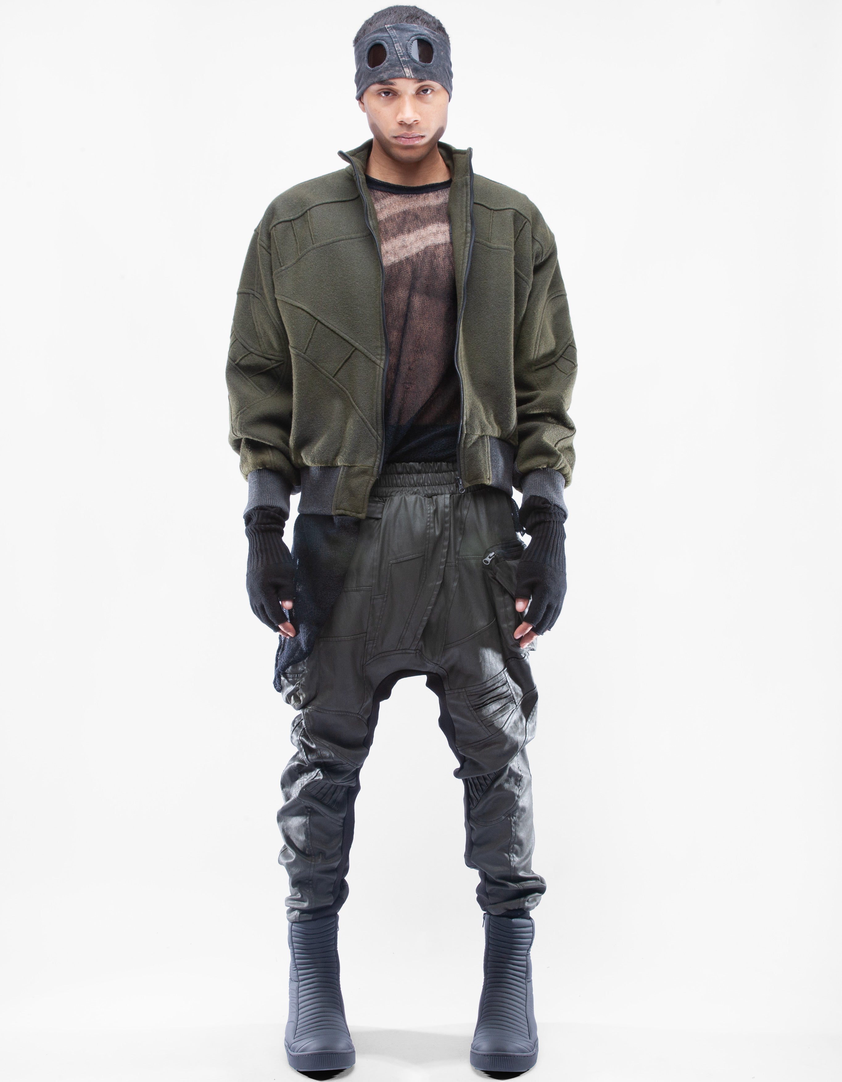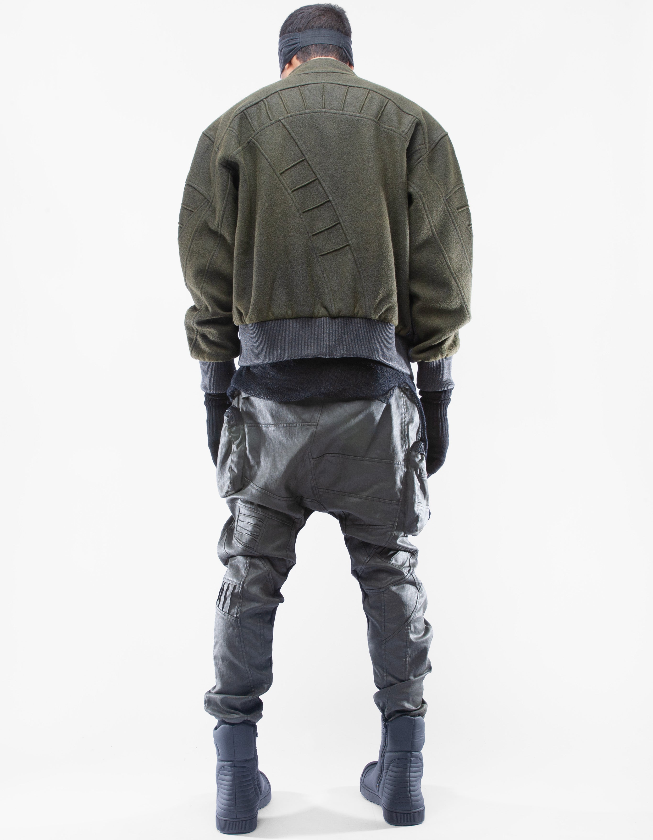wool bomber jacket with sculptural paneling