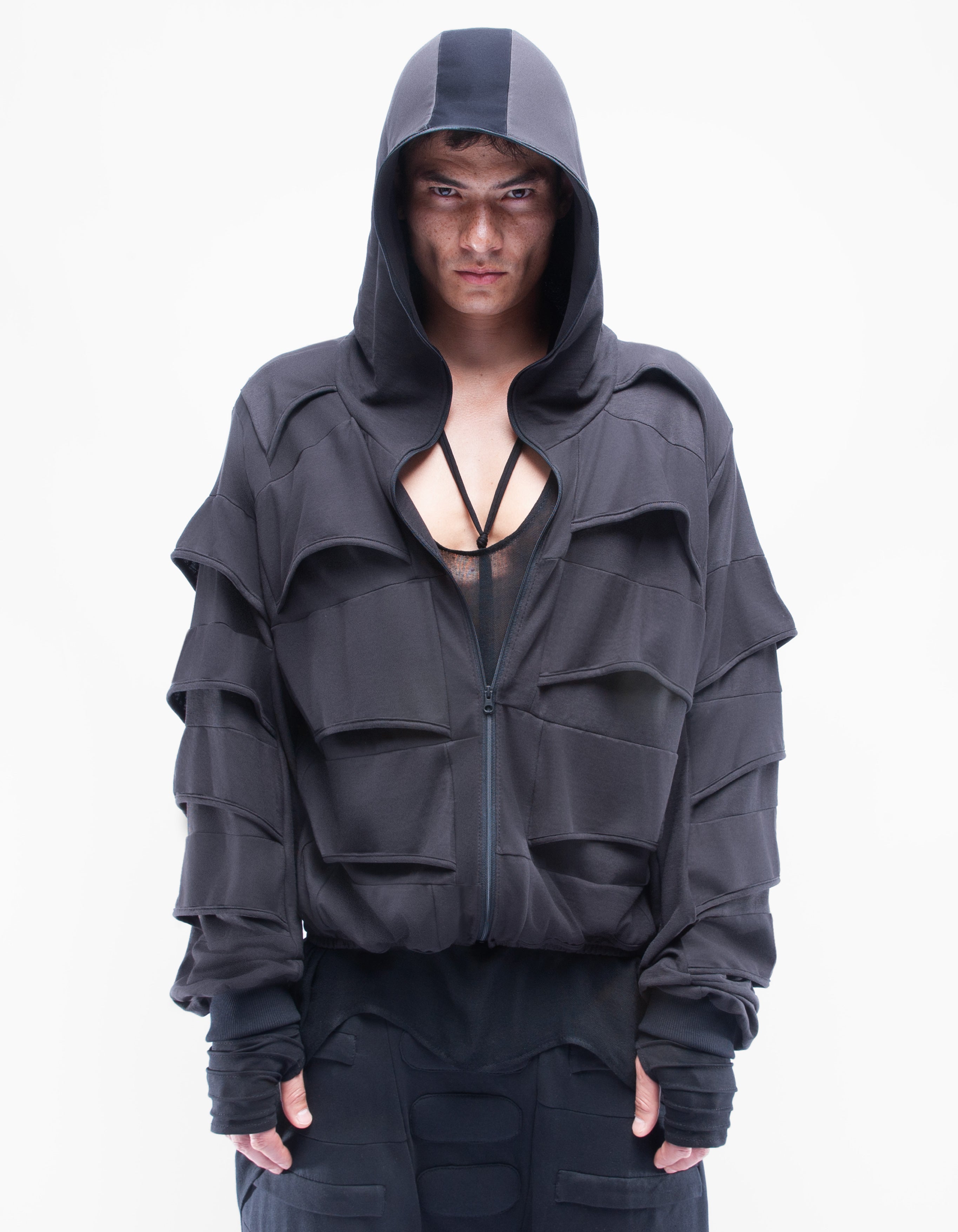 closing by zipper, zipped hood