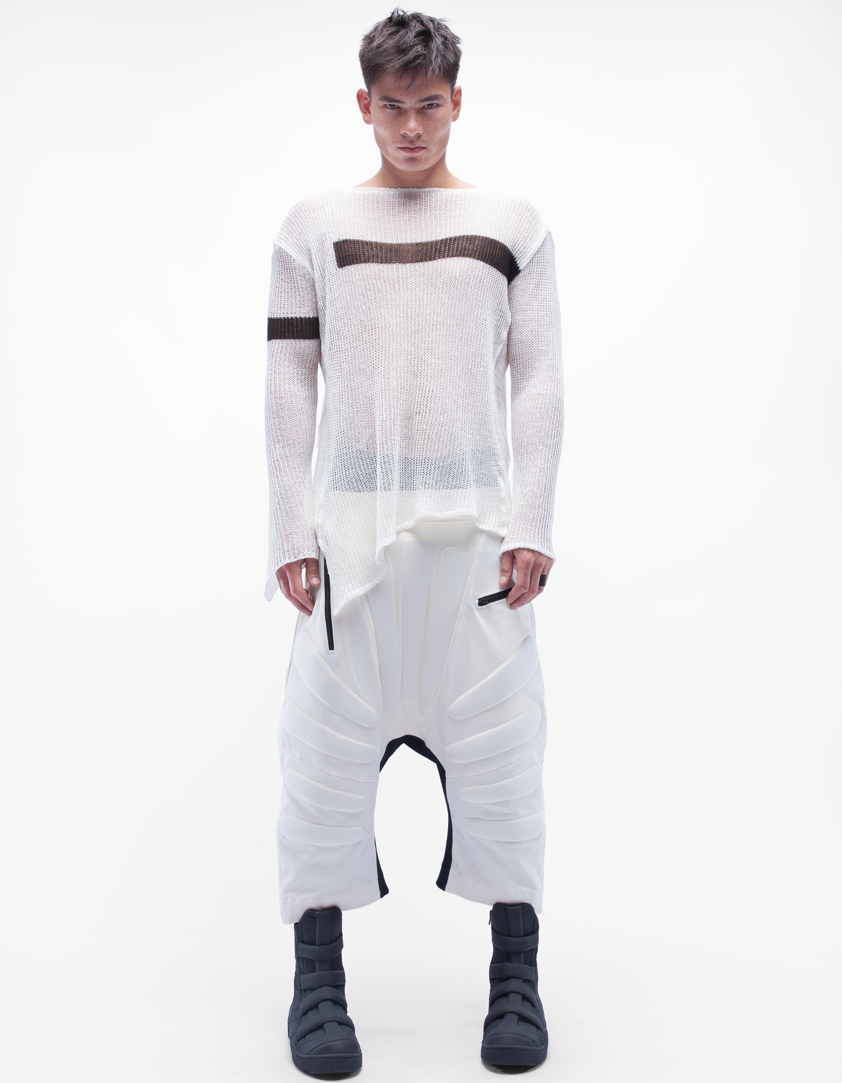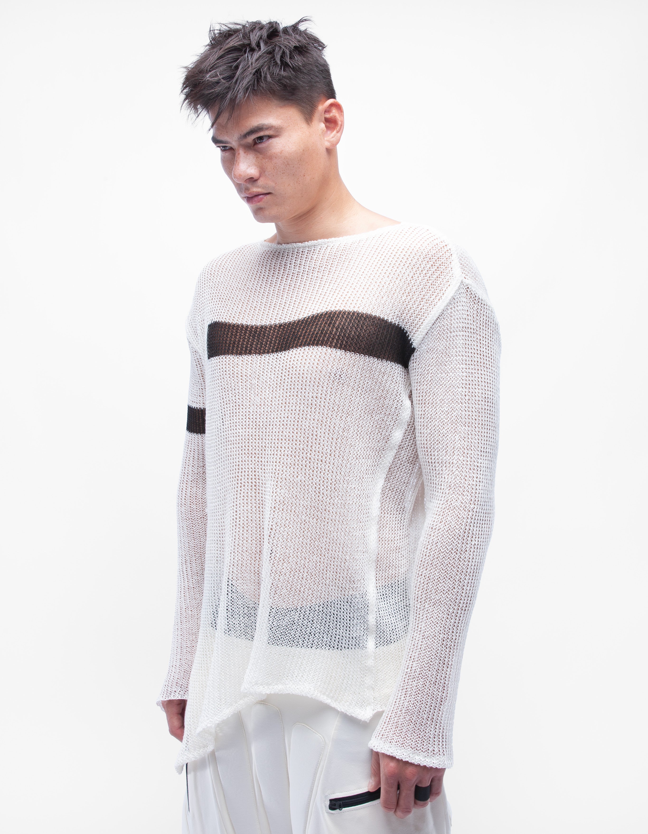 детализированный асимметричный тонкий вязаный льняной топ