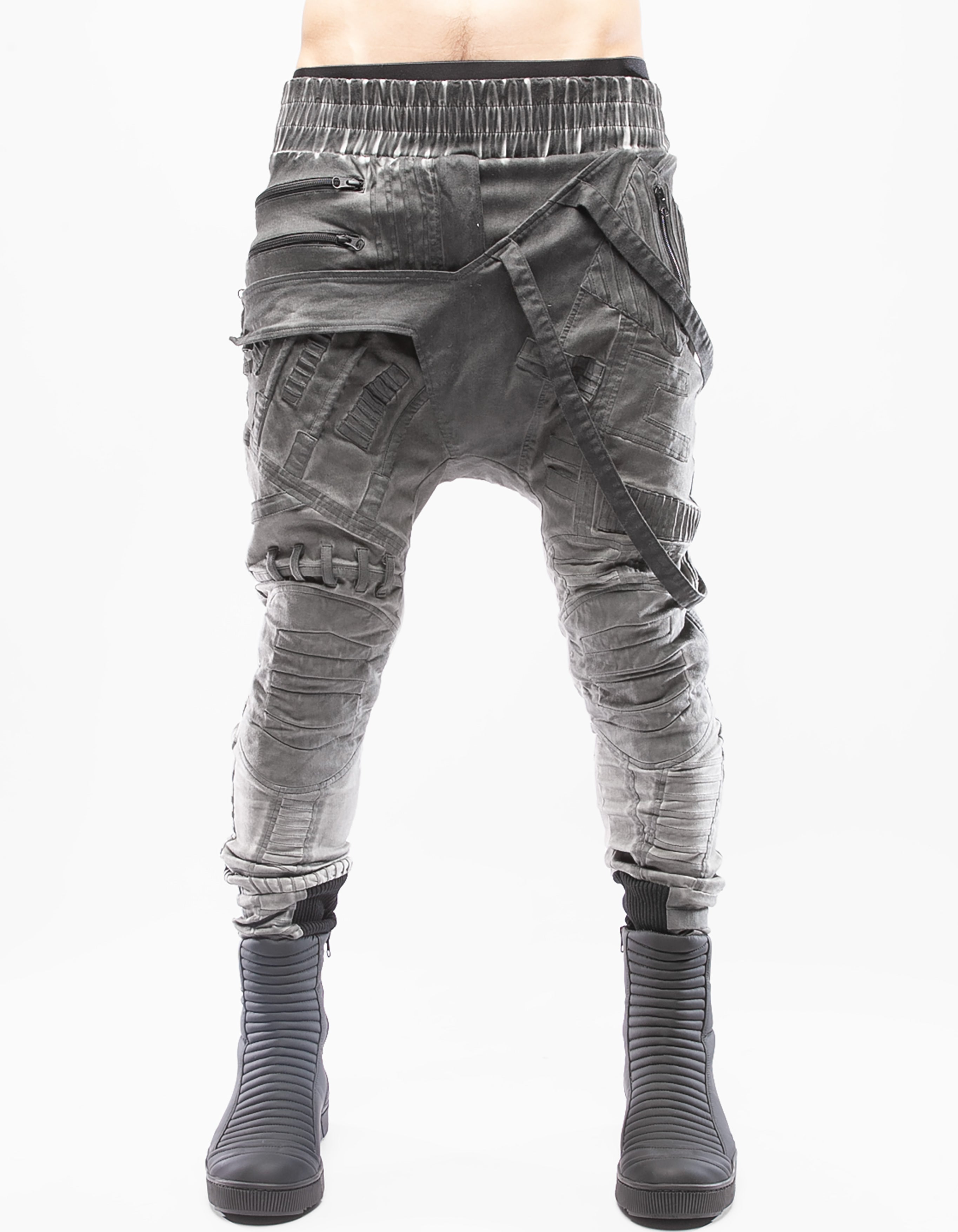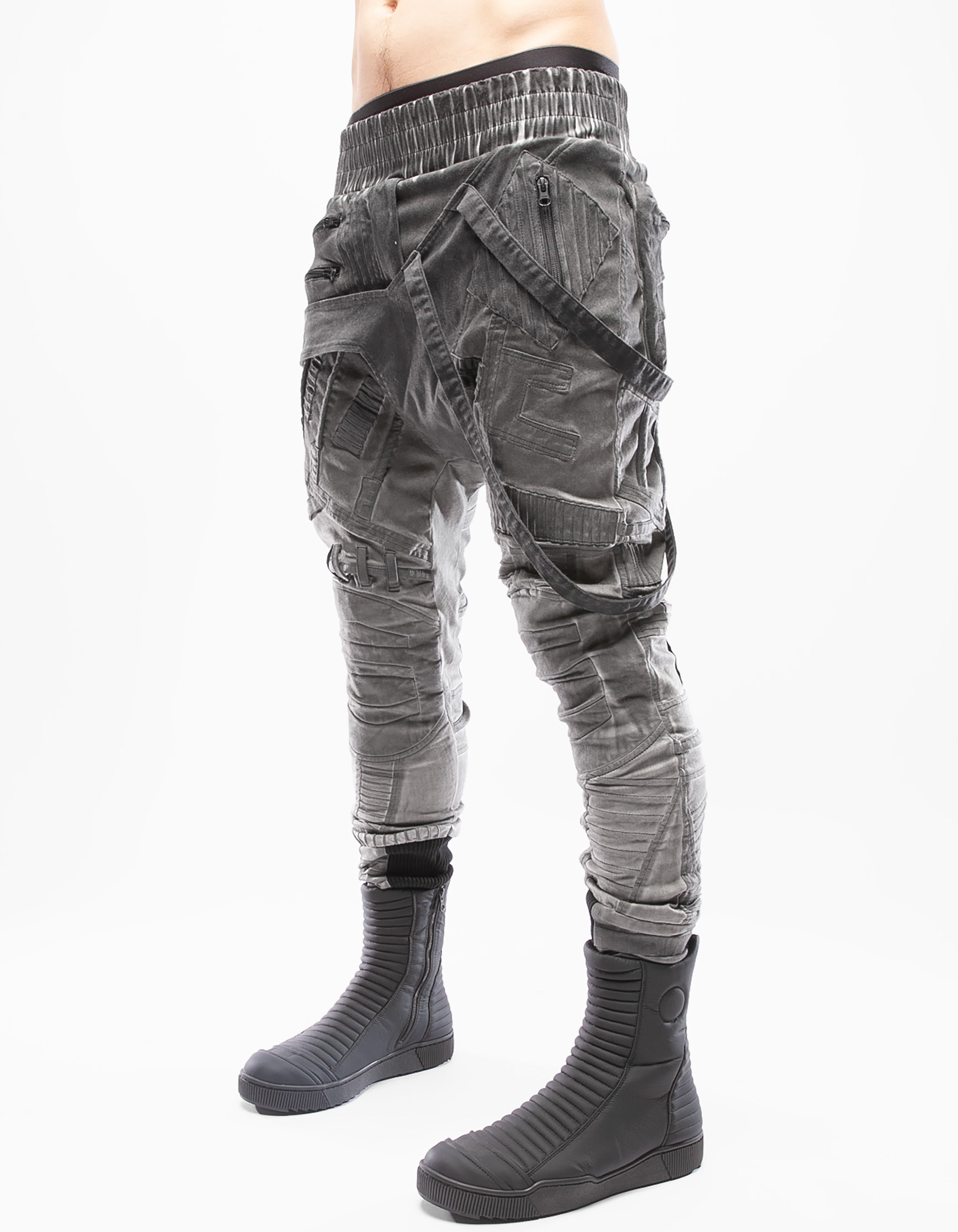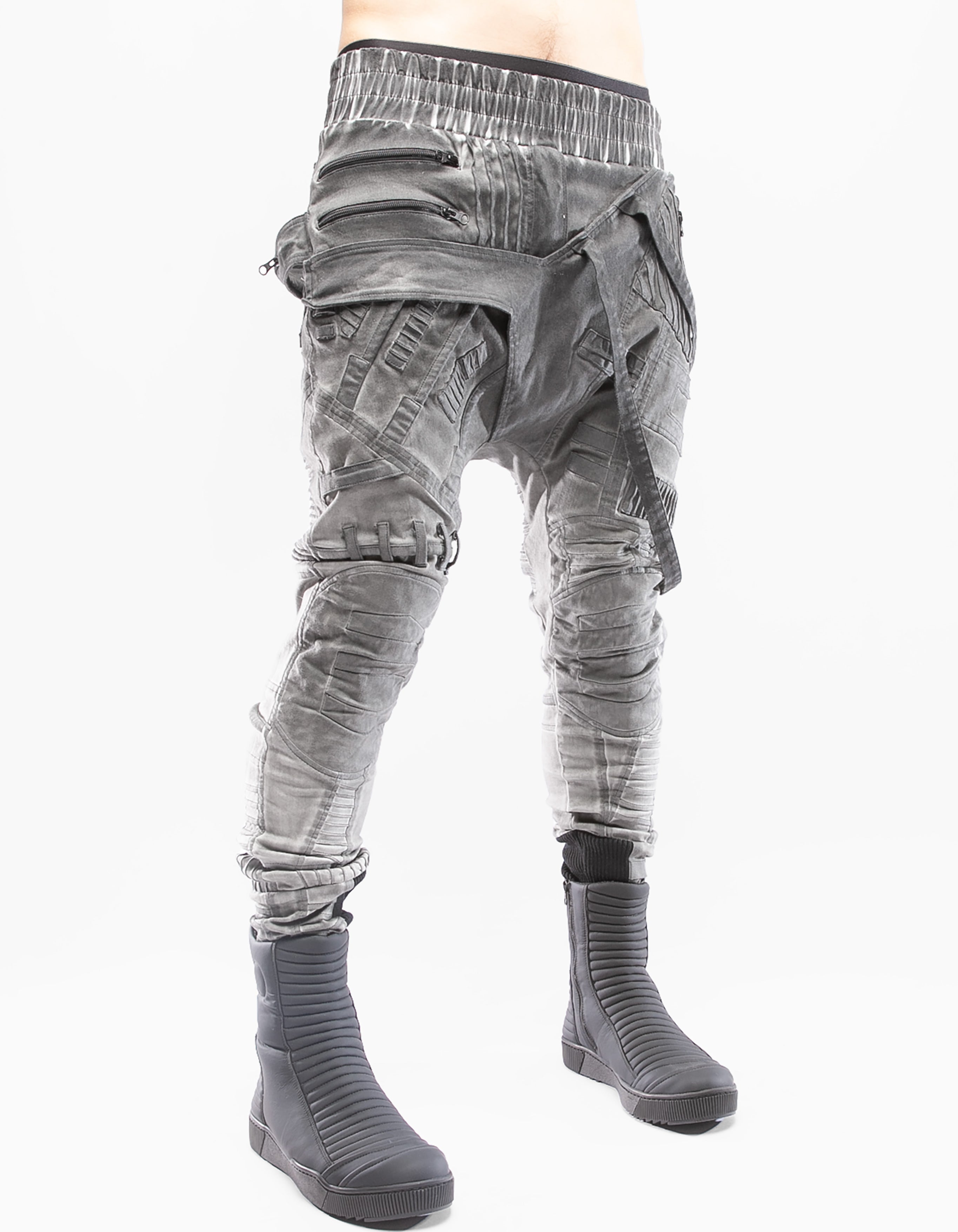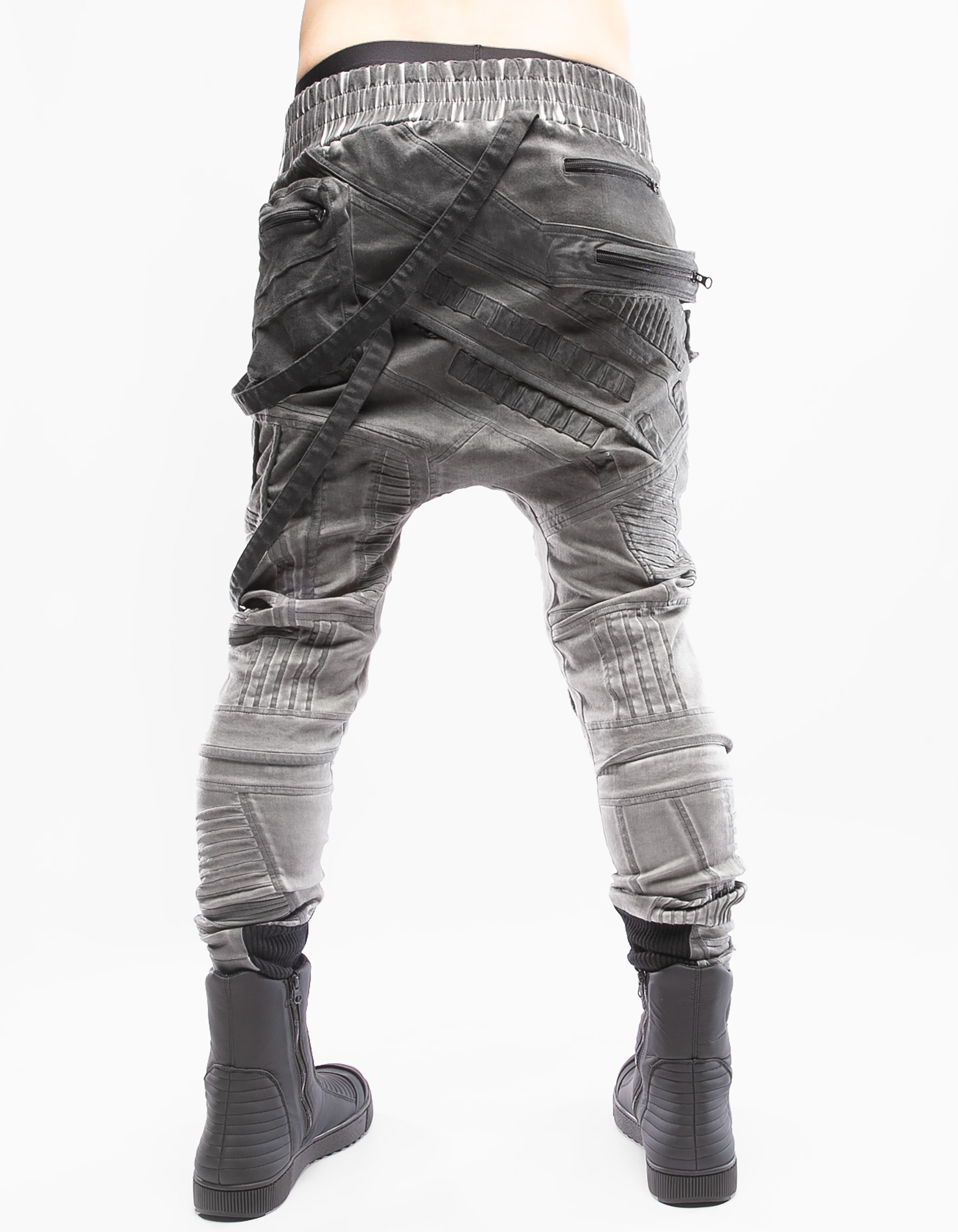 Приталенные брюки из эластичного денима с деталями и набивными элементами