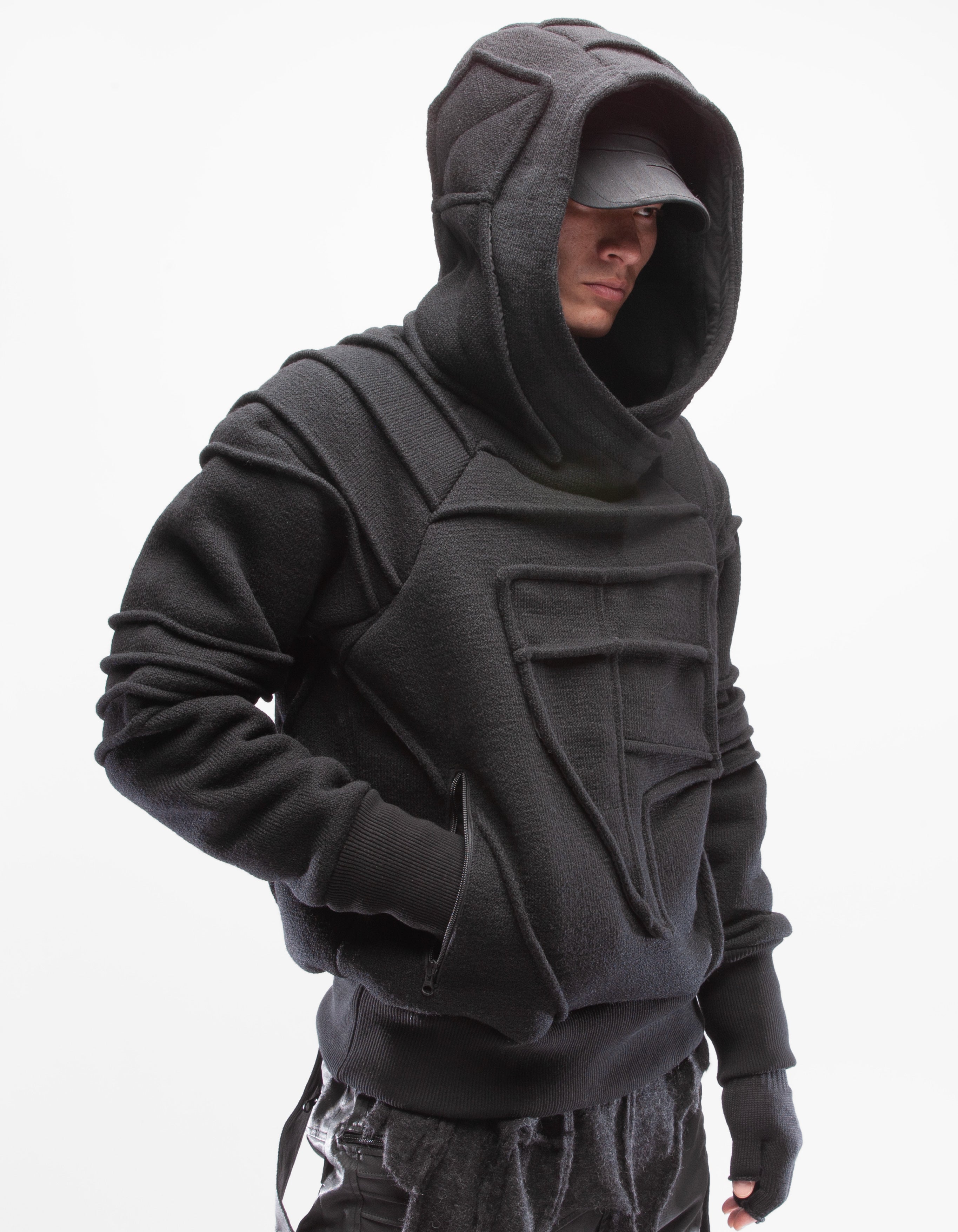 детализированное асимметричное шерстяное худи