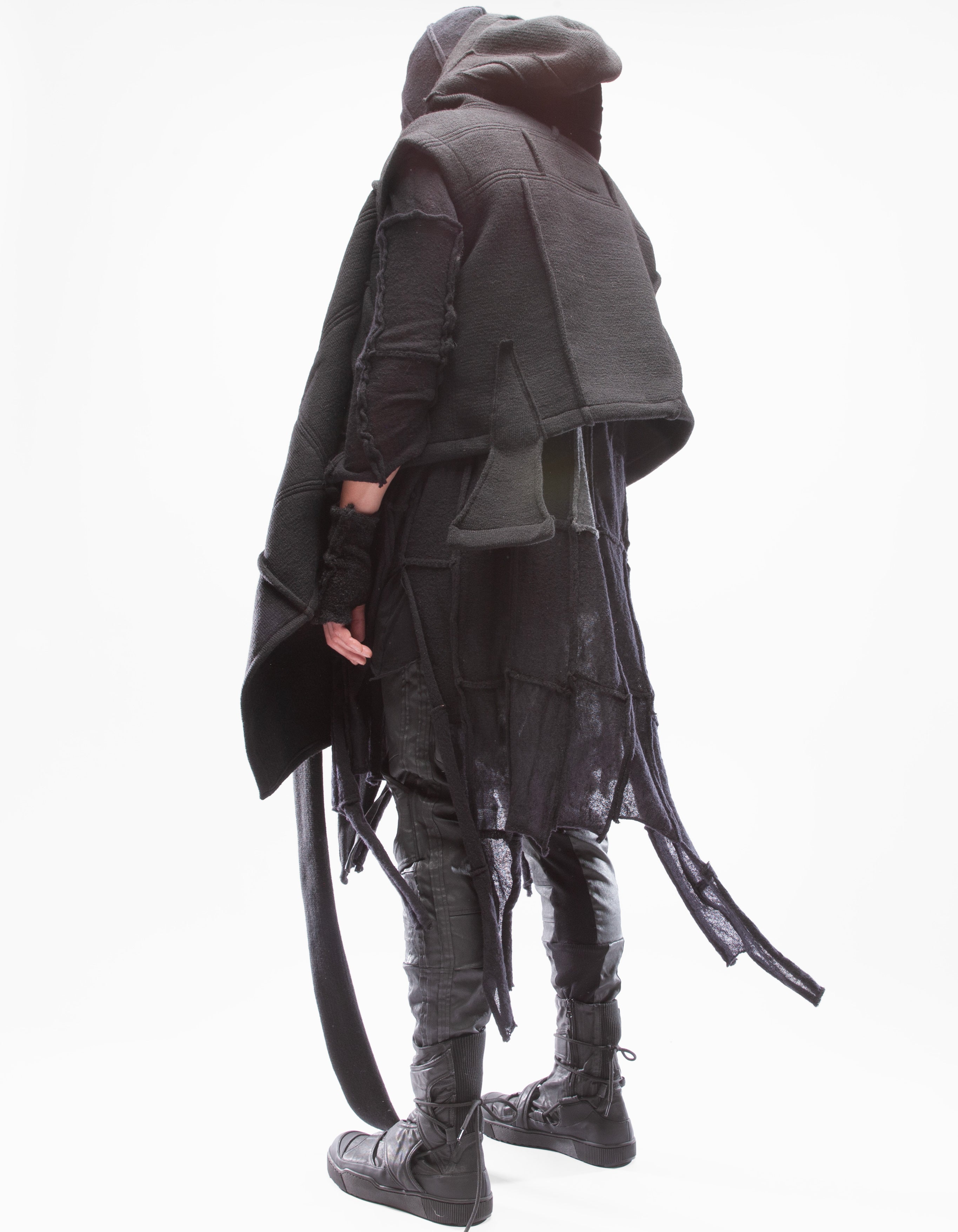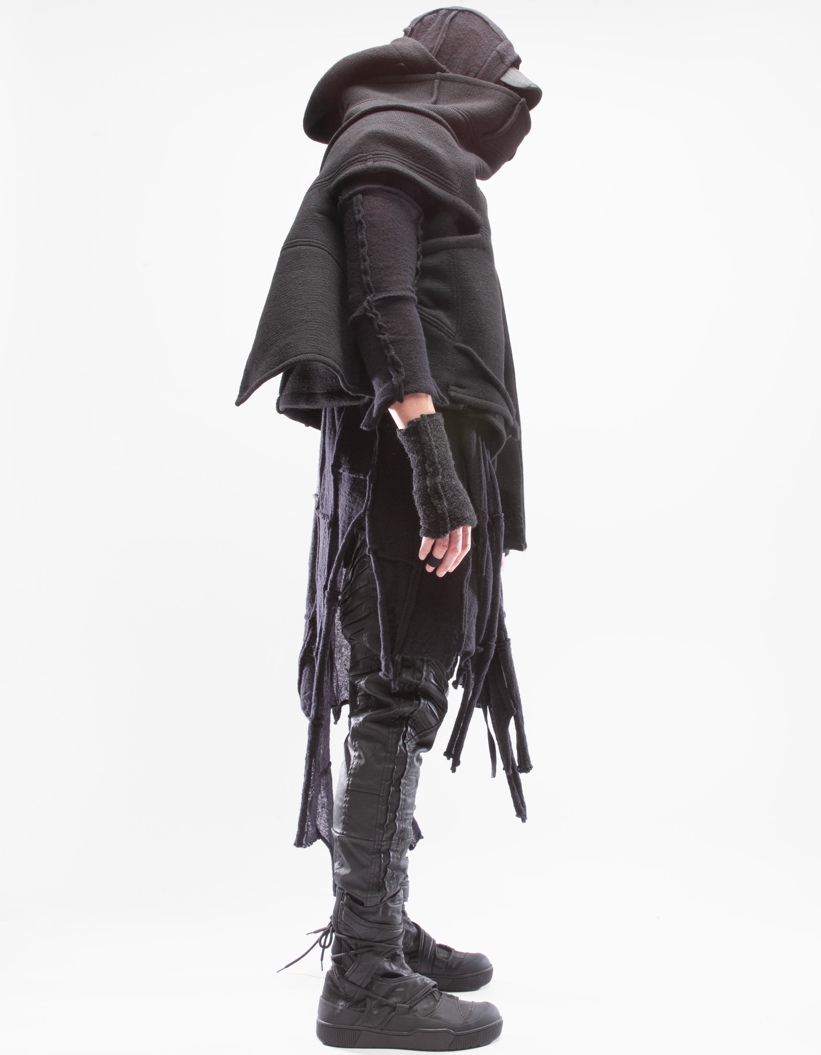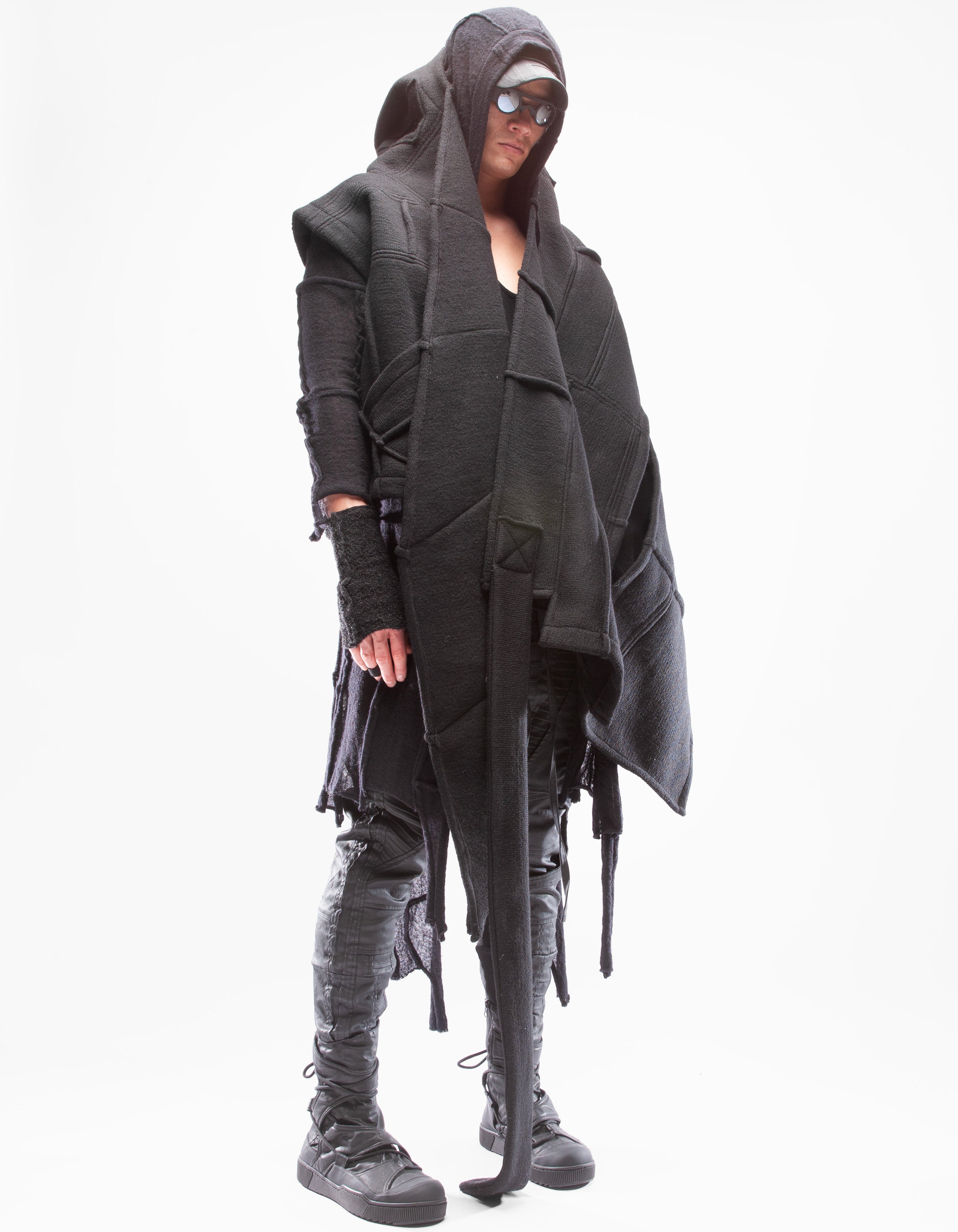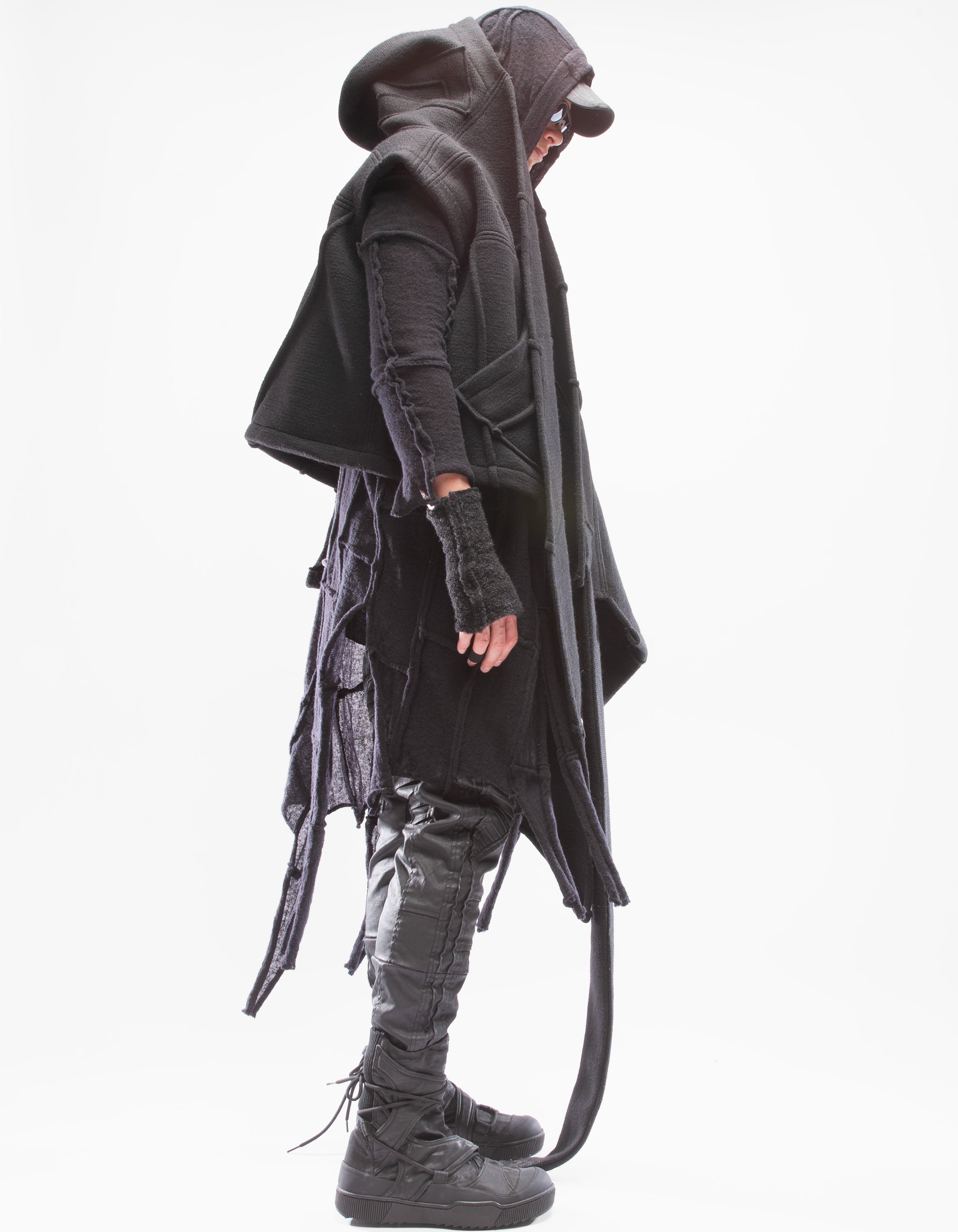 Детальный короткий жилет из тяжелой шерсти, шаль с капюшоном,