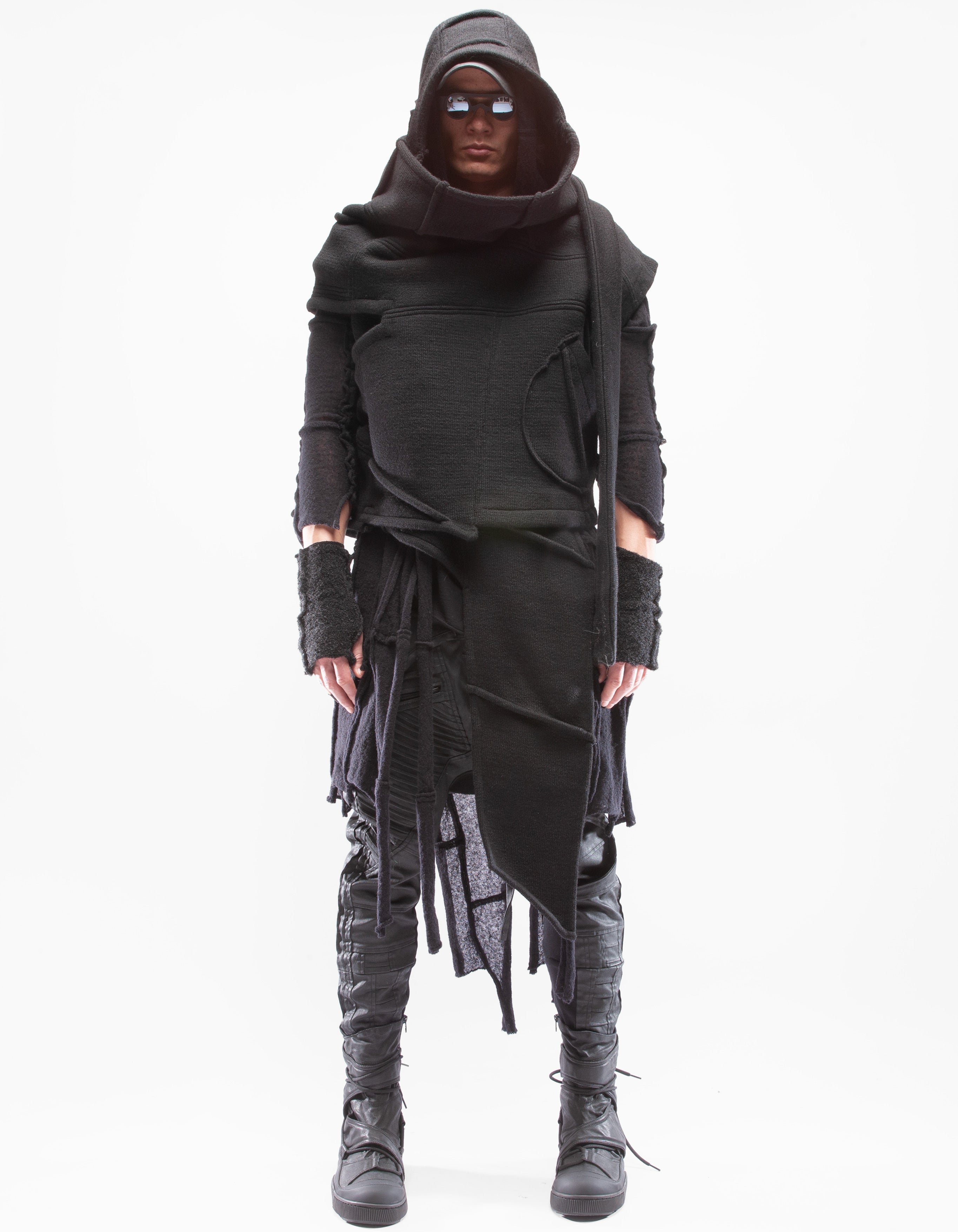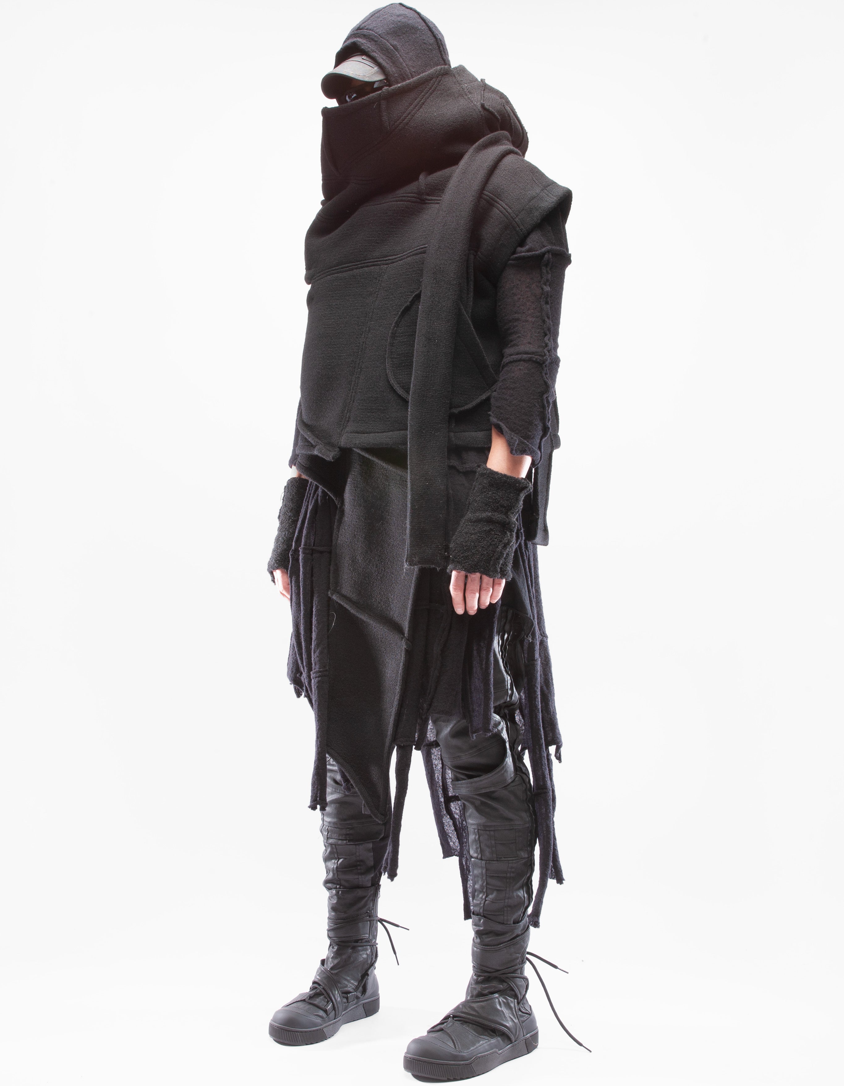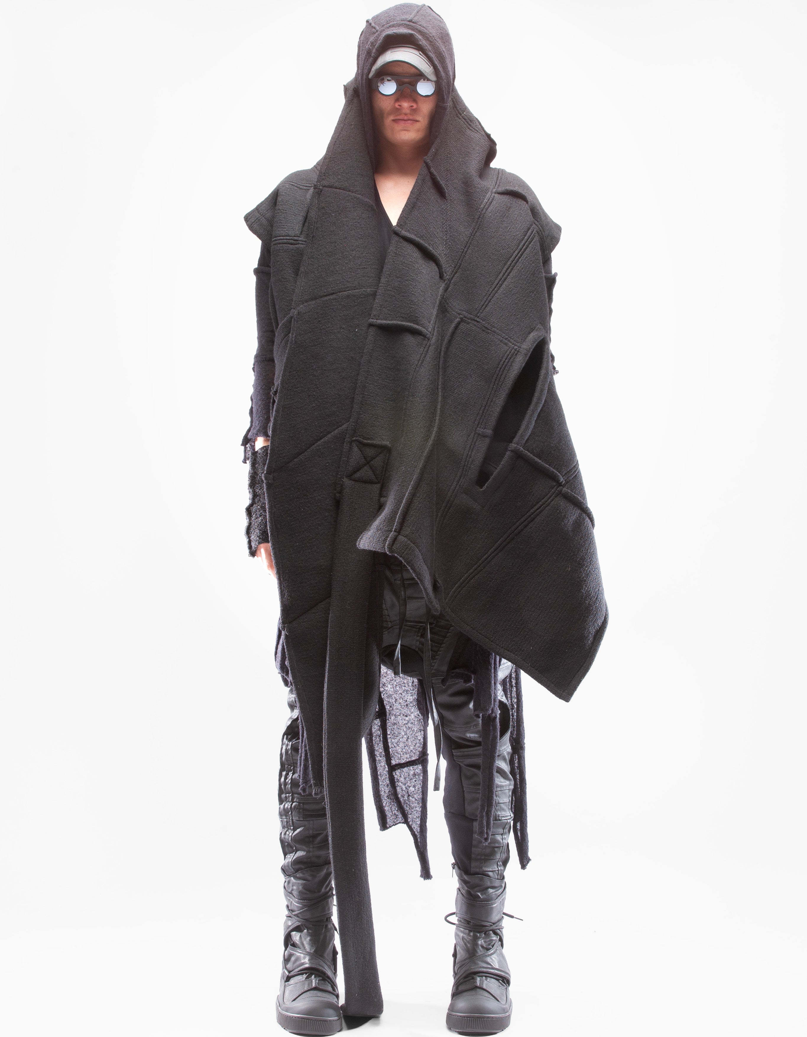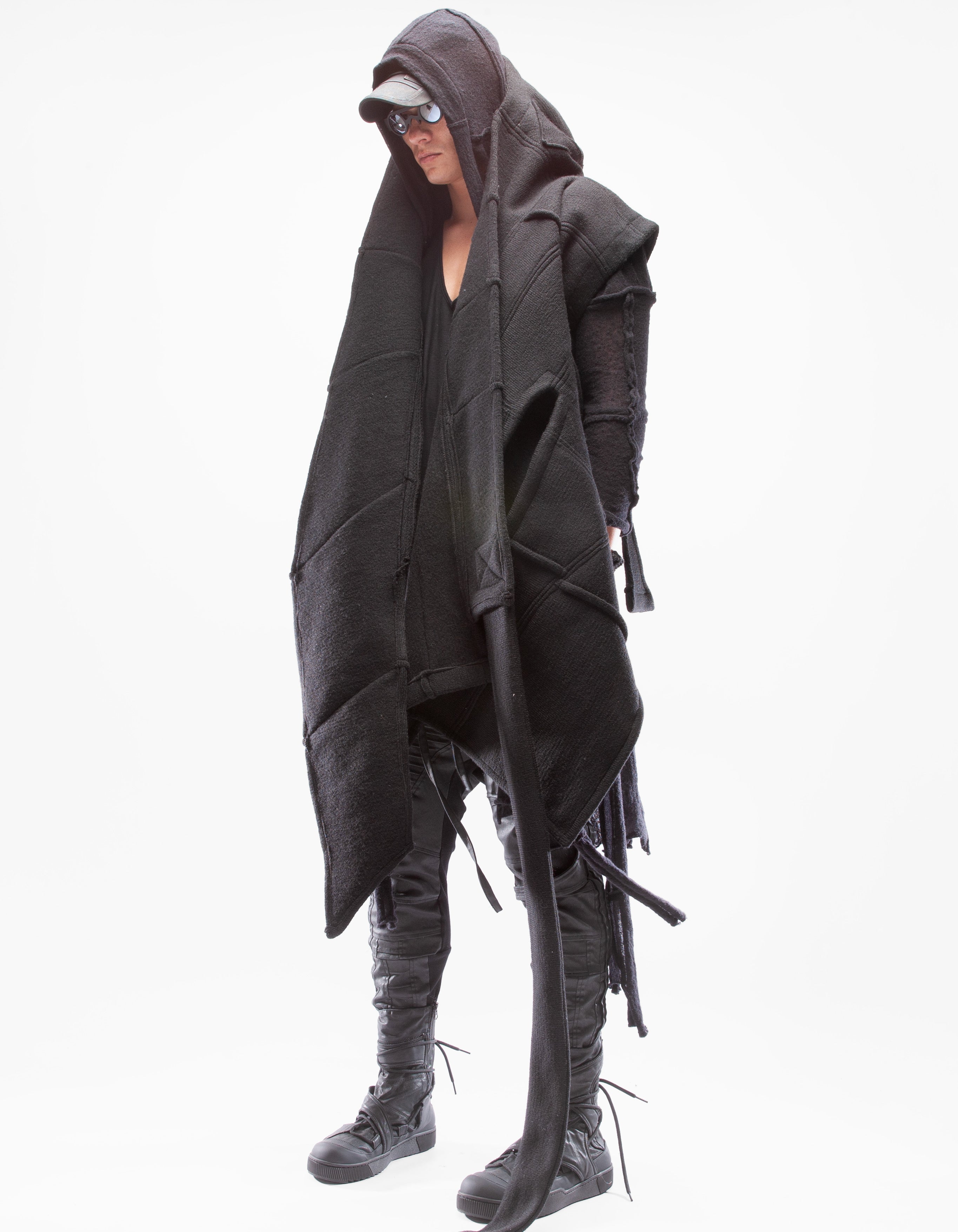 Детальный короткий жилет из тяжелой шерсти, шаль с капюшоном,